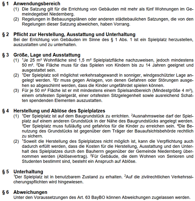Der Gemeinderat hat in seiner Sitzung am 30.09.20255 eine Satzung zur Einführung einer Pflicht zum Nachweis eines Spielplatzes für Kinder (Spielplatzsatzung) beschlossen. Nachstehend geben wir die ausgefertigte Satzung in ihrem vollen Wortlaut amtlich bekannt: