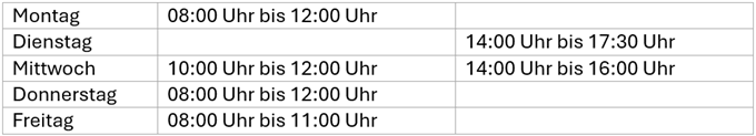 - Ohne Terminvereinbarung in den Sprechzeiten vorbeikommen für