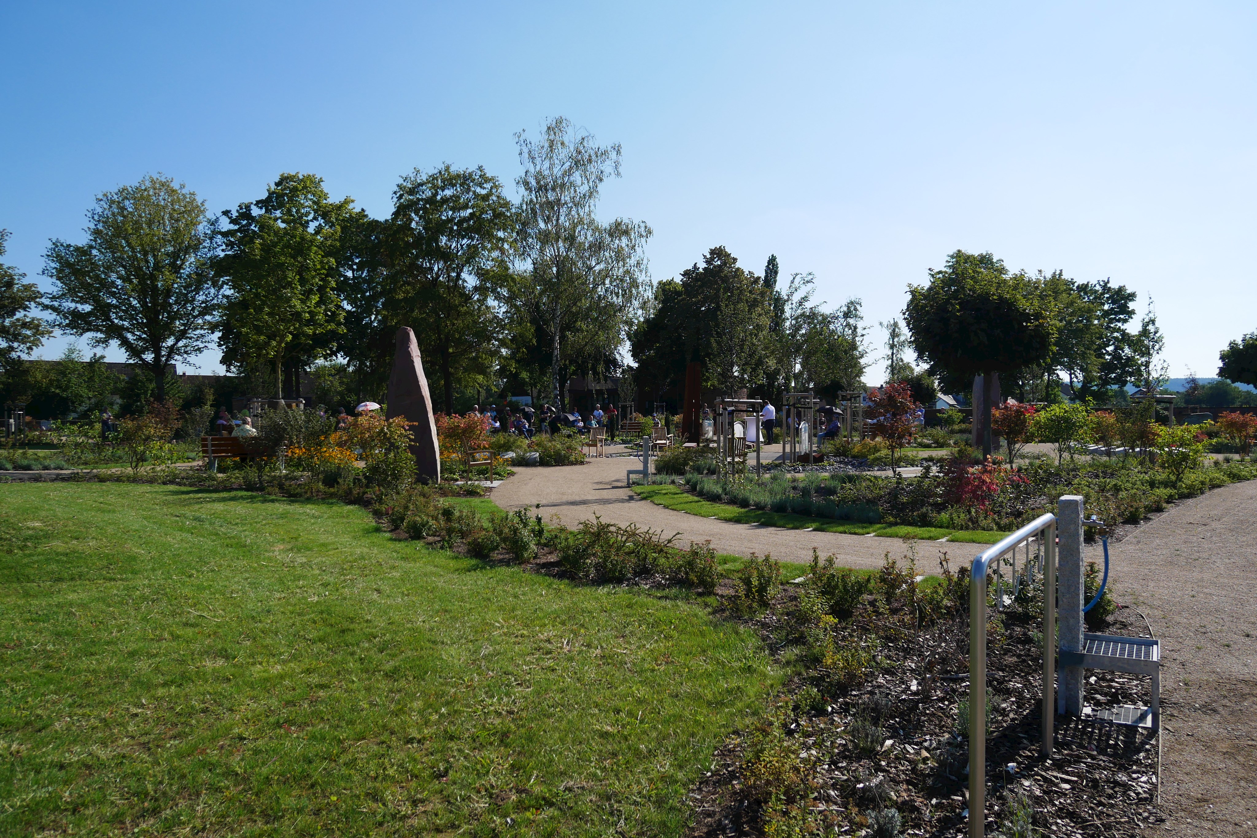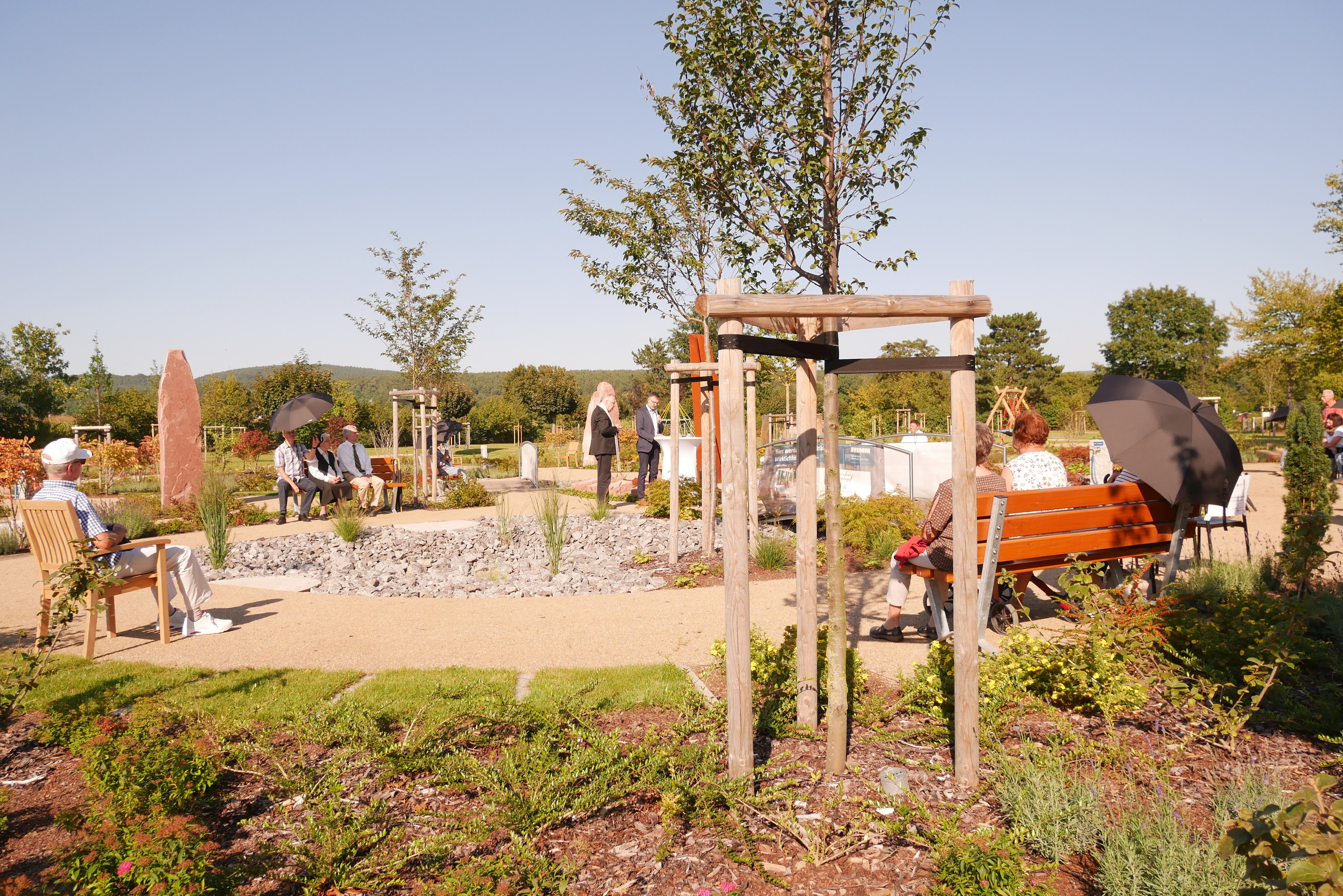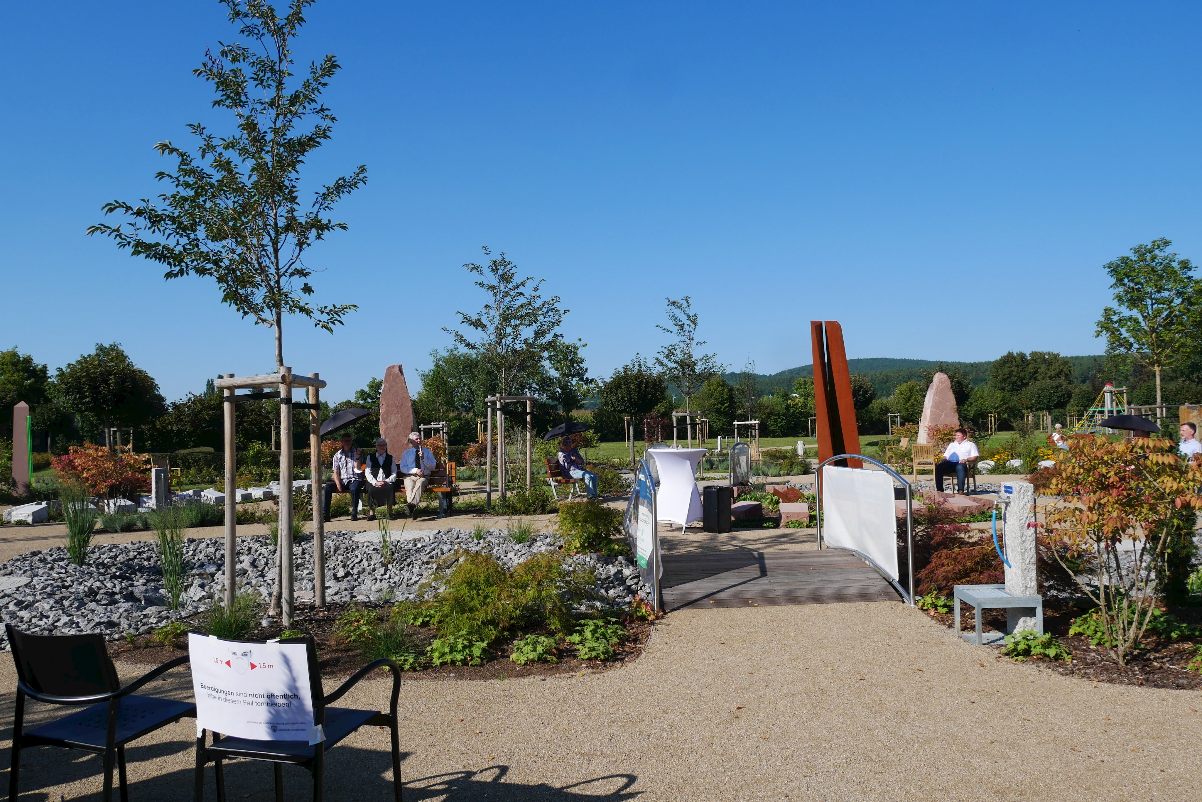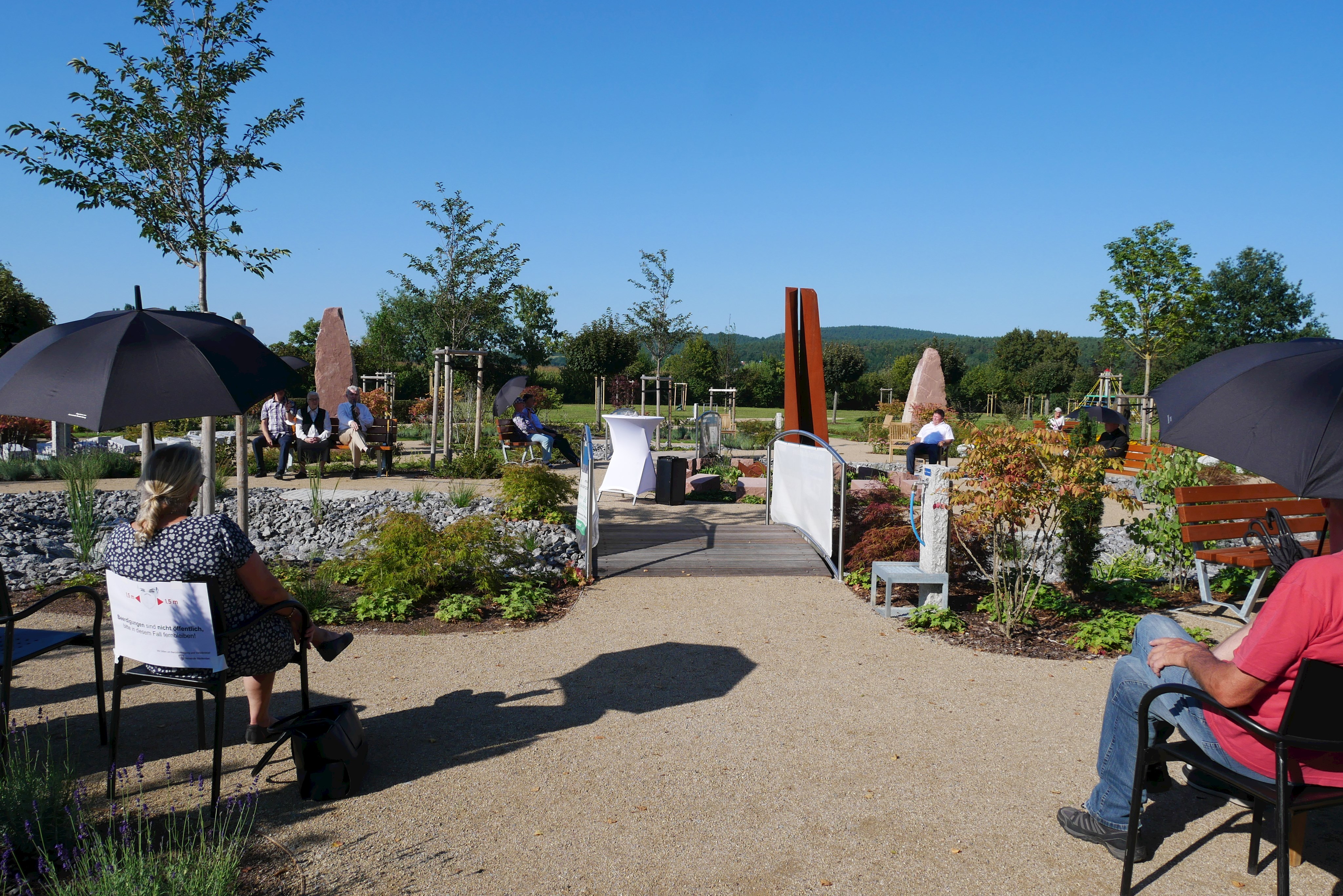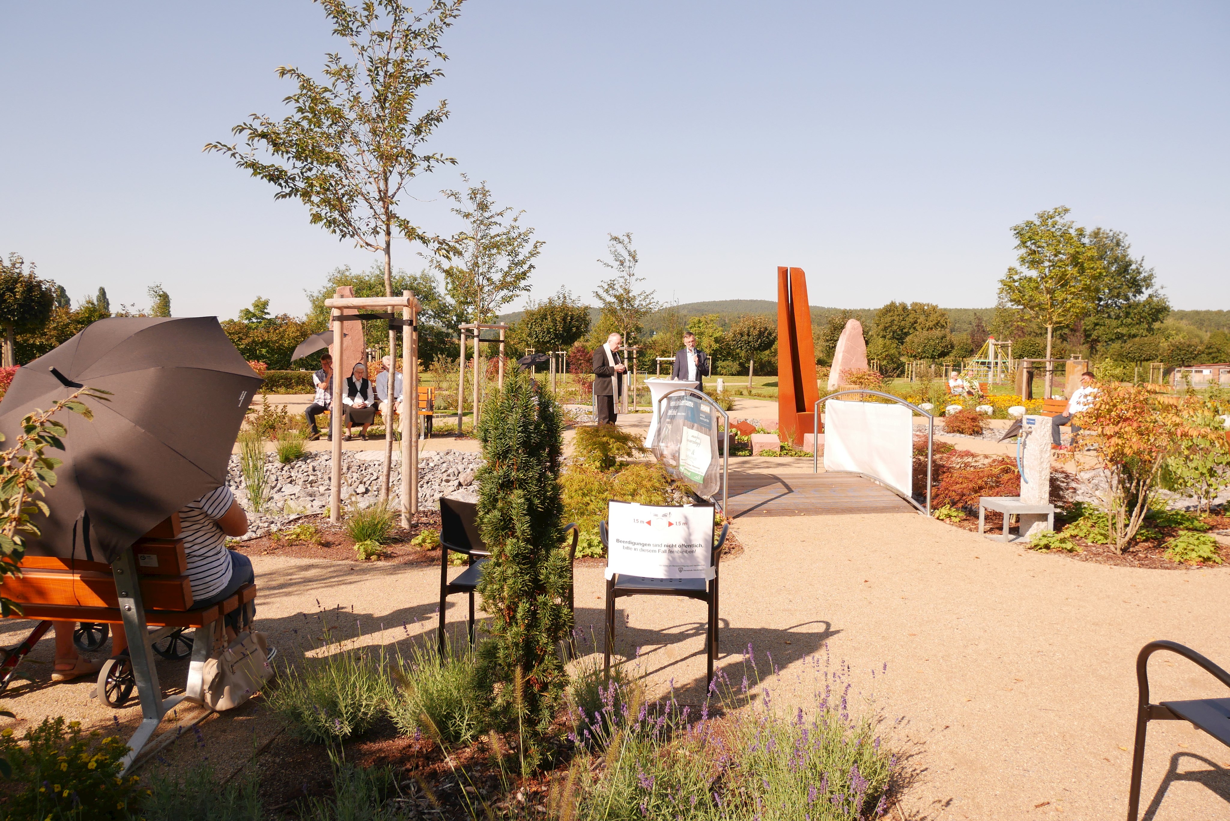 Am 03.09.2021 wurde der Friedhof durch Bürgermeister und Planer offiziell eröffnen. Den kirchlichen Segen gaben Pfarrer Haas und Pfarrer Kunze.