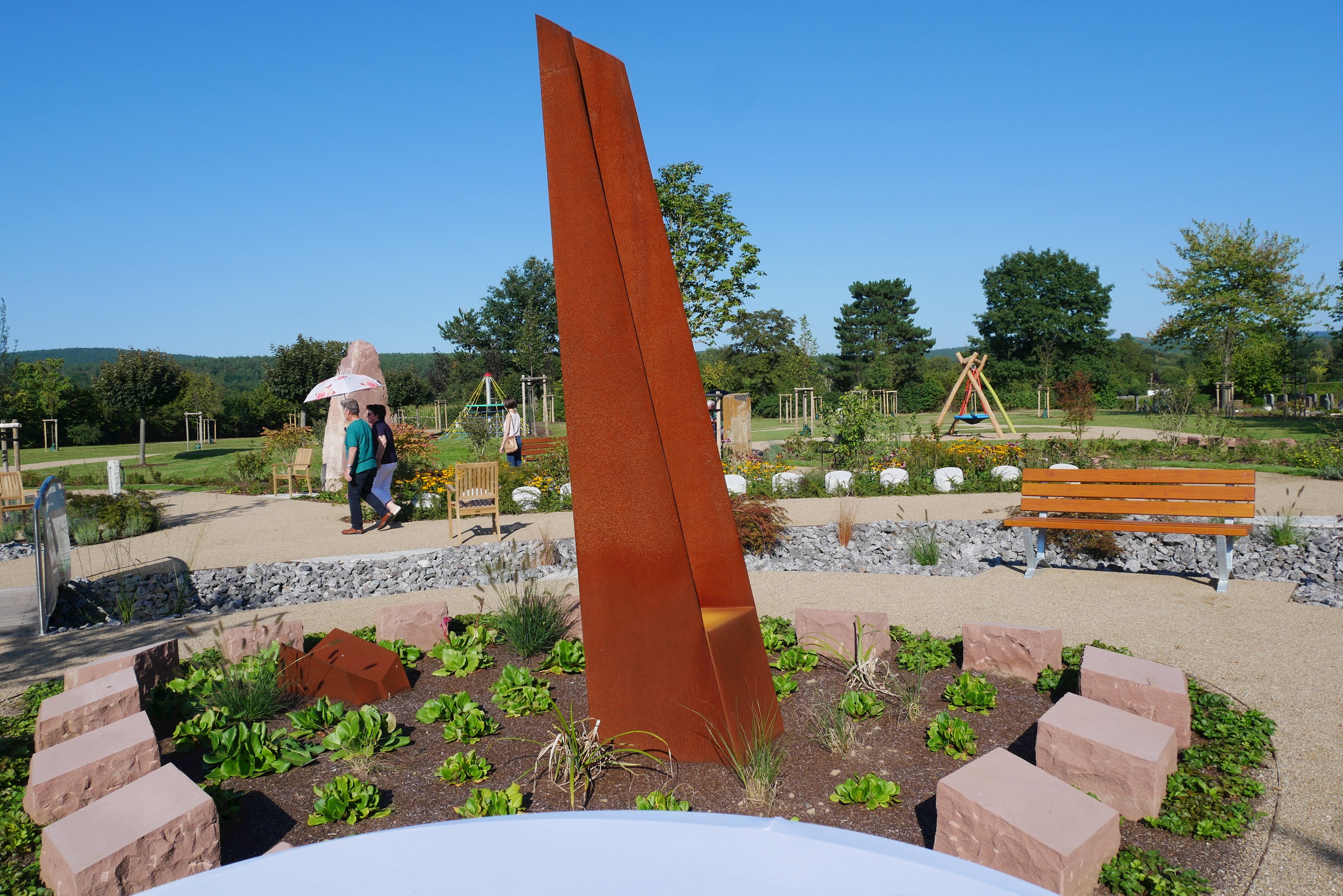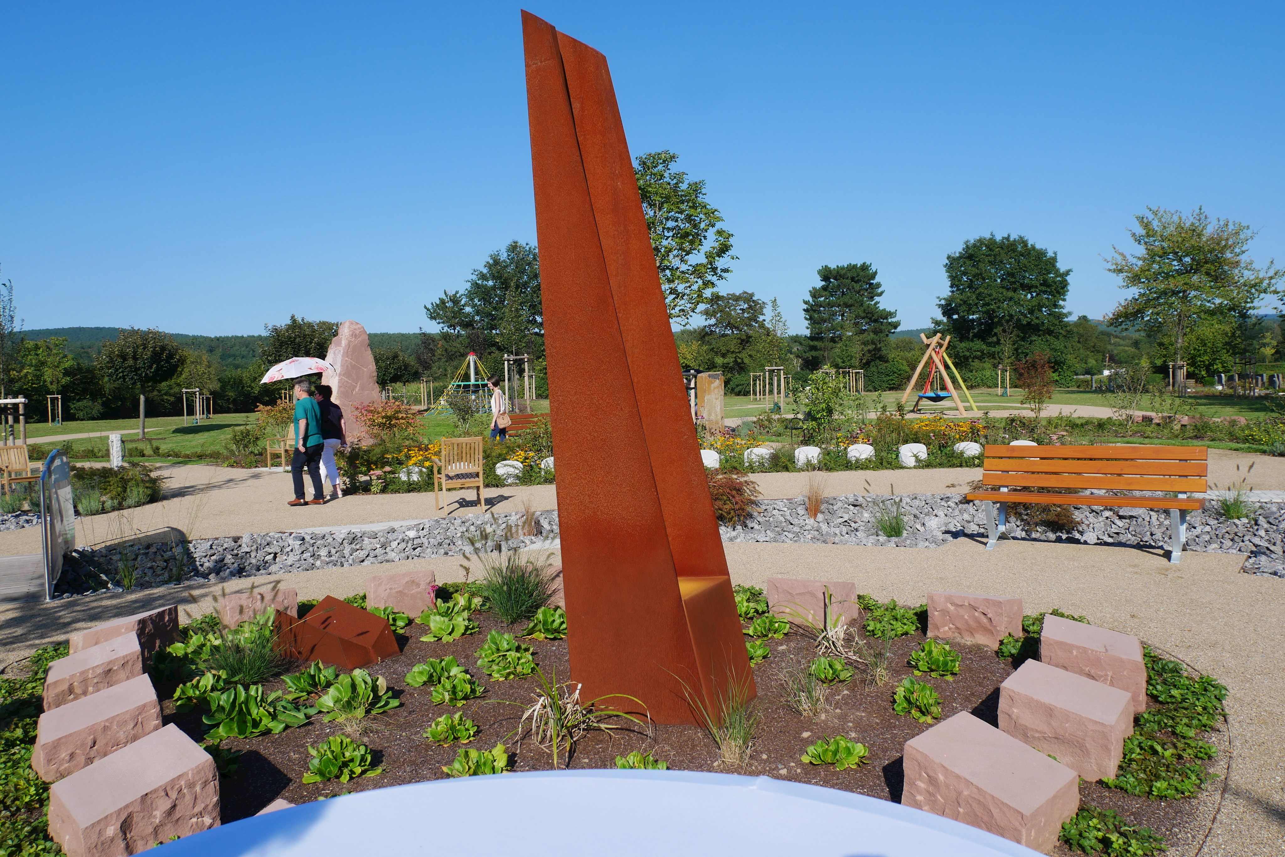 Am 03.09.2021 wurde der Friedhof durch Bürgermeister und Planer offiziell eröffnen. Den kirchlichen Segen gaben Pfarrer Haas und Pfarrer Kunze.