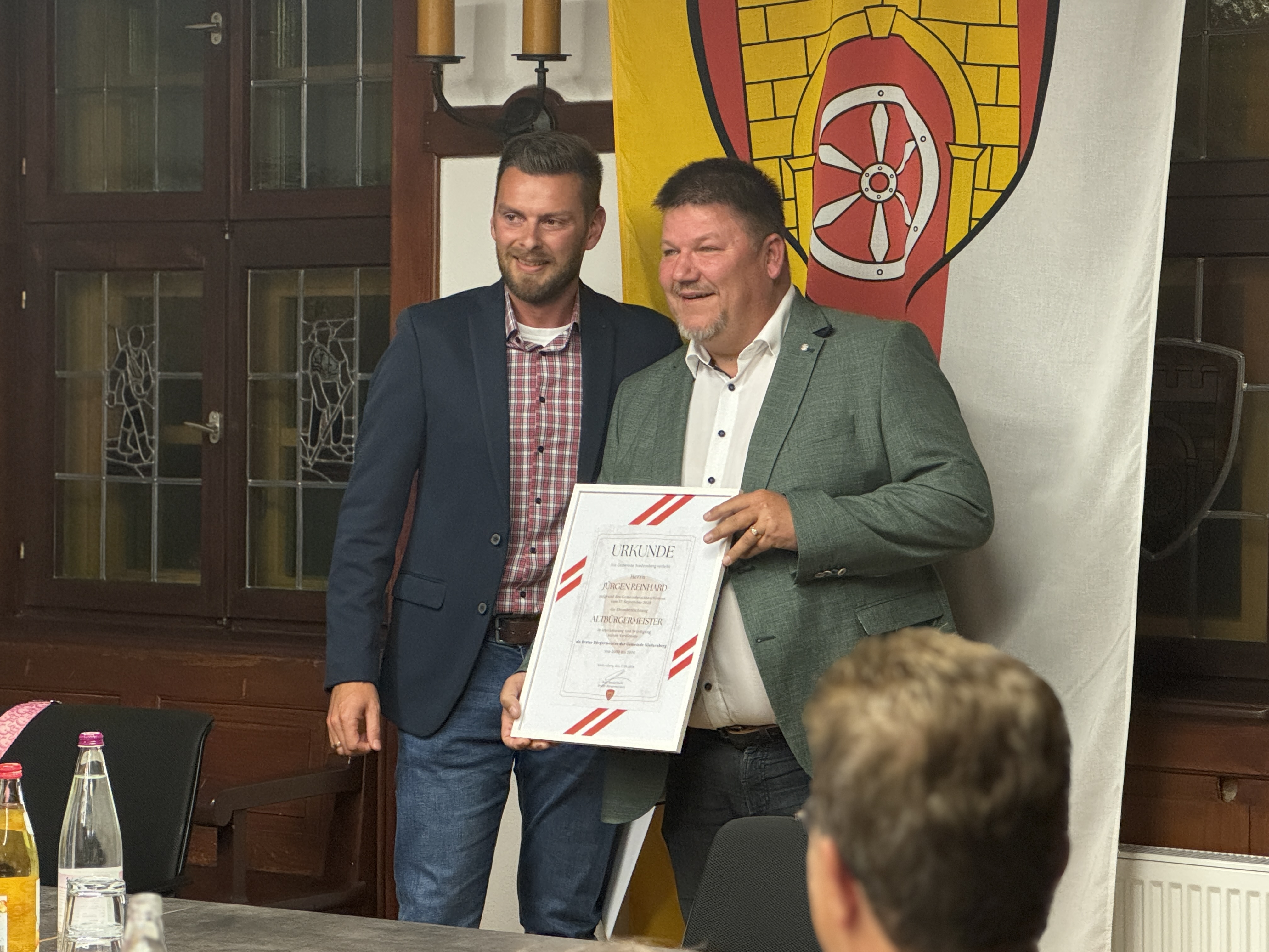 In der Gemeinderatssitzung am 17.09.2024 wurde unserem Bürgermeister a.D. Jürgen Reinhard, nach einstimmigem Beschluss, der Ehrentitel „Altbürgermeister“ verliehen. Der Titel ist Ausdruck des Dankes und der Anerkennung sowie eine Würdigung seiner Verdienste für Niedernberg in seiner 24-jährigen Amtszeit. Im Namen der Gemeinde Niedernberg, des Gemeinderates sowie der Gemeindeverwaltung nochmals herzlichen Glückwunsch an Jürgen Reinhard und alles Gute für die Zukunft!