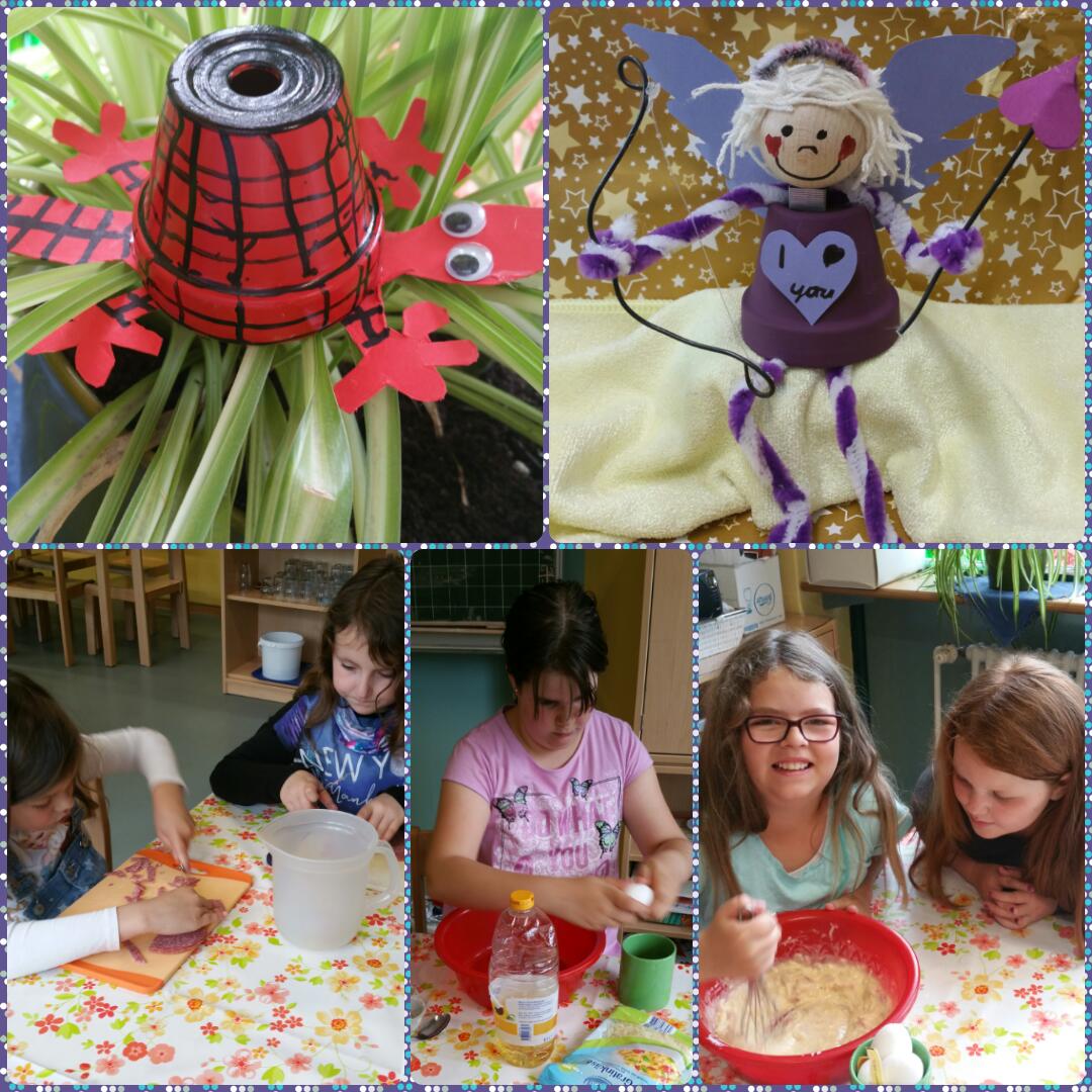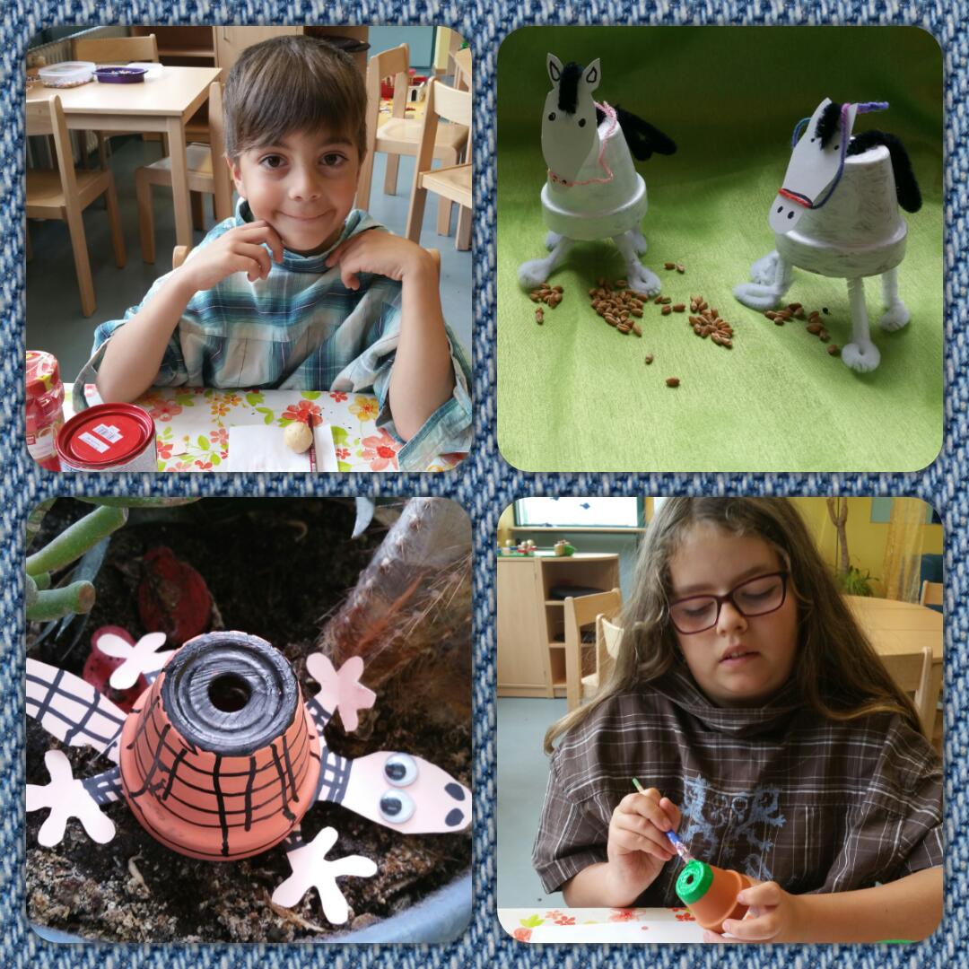 Nach dem Mittagessen begannen wir aus kleinen Tontöpfen Tiere und Schutzengel zu basteln, dieses Angebot fand sehr großen Zuspruch von den Kindern und so wurde es von Ihnen bis Mittwoch genutzt.
