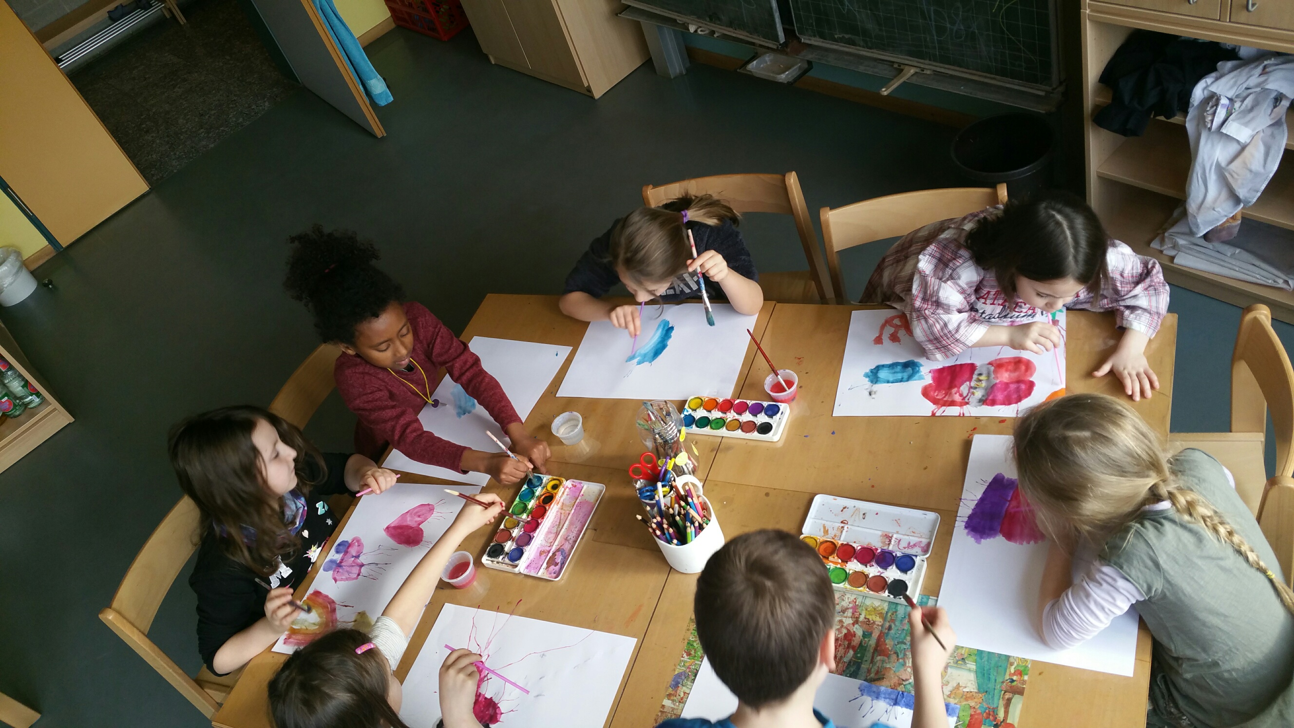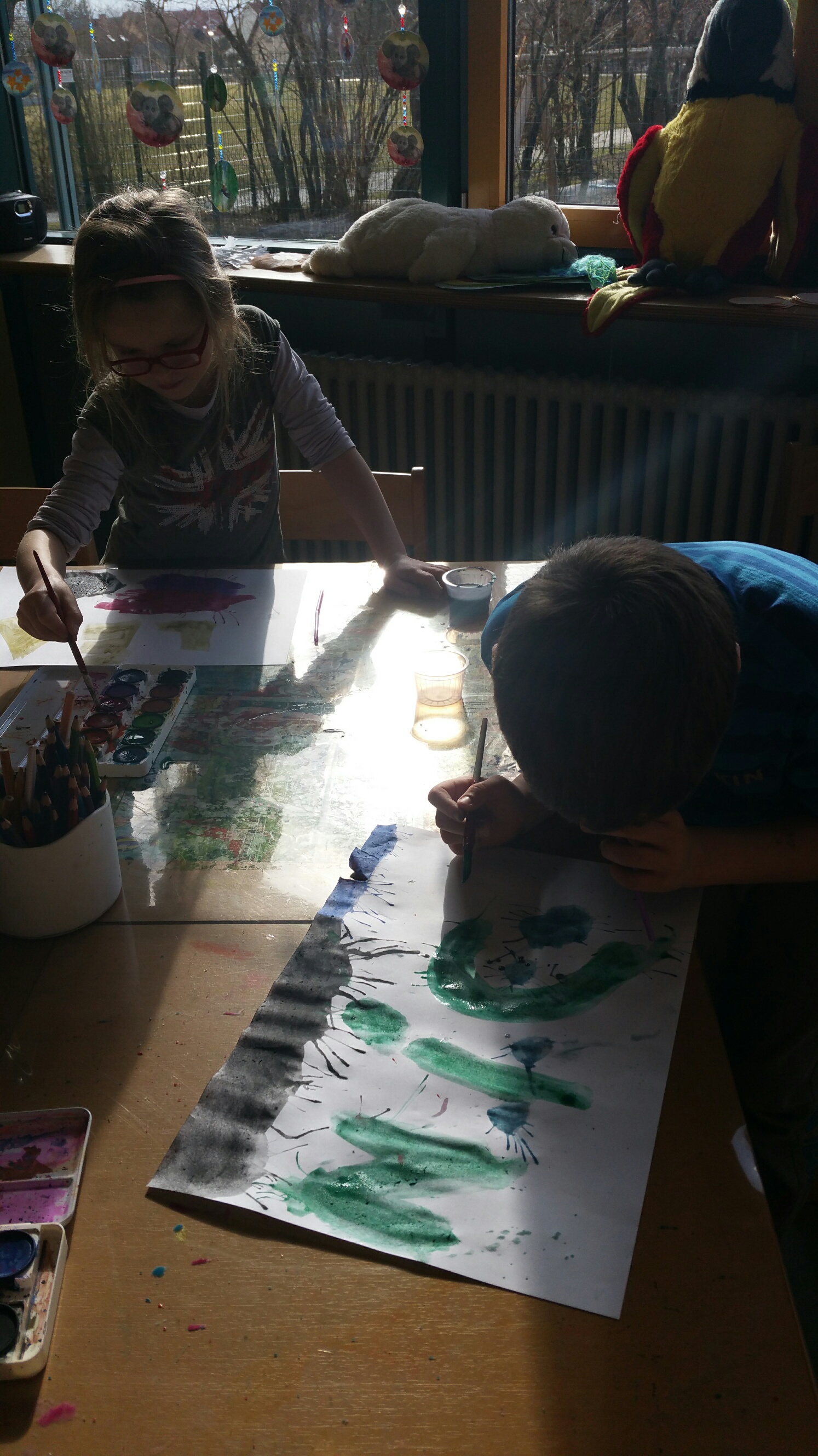 3 Tage Ferienbetreuung. Noch völlig geschafft vom Honischer Fasching sehnten sich die 16 Kinder am Mittwoch nach viel Ruhe und Entspannung. Nach dem Frühstück starteten wir mit ein paar teamfordernden Spielen. So bildeten und lösten wir z.B. einen menschlichen gordischen Knoten. Später malten wir wunderbare kreative Kunstwerke mit Wasserfarben und spielten im Hof. Der Donnerstag begrüßte uns mit strahlendem Sonnenschein, so dass wir den Vormittag auf dem Schiffspielplatz verbrachten. Zurück in der Mittagsbetreuung bastelten wir bunte Frühlingsblumen. Der Nachmittag stand im Zeichen von Bewegung und Action. In der Schulturnhalle konnten die Kinder ihr Geschick an den Ringen und bei verschiedenen Ballsportarten unter Beweis stellen. Unser Frühlingsthema führten wir auch am Freitag fort und erweiterten unsere bunte Blumenwiese, um zahlreiche verschiedenartige Vögel, welche wir gemeinsam im Garten bastelten. Während sich am Nachmittag eine Kleingruppe zusammen mit unserer Leiterin, Gabi Troll, auf den Weg nach Großostheim zu einer Spendenübergabe machte, durften die anderen Kinder noch einmal in der Turnhalle ihren Energien freien Lauf lassen, um entspannt in das Wochenende und die nächsten Schulwochen starten zu können.