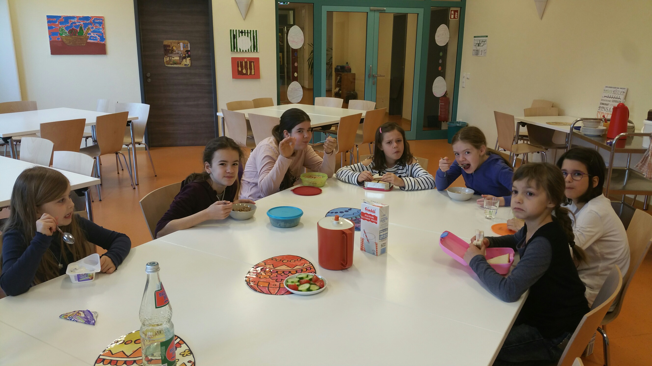 In der 2. Woche starteten wir mit 12 Kindern in die Osterferien. Beim Frühstücken erzählten alle vom Wochenende und vom Eiersuchen. Dann ging es ab ins Spielzimmer. Erst balancieren im Parcour, dann auspowern beim Fußballspiel. Am Mittwoch hatten wir unseren „Mitbringtag“, Lego, Tischspiele und Puppen eroberten die Ferienbetreuung. Am Nachmittag war genügend Zeit zum Basteln und die Kinder durften Hefeteig kneten und Zöpfe draus flechten. Diese gab es dann am Donnerstag zum Frühstück mit Butter oder Marmelade. Danach wurde weiter gebastelt und am Nachmittag machen wir im Hof ein tolles Fußballspiel auf dem Soccer, Schaukeln und Rutschen waren natürlich auch sehr beliebt. Den letzten Tag starteten wir mit mitgebrachten Tischspielen der Kinder. Dann ging es nach draußen. Wir machten einen Spaziergang zum Spielplatz an der Tennisanlage. Alle hatten viel Spaß und keiner wollte so wirklich zurück, aber das Mittagsessen wartete. Am Nachmittag wurde nochmal gebastelt und in unserem Garten ließen wir die Woche beim Tischtennis und Seilhüpfen ausklingen.