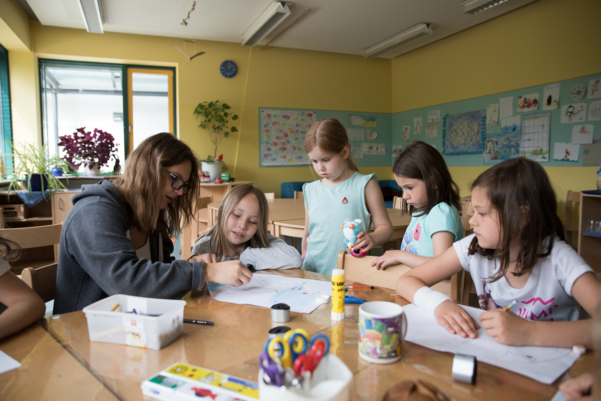 Die zwei kurzen Ferienwochen standen unter dem Motto „Wasser“. In der ersten Woche kreierten die 10 anwesenden Kinder ihre eigene Unterwasserwelt mit farbenfrohen Fischen, Höhlen und Pflanzen.