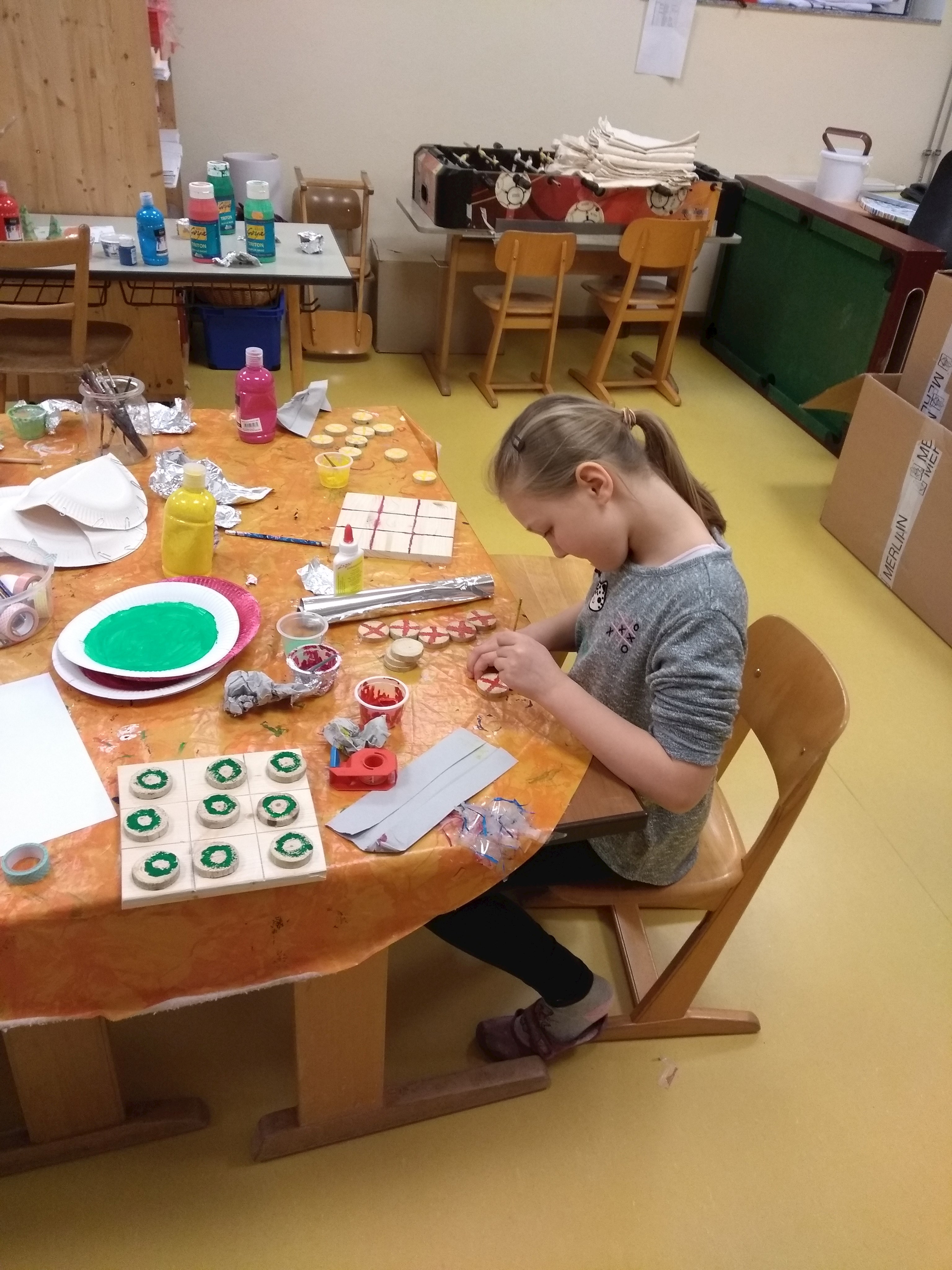 Sie mussten dazu die Spielsteine sägen, abschleifen, anmalen und bekleben. Heraus kamen tolle, ganz individuell gestaltete Spiele, die sie mit nach Hause nehmen konnten. Aber das war noch nicht alles.
