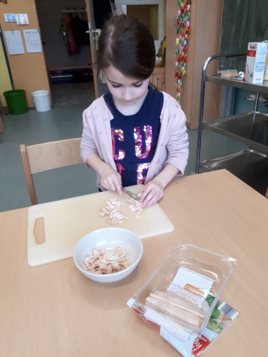 Wir backten noch verschiedene Waffelvariationen, von herzhaft bis süß und bauten aus Kartons ein Auto und eine Rakete. Lustig wurde es beim Ratespiel „Wer bin ich“, ein Traktor, ein Zebra oder ein Stinktier?