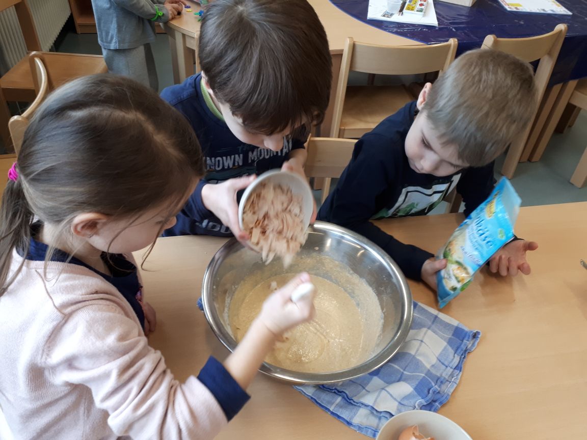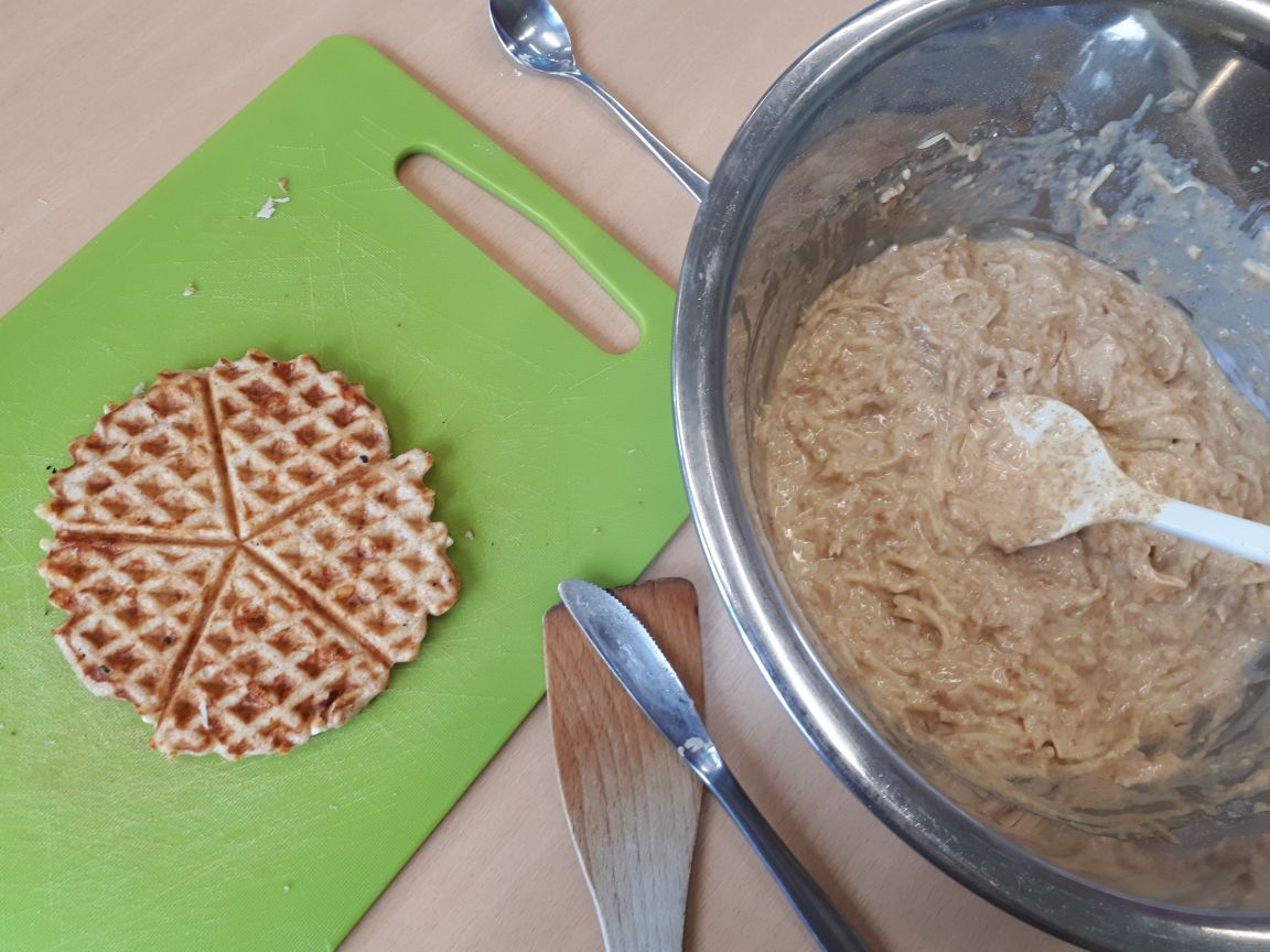 Wir backten noch verschiedene Waffelvariationen, von herzhaft bis süß und bauten aus Kartons ein Auto und eine Rakete. Lustig wurde es beim Ratespiel „Wer bin ich“, ein Traktor, ein Zebra oder ein Stinktier?