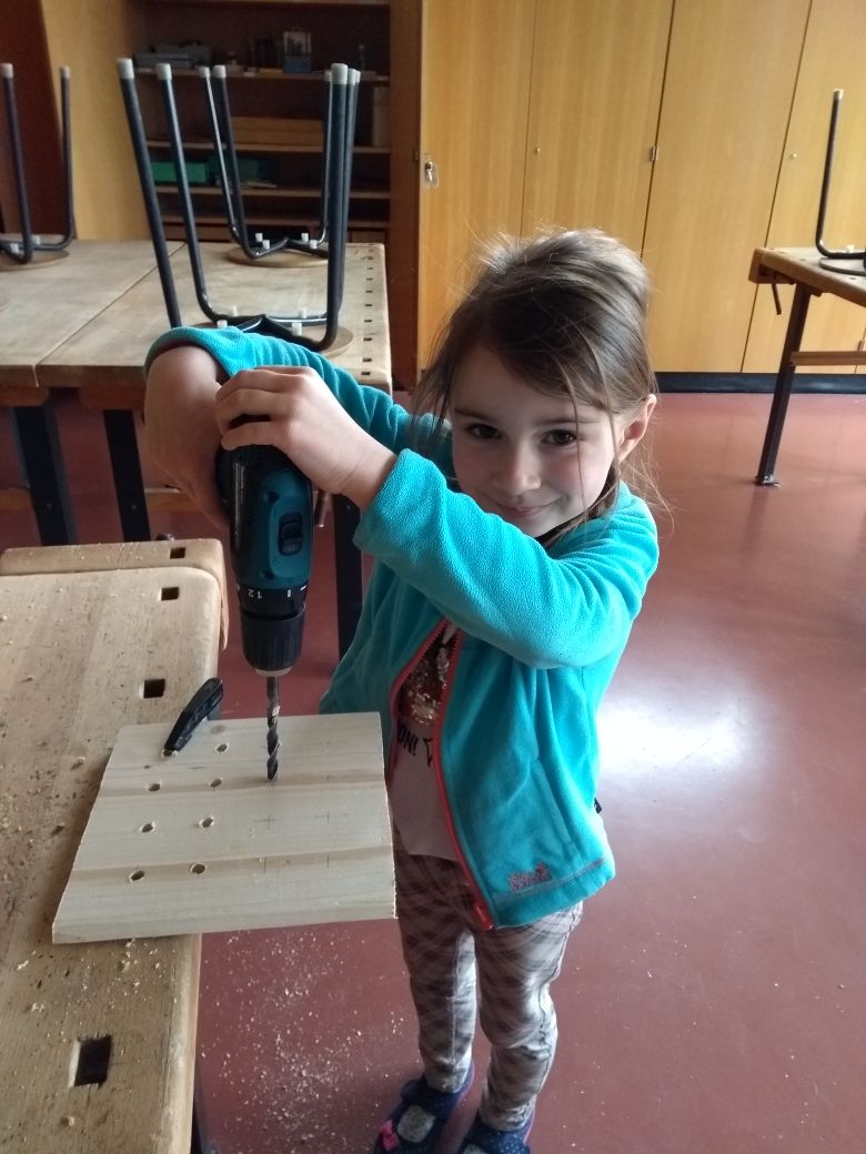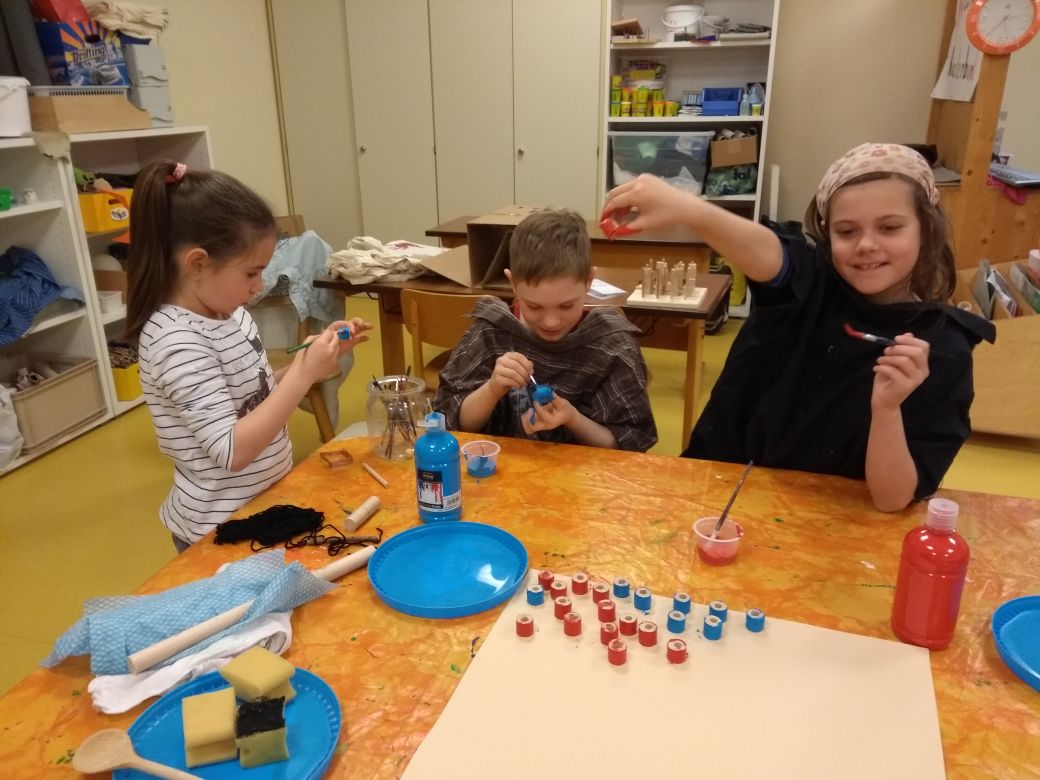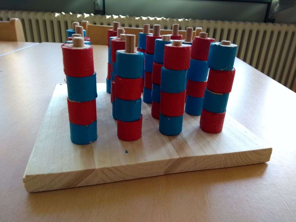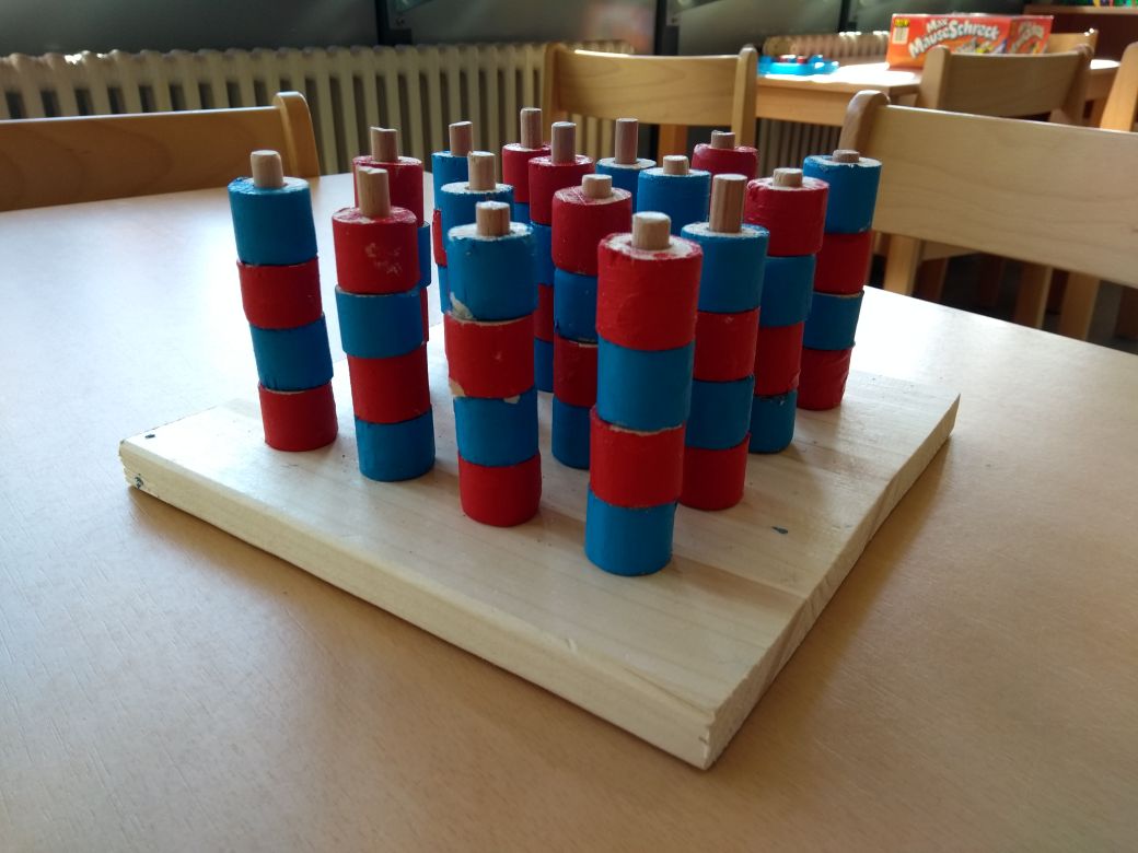 Die verregneten Tage waren auch nicht weiter schlimm, denn dann bauten wir aus Holz ein kompliziertes 3D Vier-gewinnt-Spiel. Es bedurfte großer Mühe die 64 einzelnen Teile zu sägen, zu bohren und anzumalen. Doch das Ergebnis war die Mühe wert und alle Kinder hatten große Freude daran.