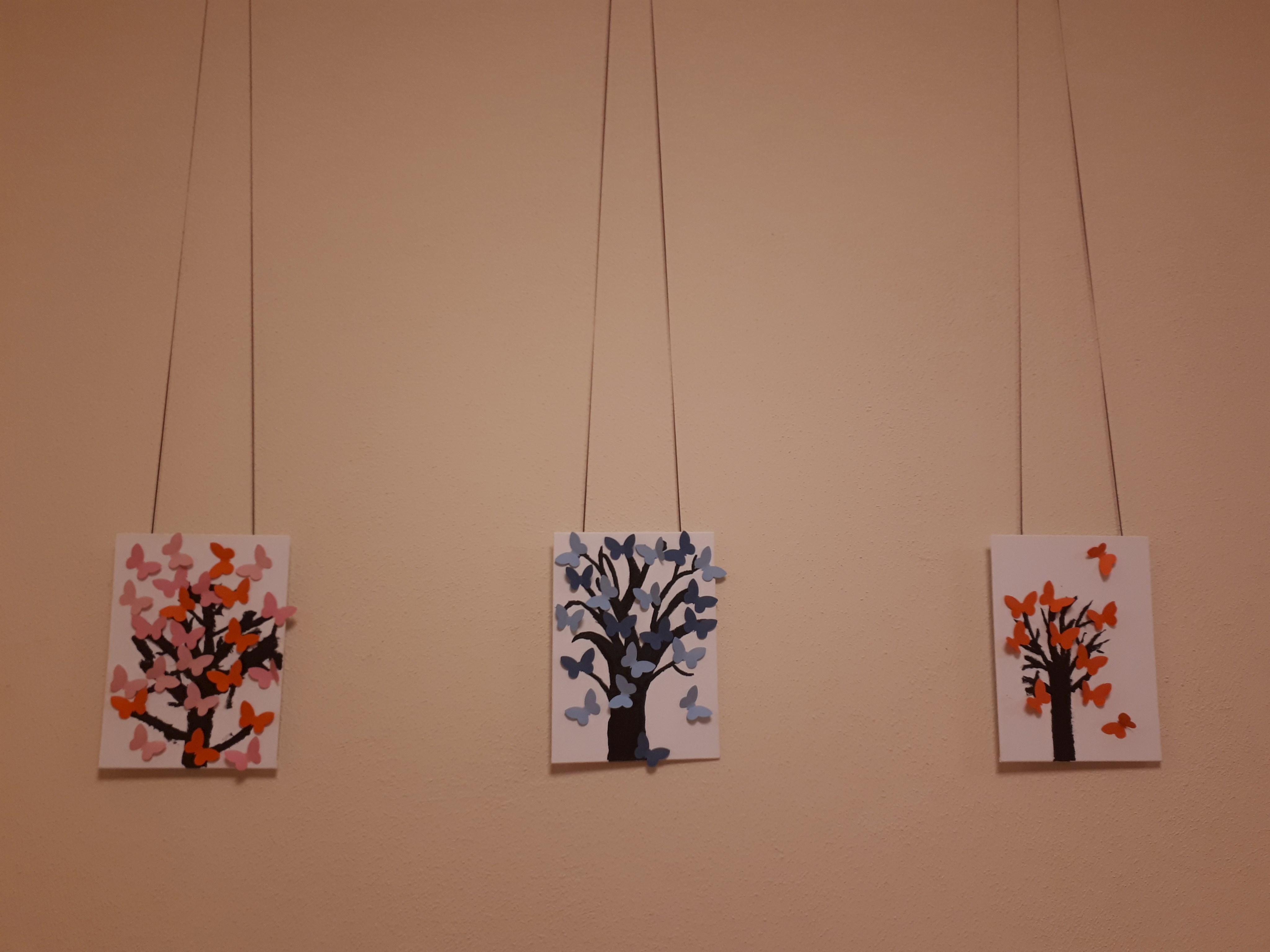 Danach wurden wir kreativ und gestalteten eine kleine Leinwand mit Bäumen in 3D Optik. Diese werden wieder bei uns im Flur der Mittagsbetreuung ausgestellt.