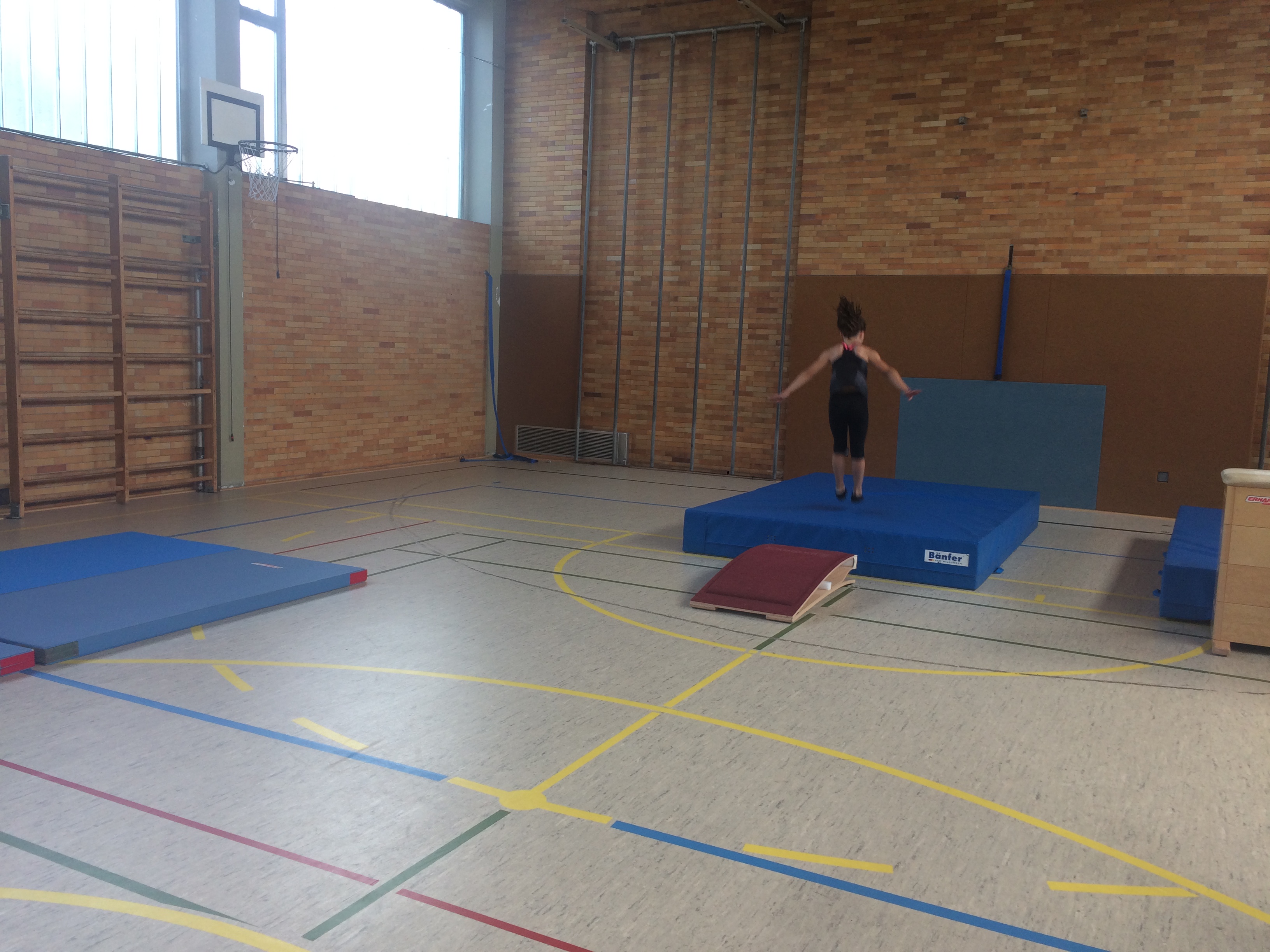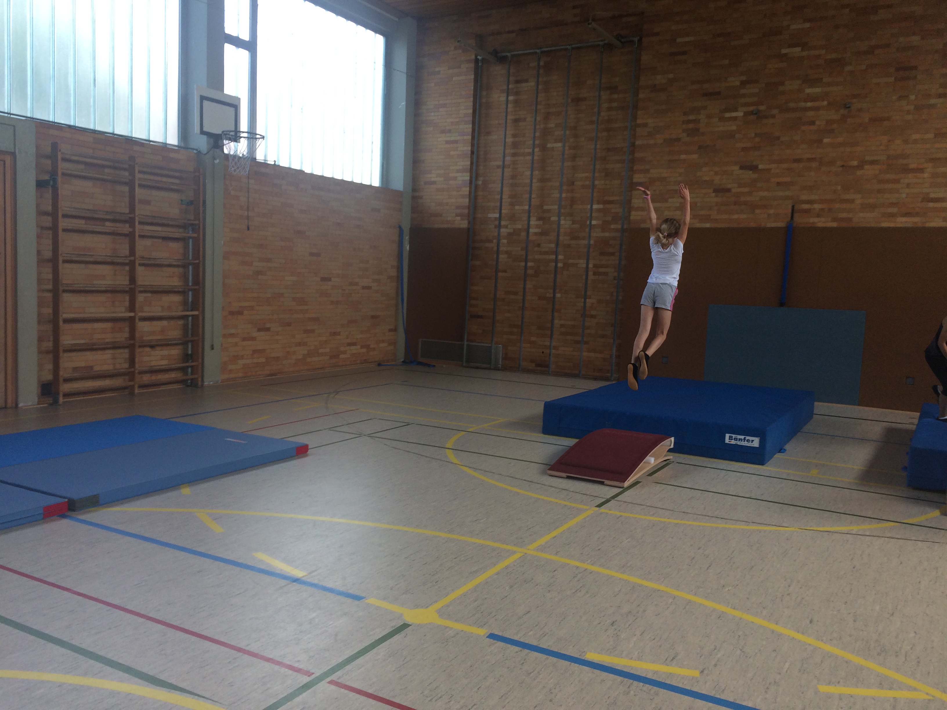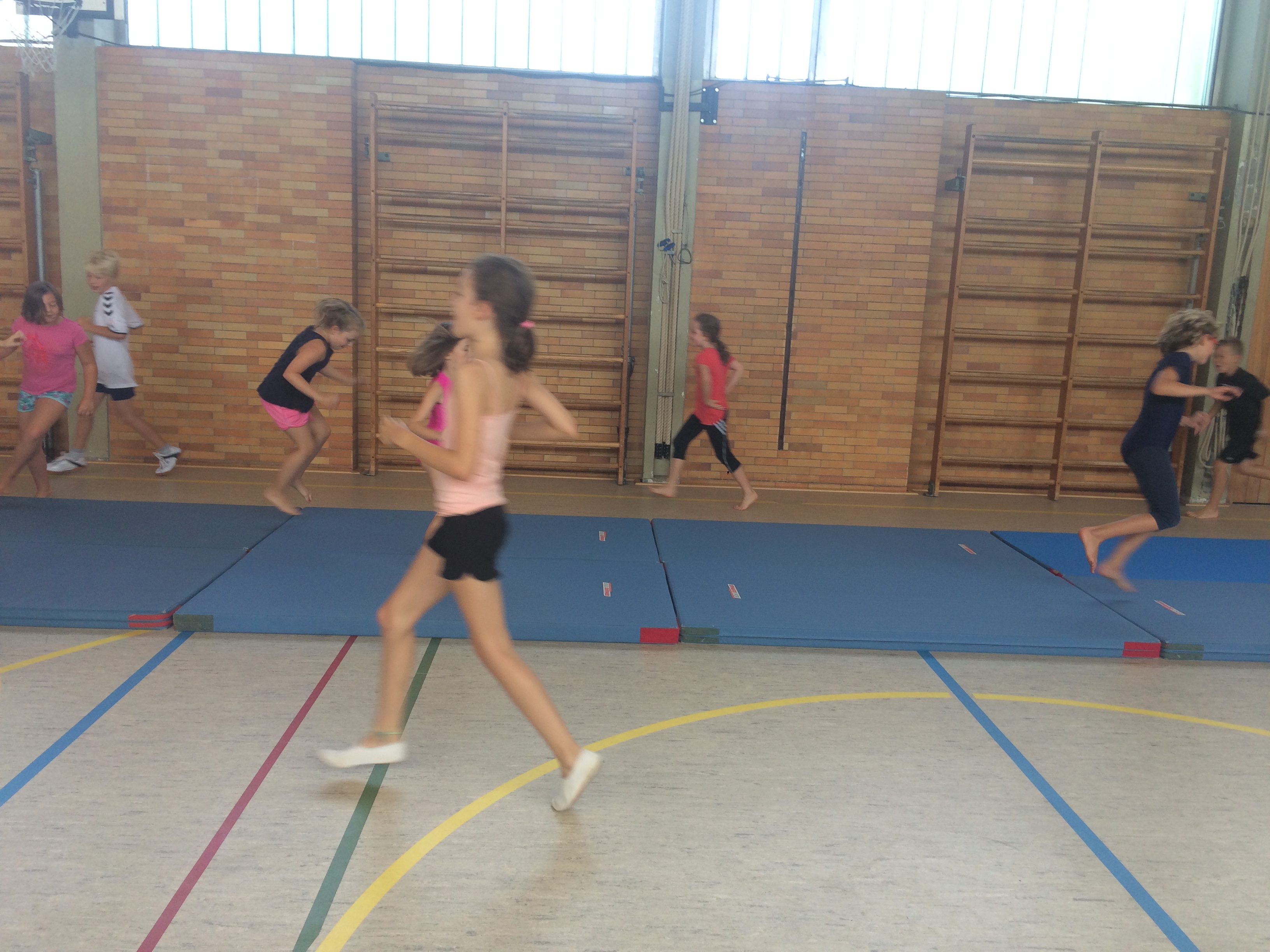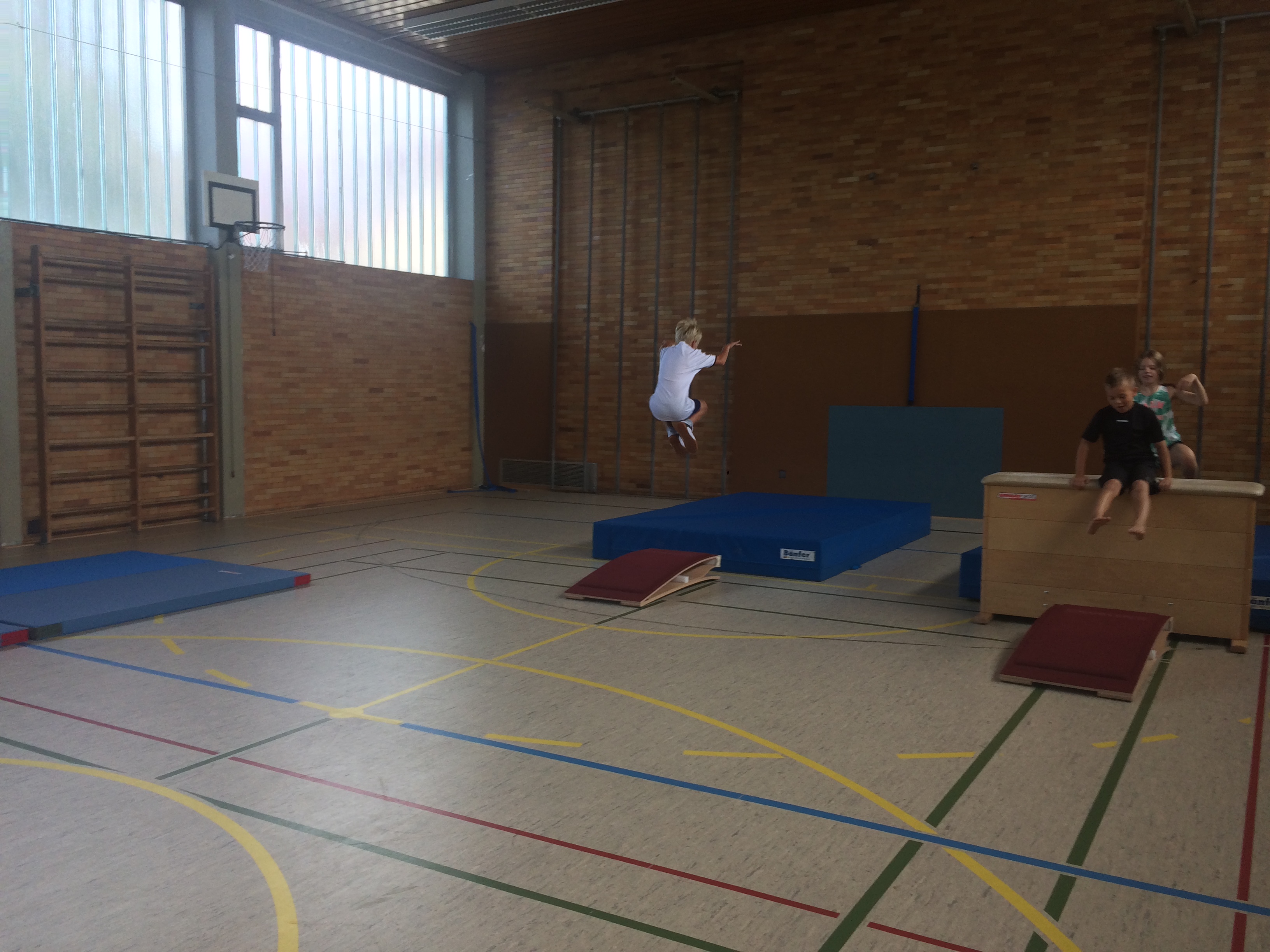 Bodenturnen und vom Sprungbrett auf die Matte springen/Rolle machen (Turnverein)