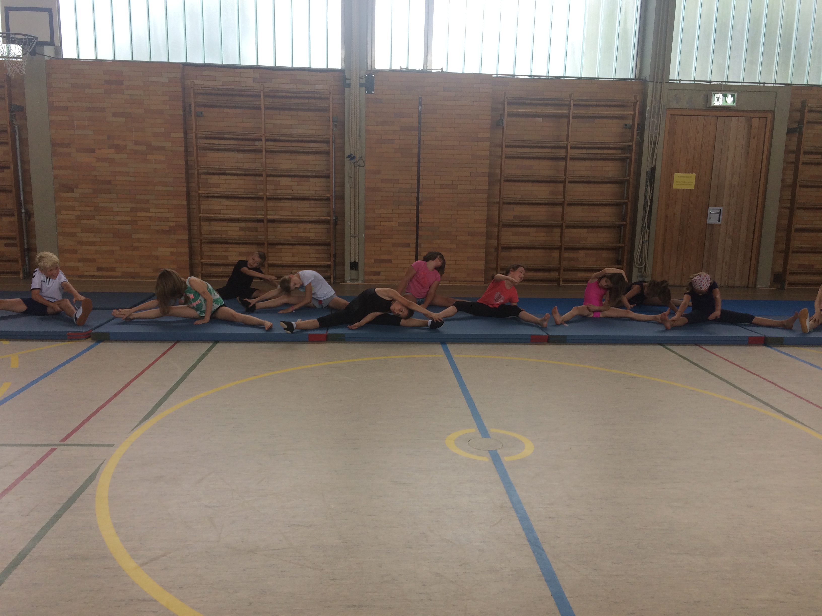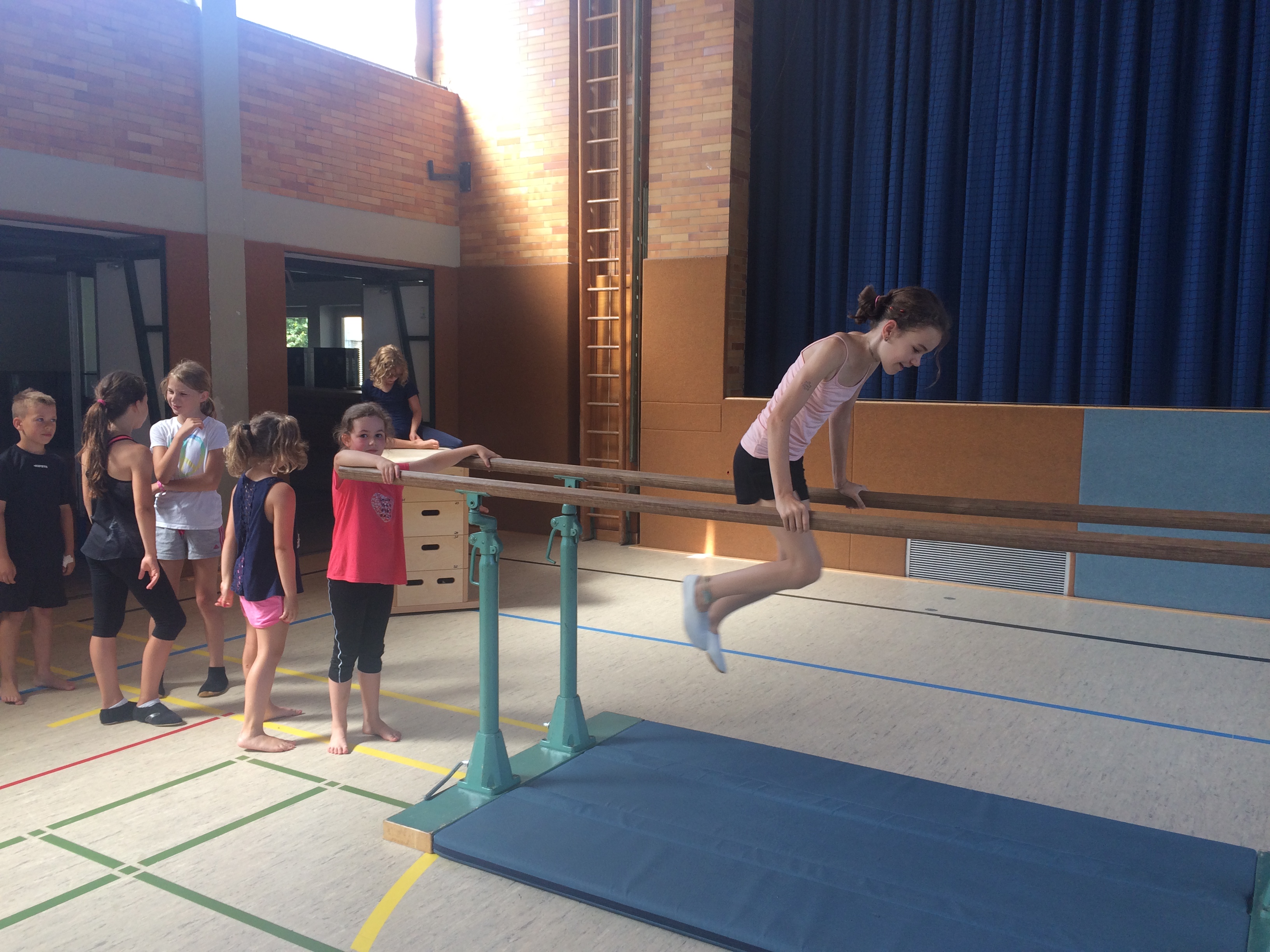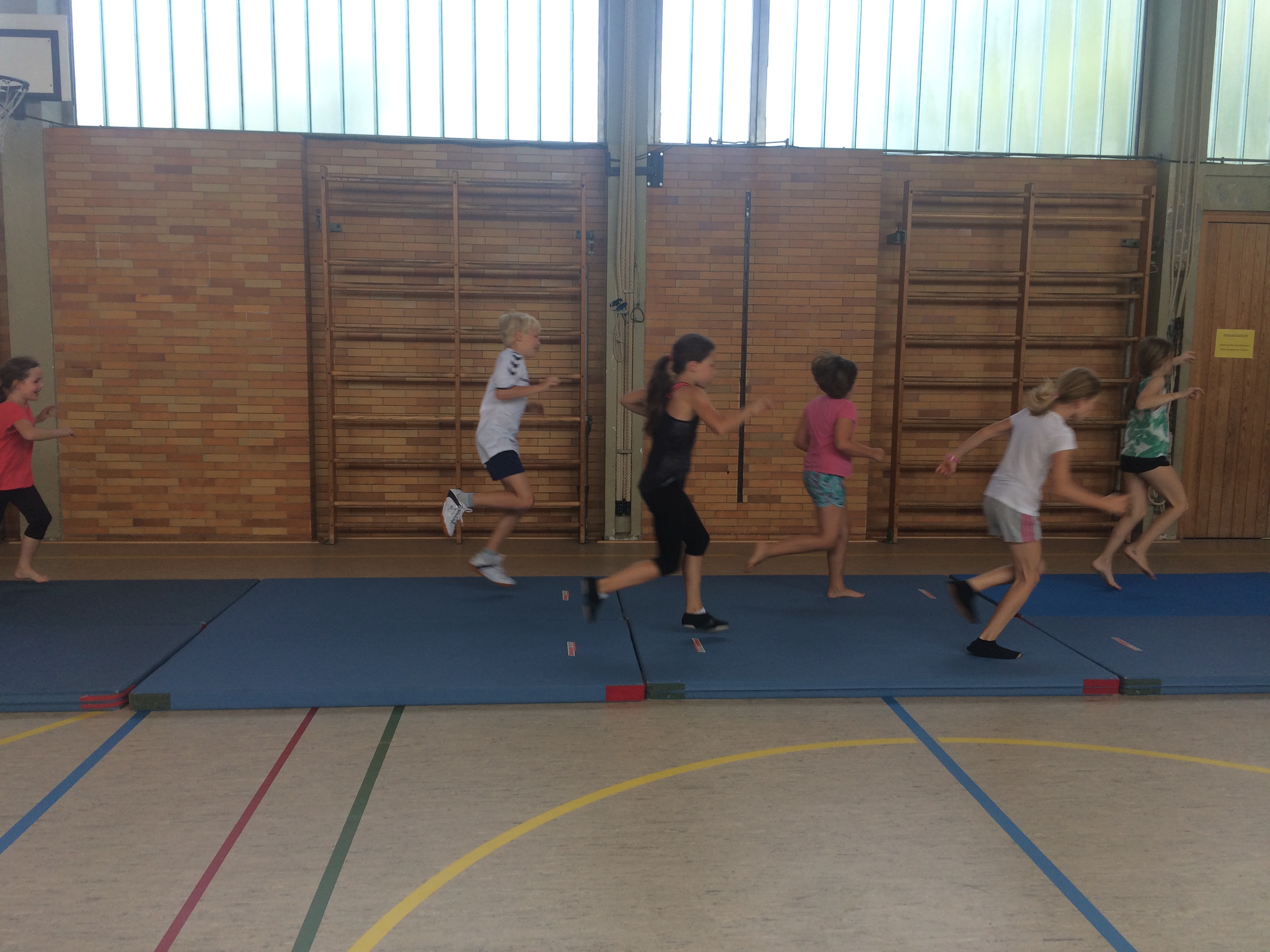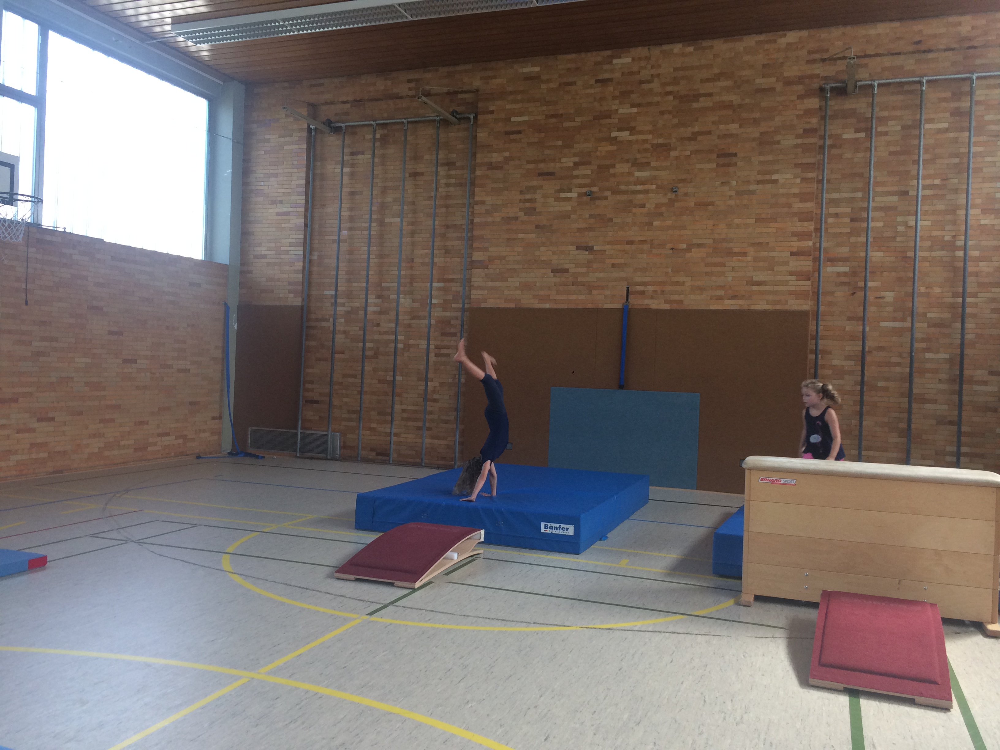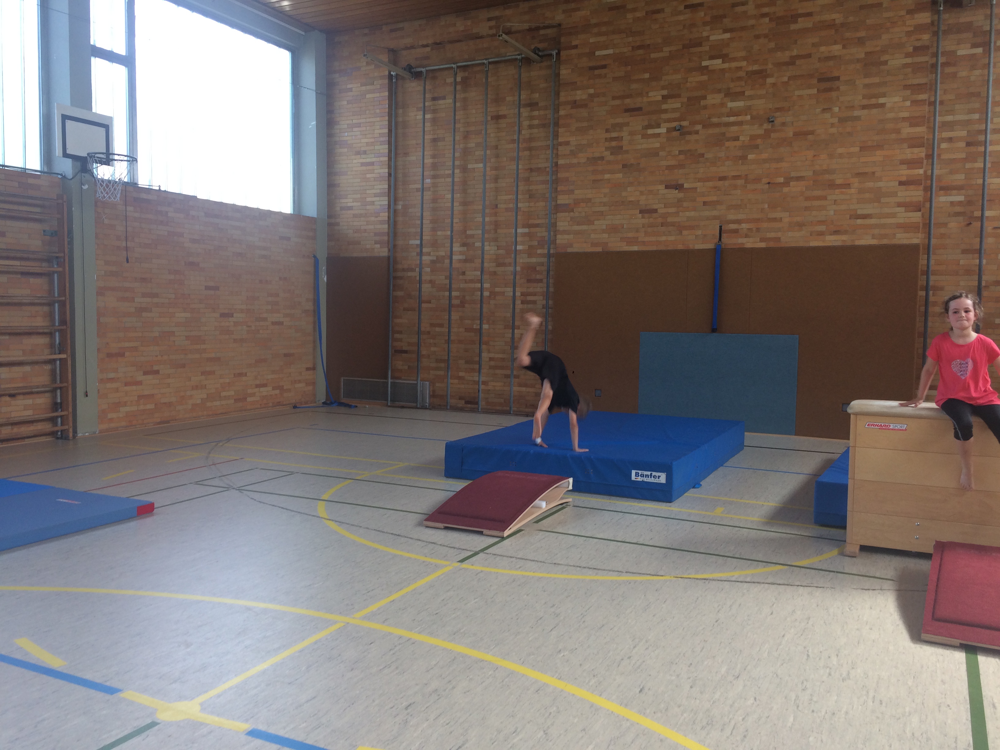 Bodenturnen und vom Sprungbrett auf die Matte springen/Rolle machen (Turnverein)