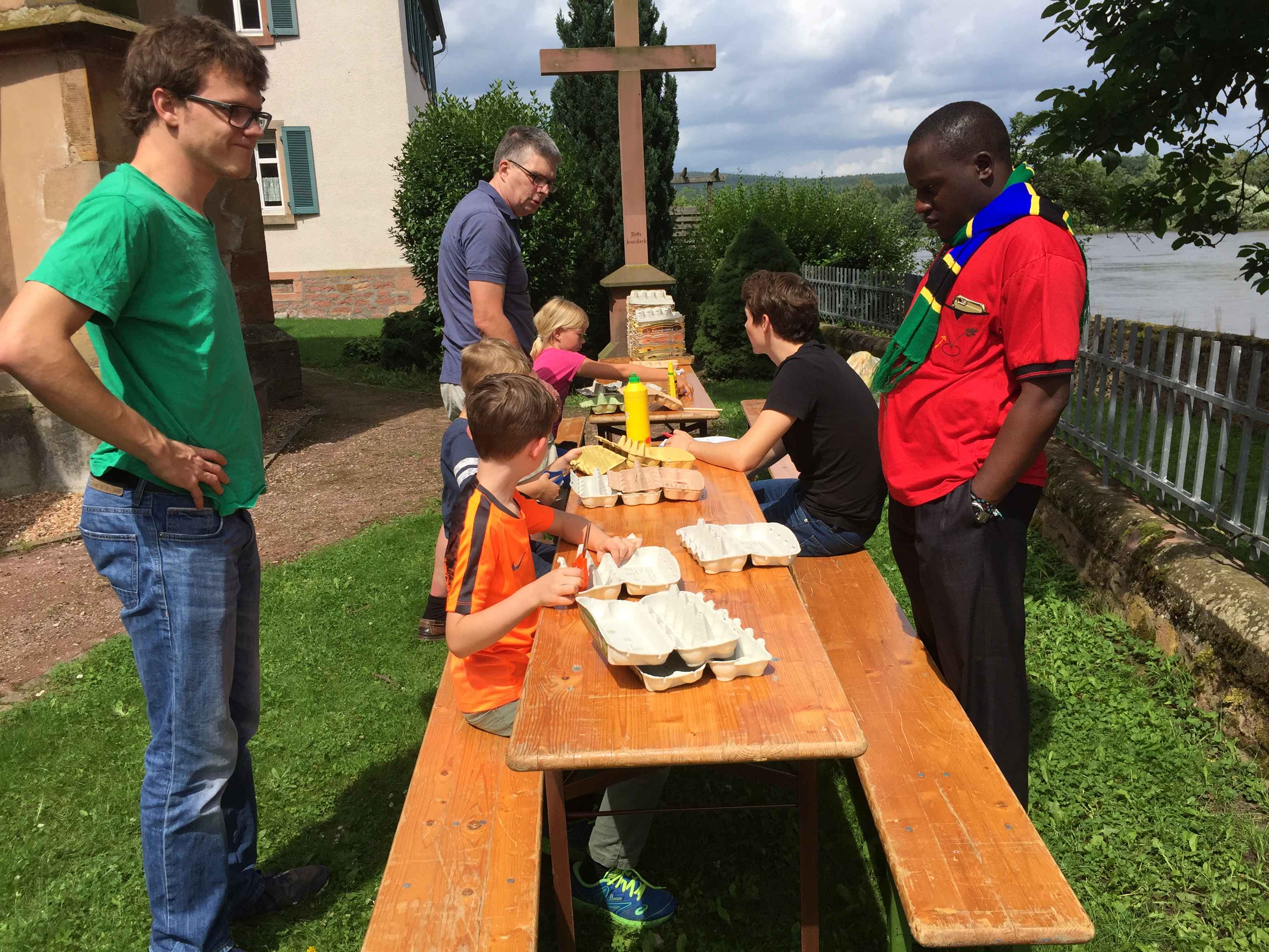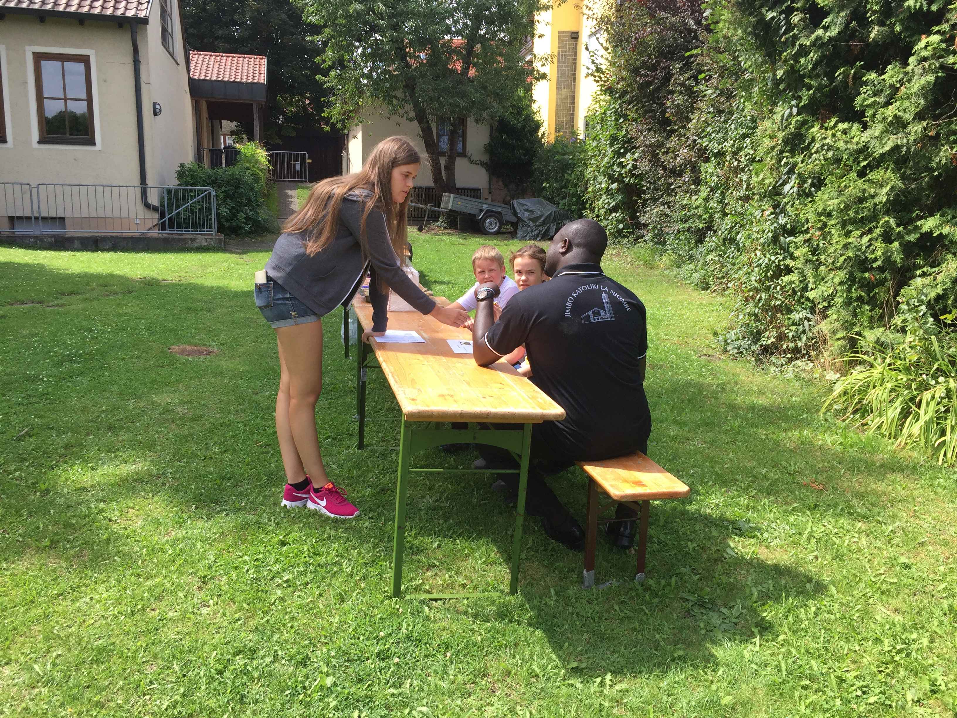 Am letzten Schultag starteten die Ferienspiele mit Feuer im Gemäuer. Rund um die Kirche war einiges los. Neben den Aktionen konnten die teilnehmenden Kinder auch sechs Tansanier, die bei der KjG zu Besuch waren, kennenlernen.