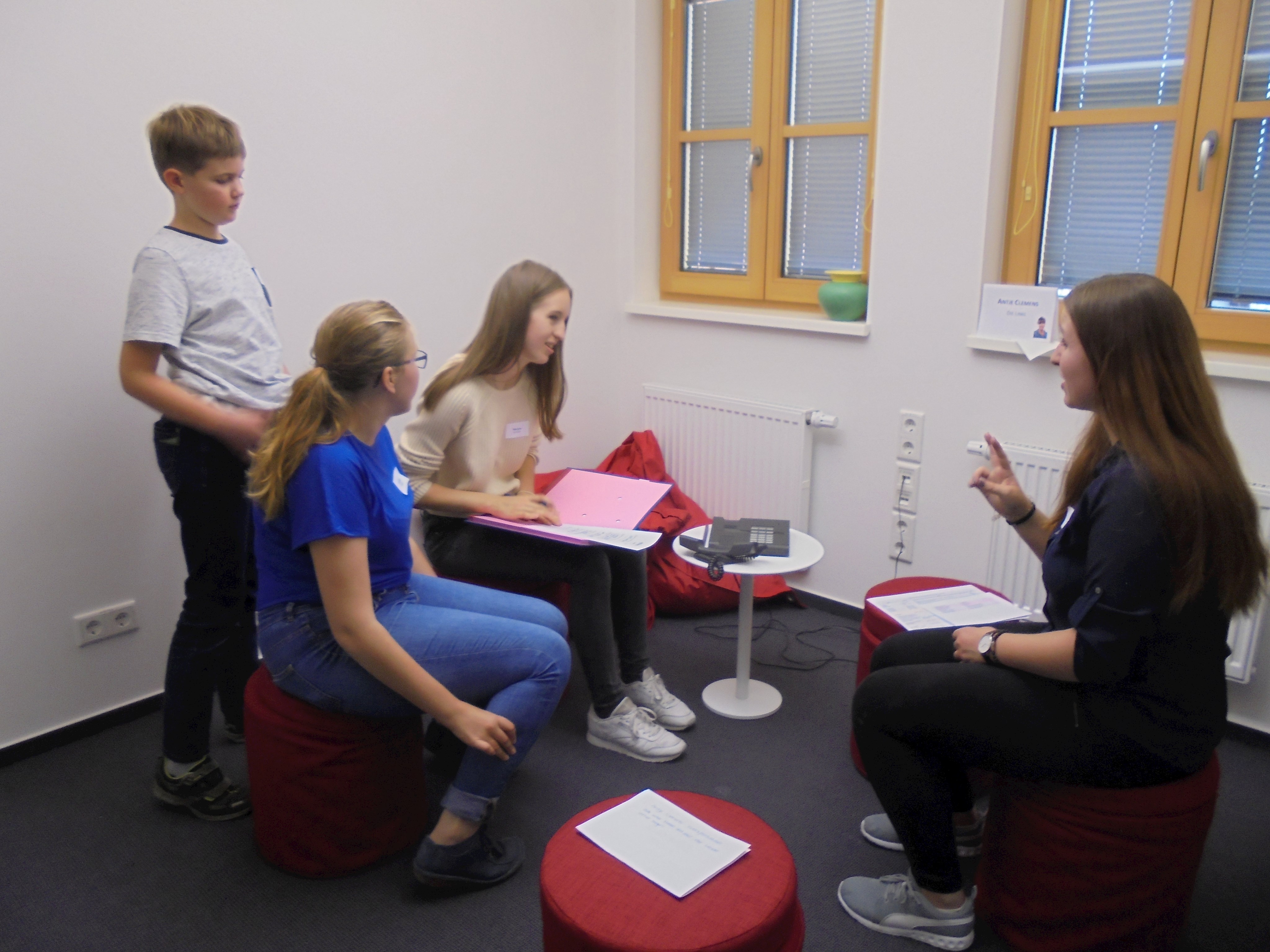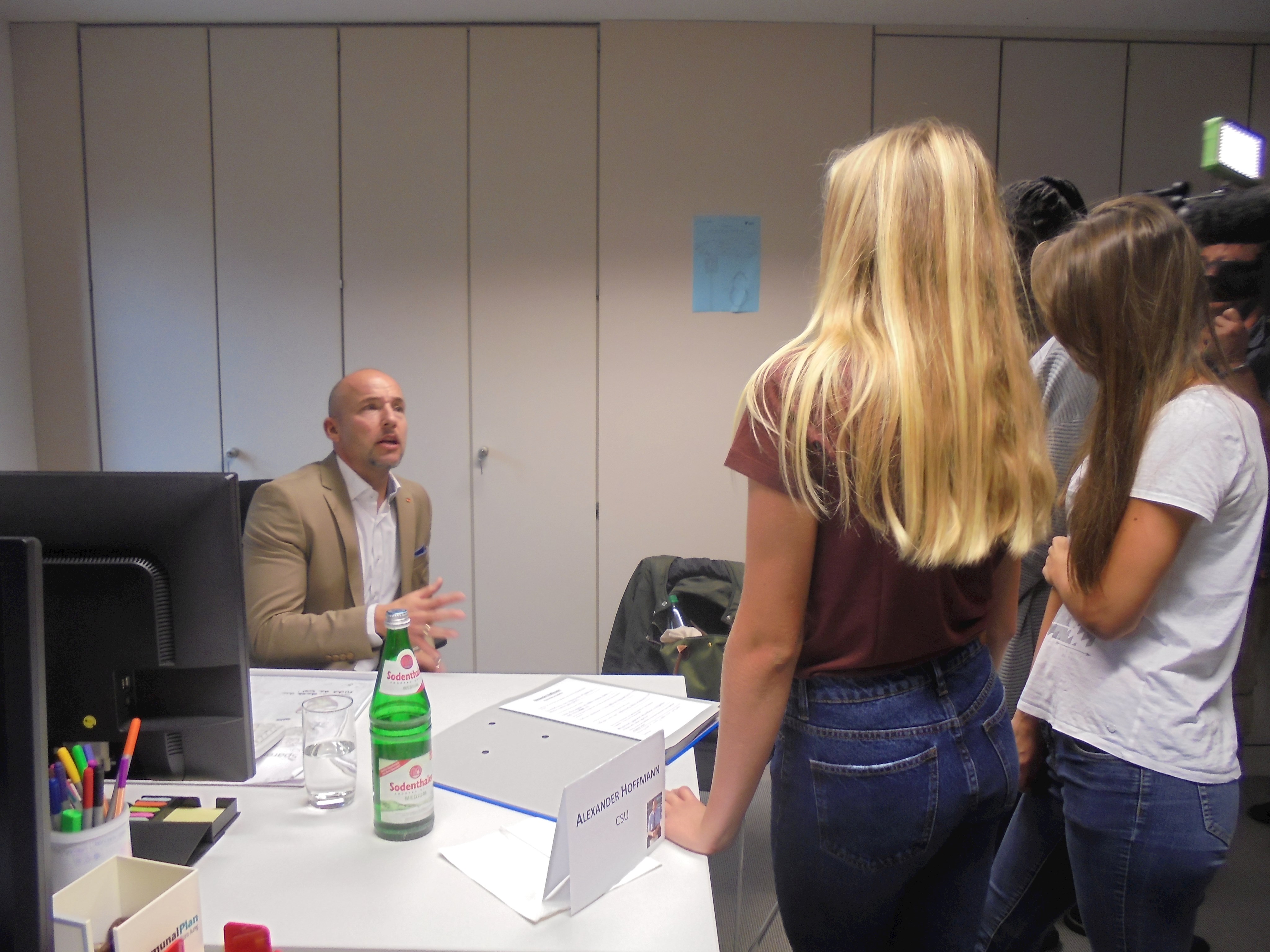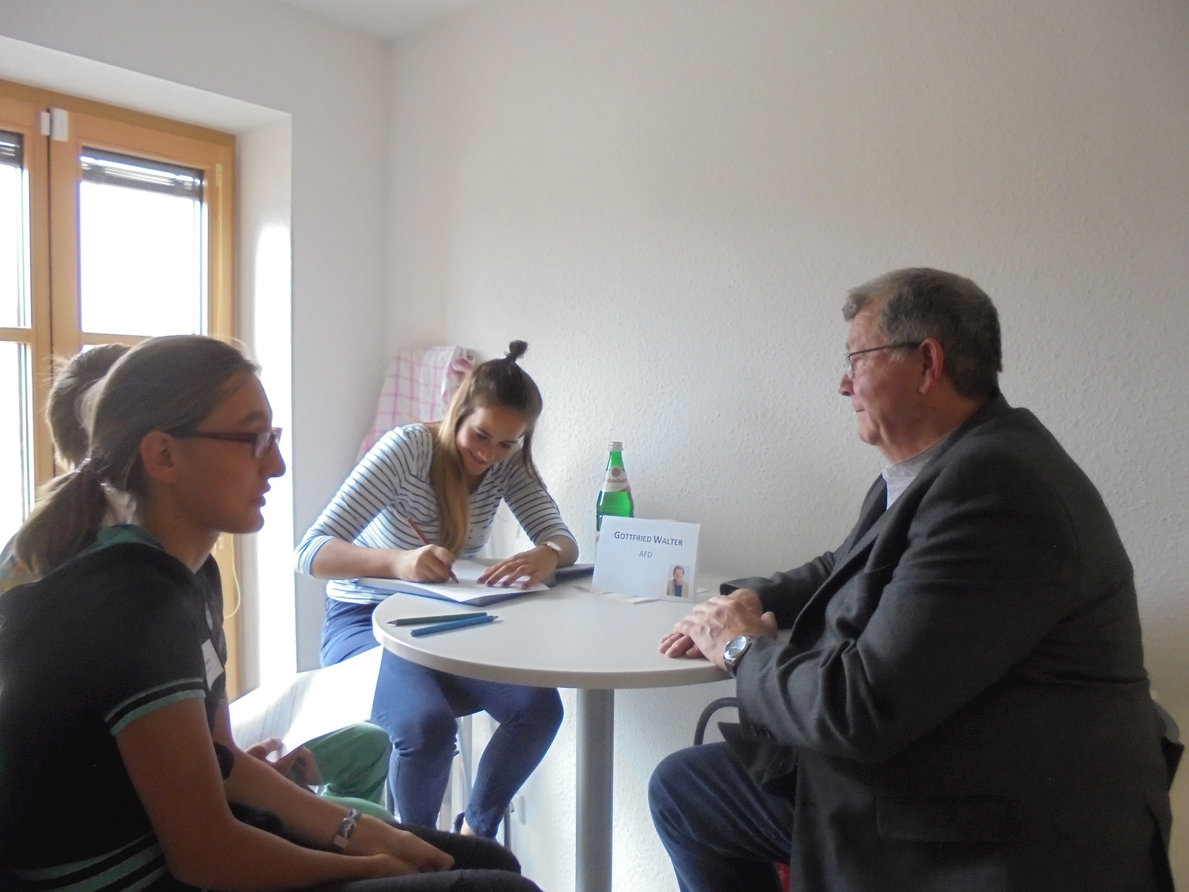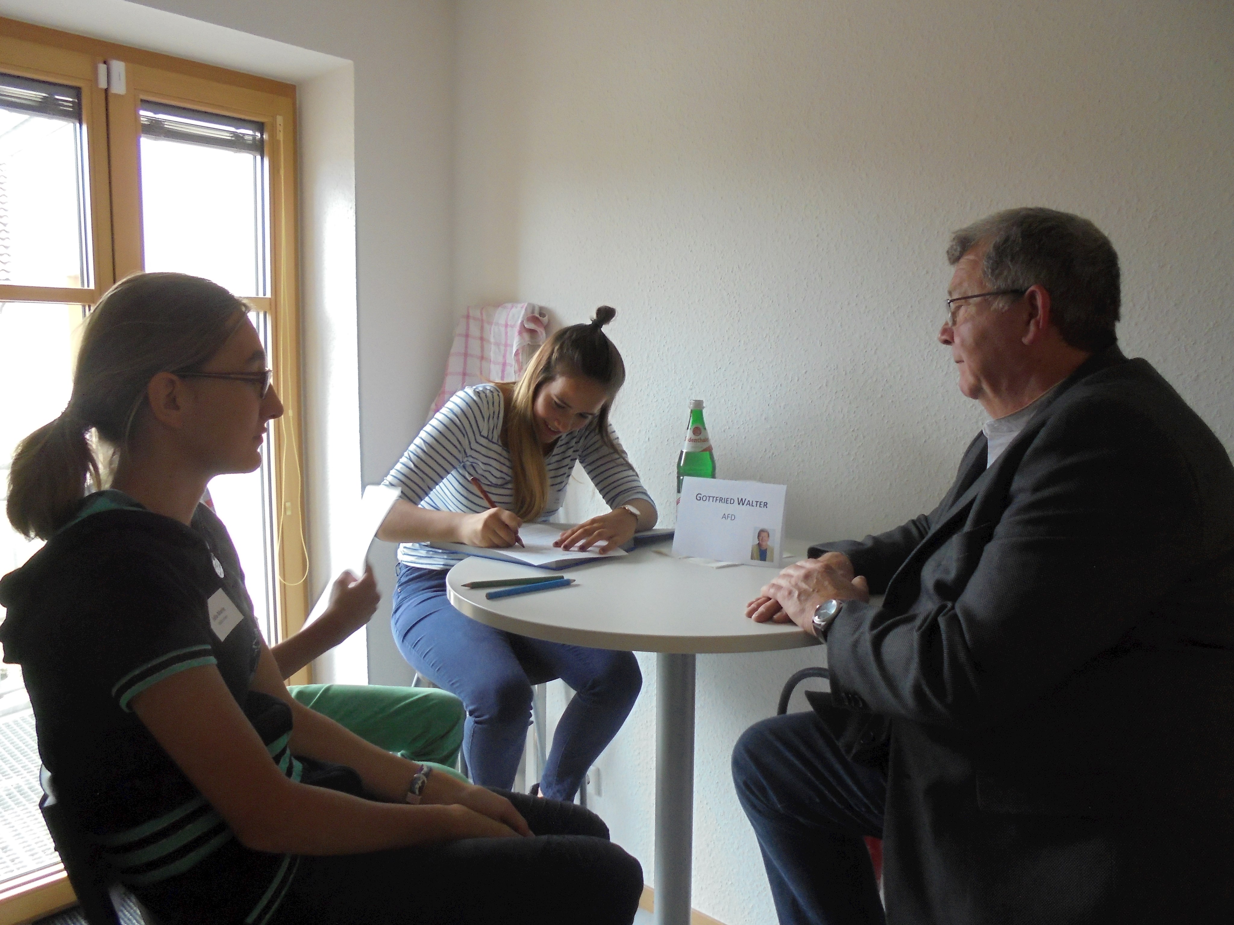 Des Weiteren durften alle Kinder und Jugendlichen die Politiker interviewen. Dabei wurden sie in verschiedene Gruppen mit unterschiedlichen Kategorien (Familie, Privatleben, Bundestag, Wahlkampf, Beruf, Politik, Kinder und Jugendliche und Partei) aufgeteilt. Alle Gruppen durften jeden einzelnen Politiker mit ihrem Thema befragen, mit zwei Politikern wurde ein Telefoninterview durchgeführt, da sie leider verhindert waren bzw. die Veranstaltung früher verlassen mussten.