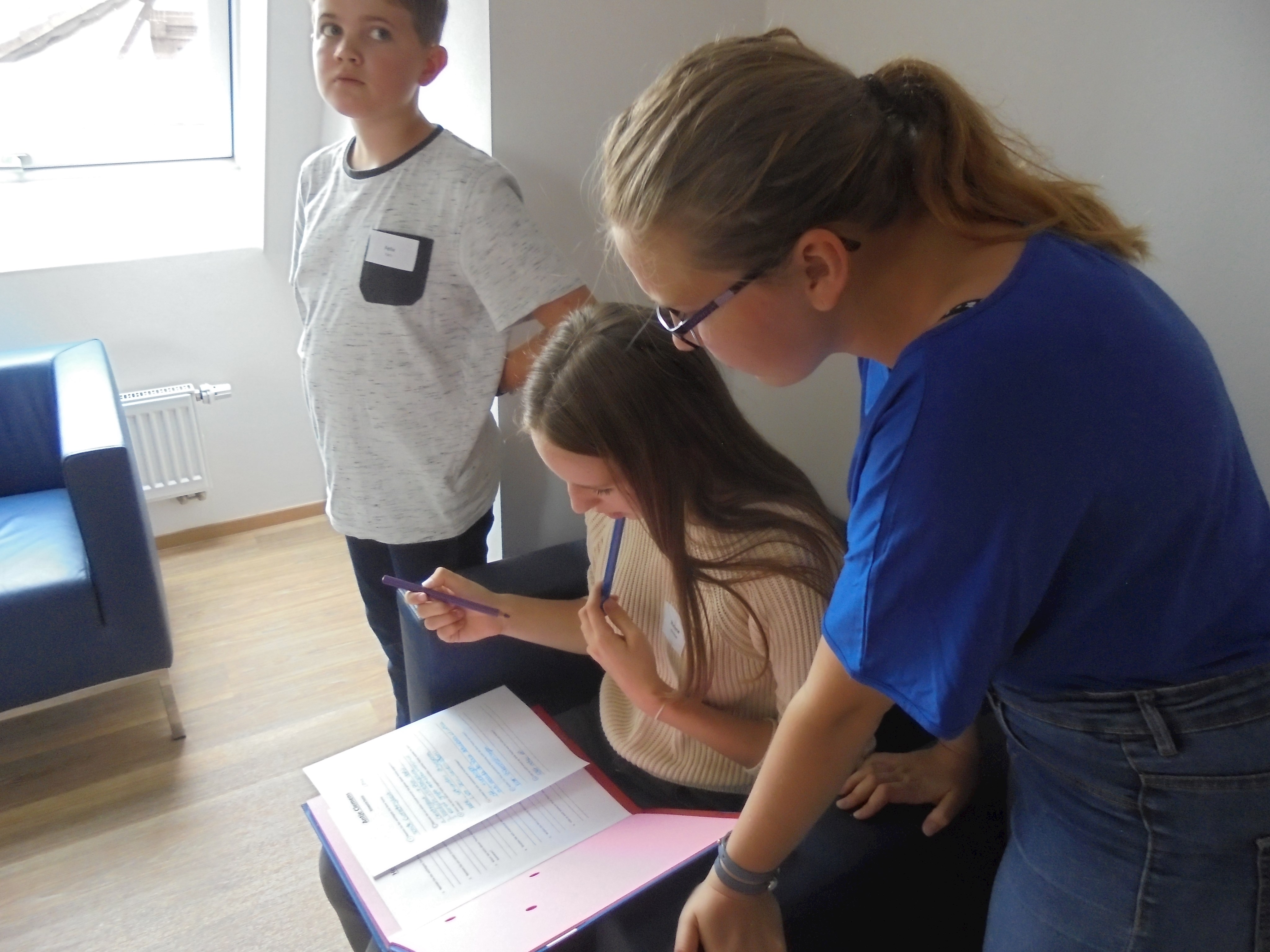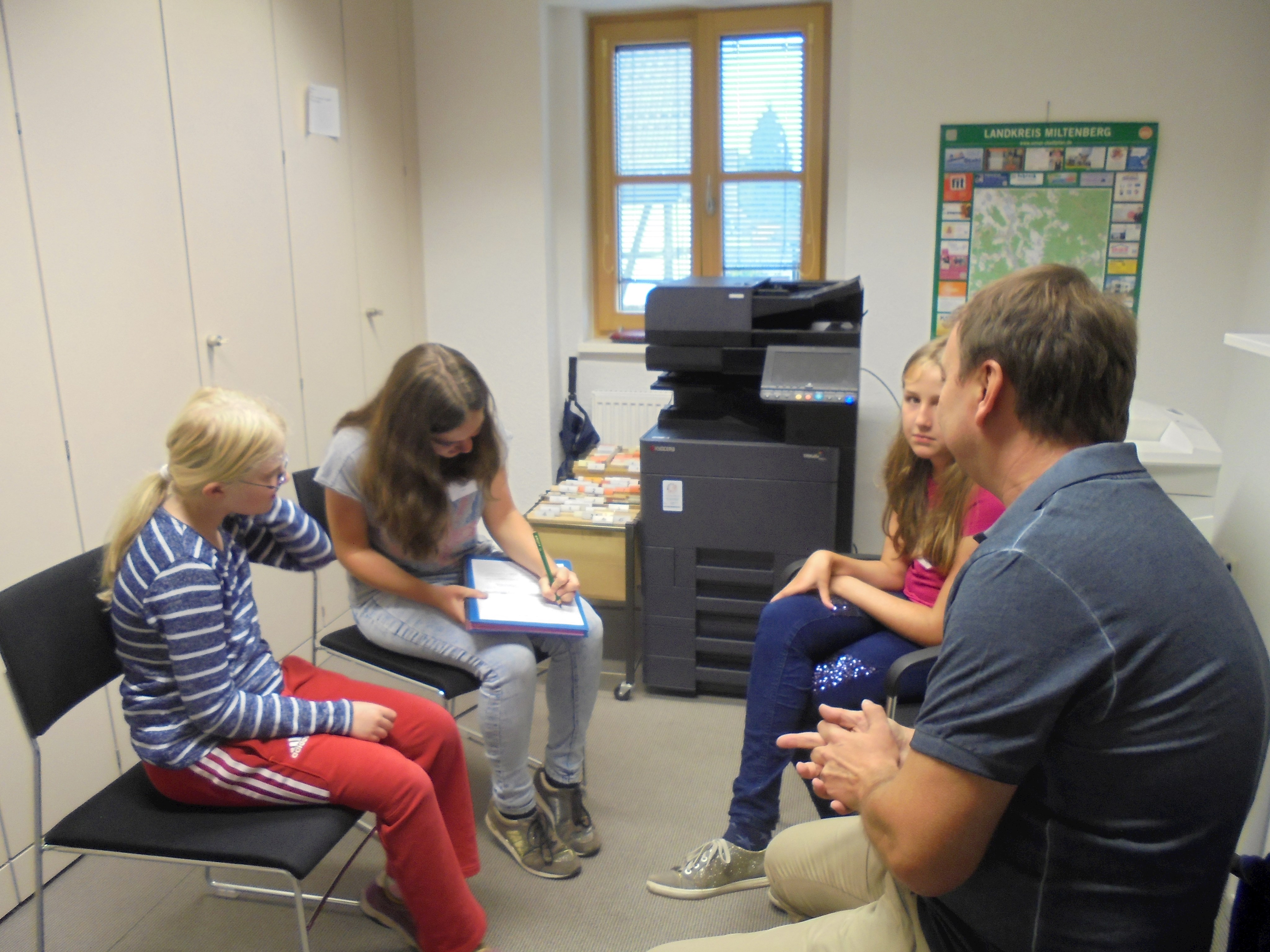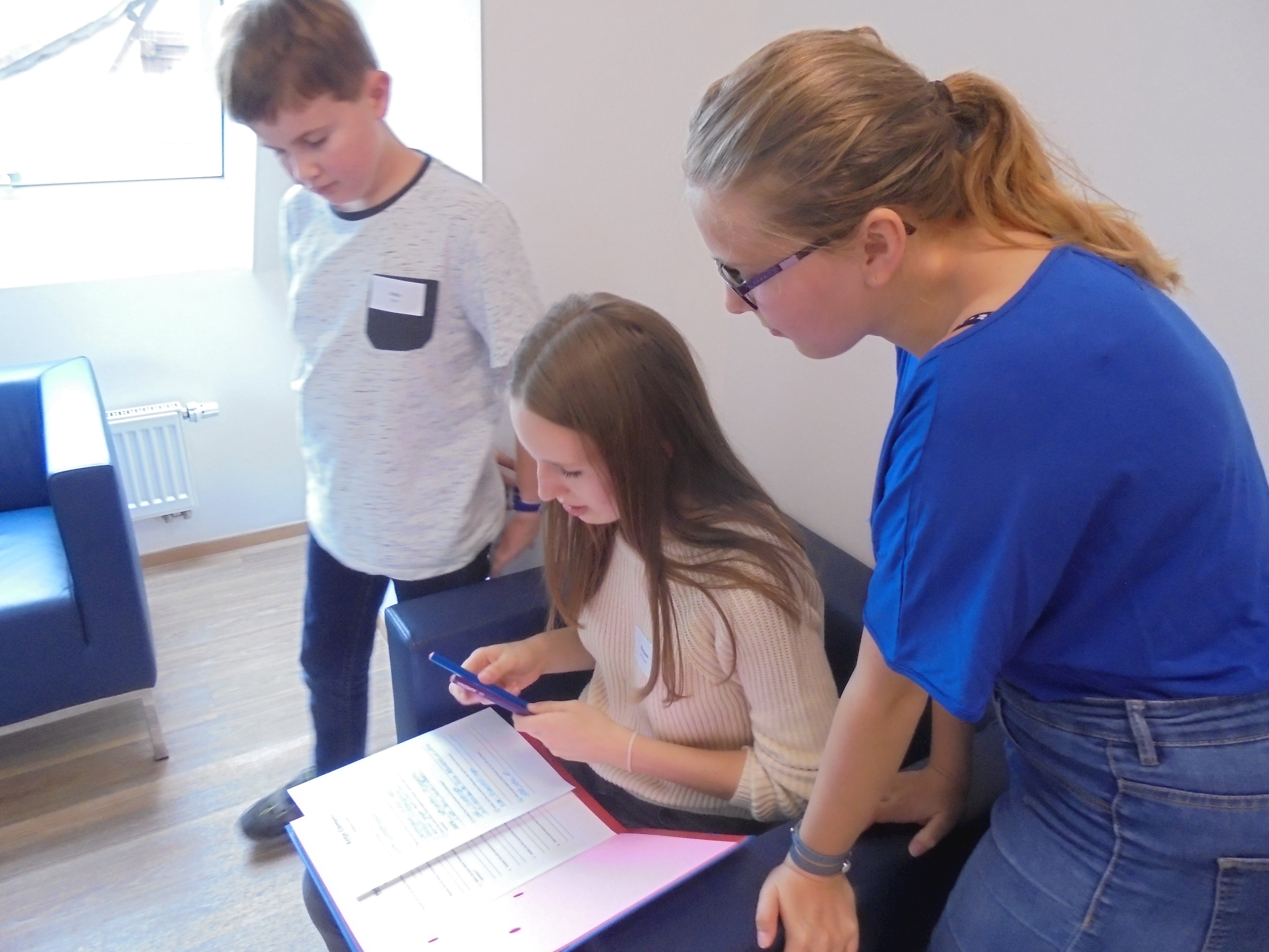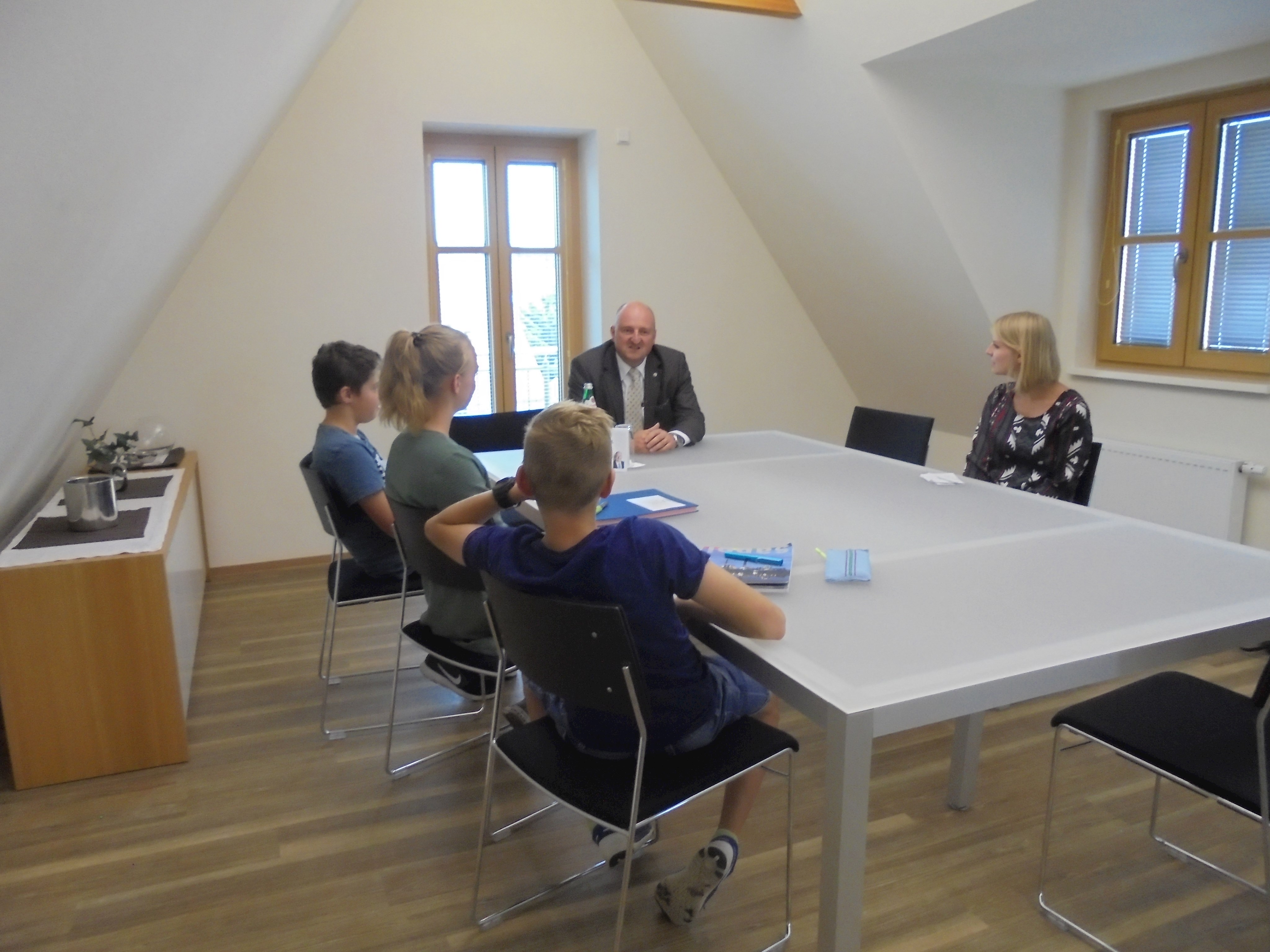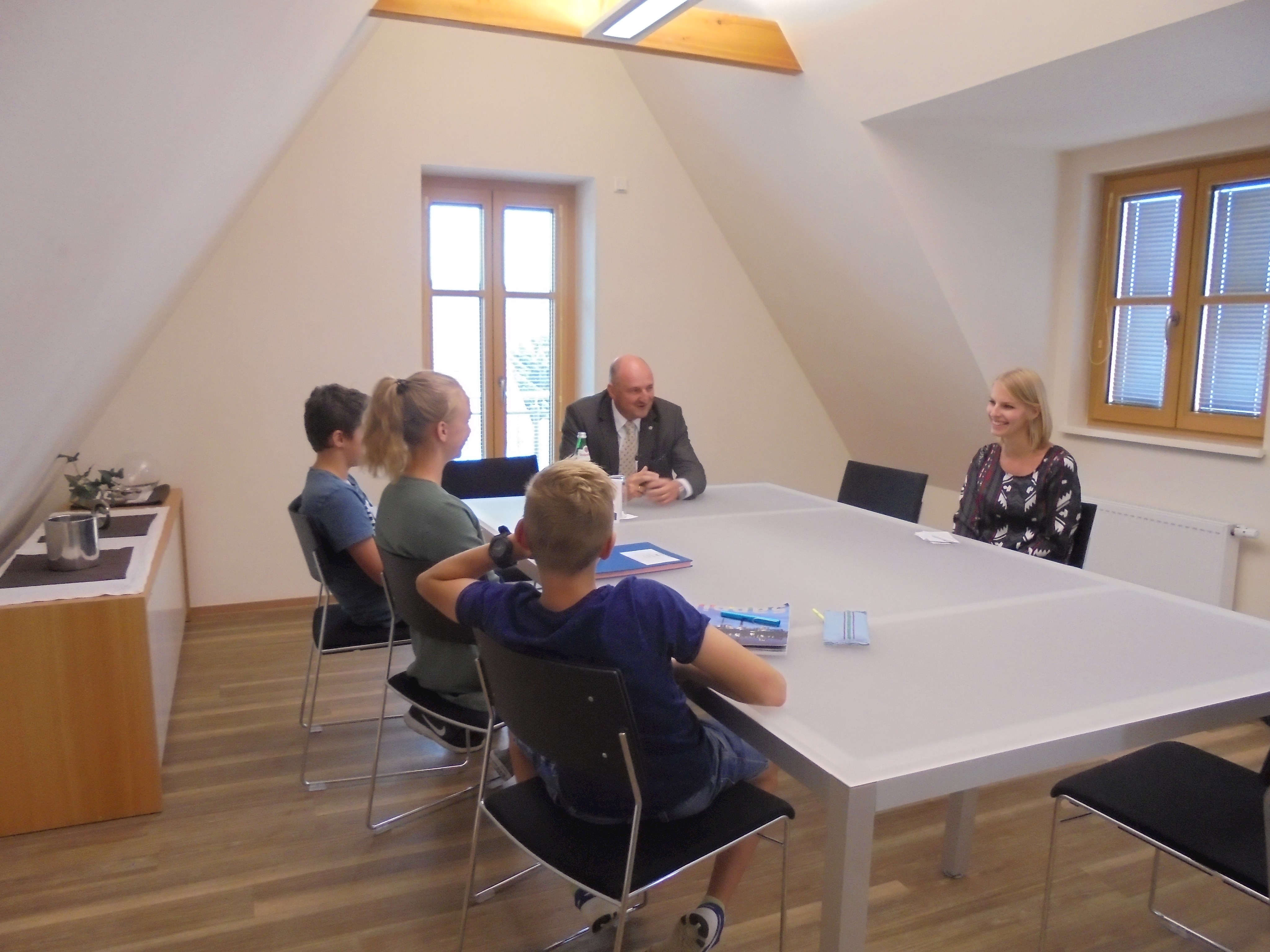 Des Weiteren durften alle Kinder und Jugendlichen die Politiker interviewen. Dabei wurden sie in verschiedene Gruppen mit unterschiedlichen Kategorien (Familie, Privatleben, Bundestag, Wahlkampf, Beruf, Politik, Kinder und Jugendliche und Partei) aufgeteilt. Alle Gruppen durften jeden einzelnen Politiker mit ihrem Thema befragen, mit zwei Politikern wurde ein Telefoninterview durchgeführt, da sie leider verhindert waren bzw. die Veranstaltung früher verlassen mussten.
