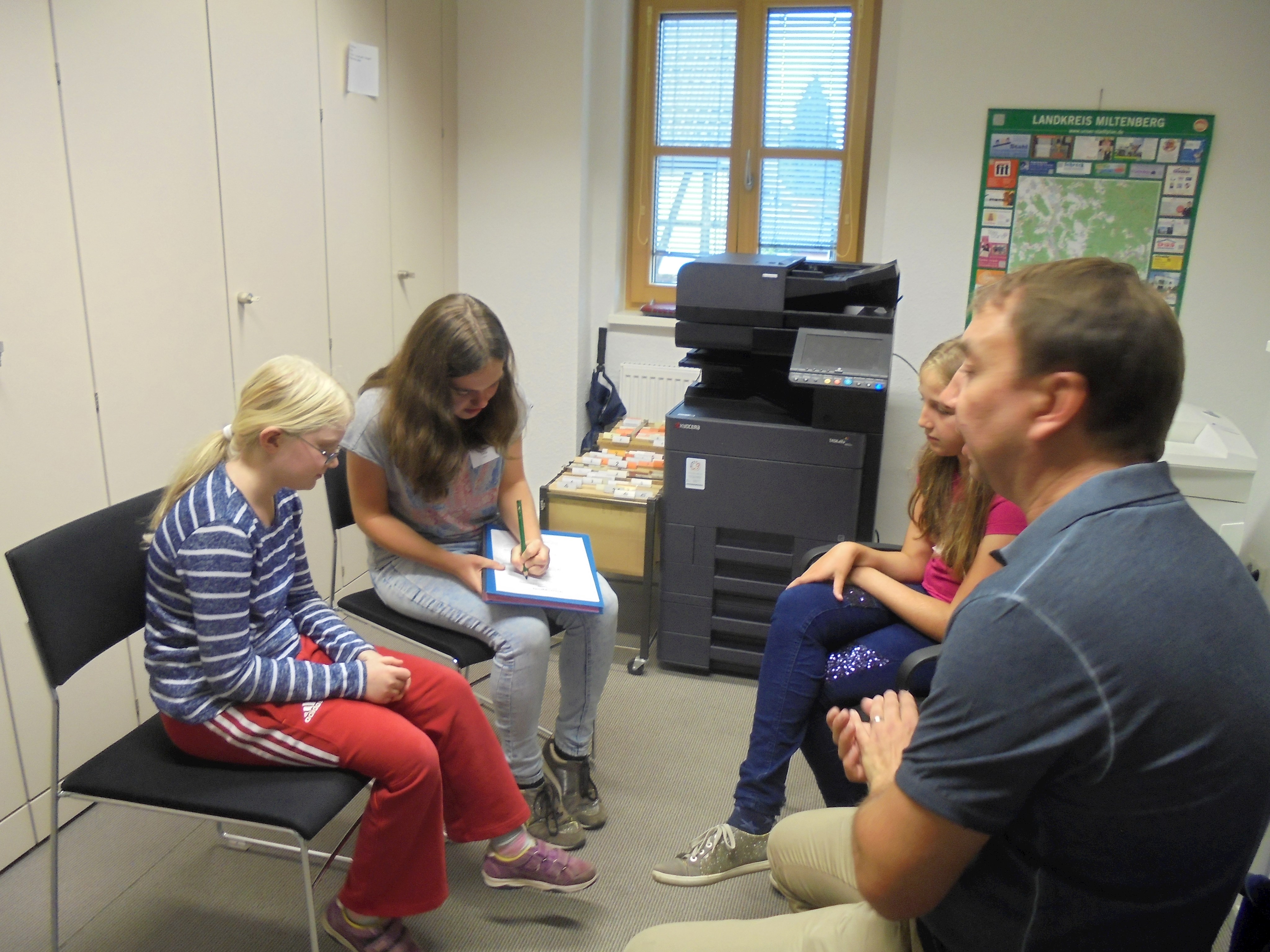 Um 13 Uhr fanden sich alle Teilnehmer und Teilnehmerinnen mit allen Politikern im Sitzungssaal ein. Danach haben die Kinder und Jugendlichen das jeweils passende Bild, die Größe, die Partei, das Alter und das Lieblingsessen der einzelnen Politiker zugeordnet. Damit sich alle besser kennenlernen konnten, wurde zunächst das Spiel „People Bingo“ gespielt. Dabei lernten sie weitere Informationen und Interessen der Teilnehmer und Teilnehmerinnen, sowie von den einzelnen Politikern, kennen.