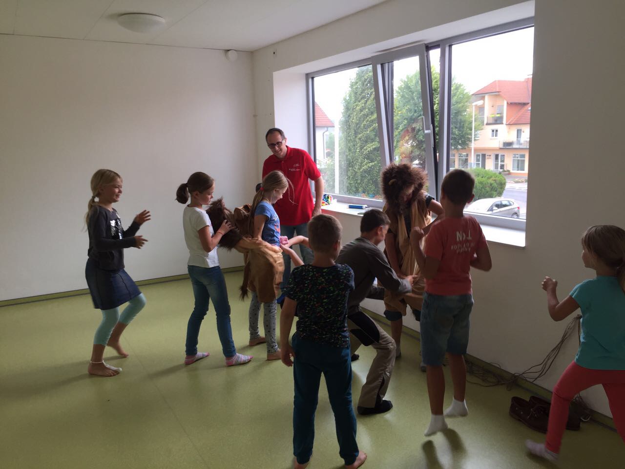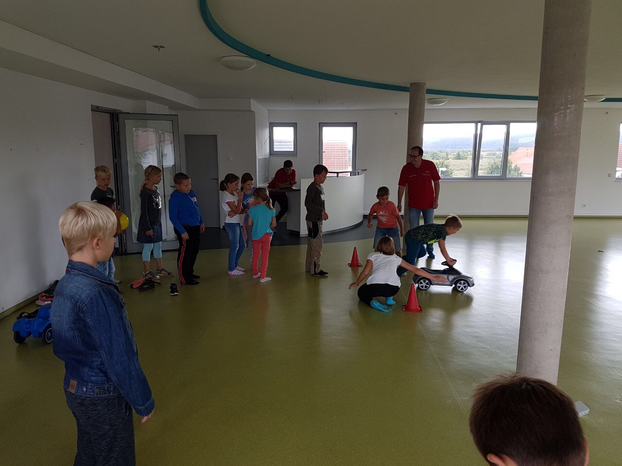 Die Olympiateilnehmer wurden in drei Teams aufgeteilt und jede Mannschaft musste neun verschiedene schweißtreibende Wettkämpfe absolvieren. Vom Handtaschenweitwurf über das BobbyCar-Parcour-Rennen bis hin zum Wiss-Quiz war für jeden etwas dabei. Über insgesamt drei Stunden erzielten die Mannschaften tolle Ergebnisse und so standen am Ende alle auf dem 1. Platz der Sparkassen Spieleolympiade 2017. Alle Athleten erhalten als Dankeschön für die Teilnahme eine eigens angefertigte Urkunde mit dem Gruppenfoto und der selbst gestalteten Olympiafahne.