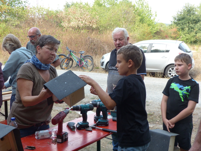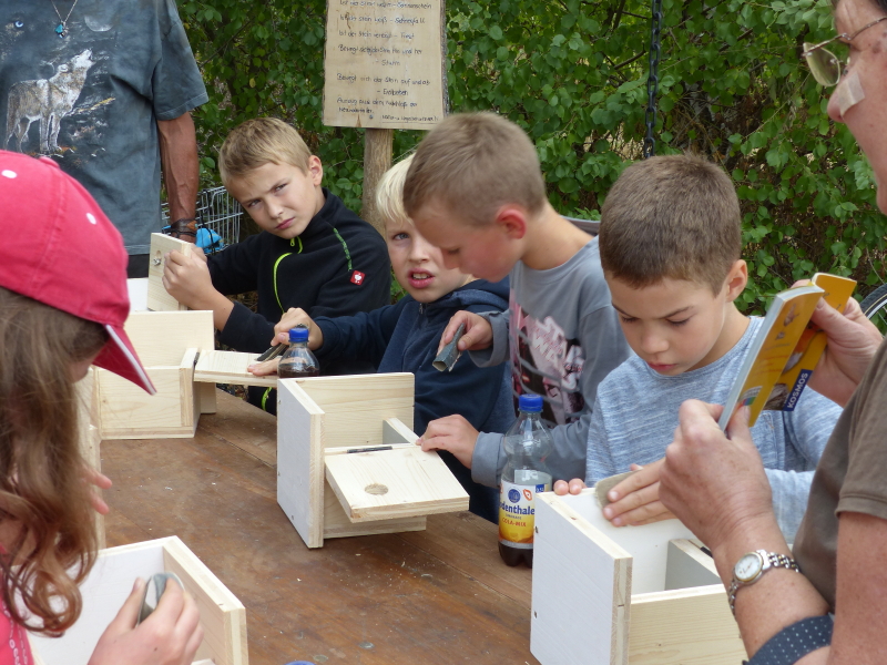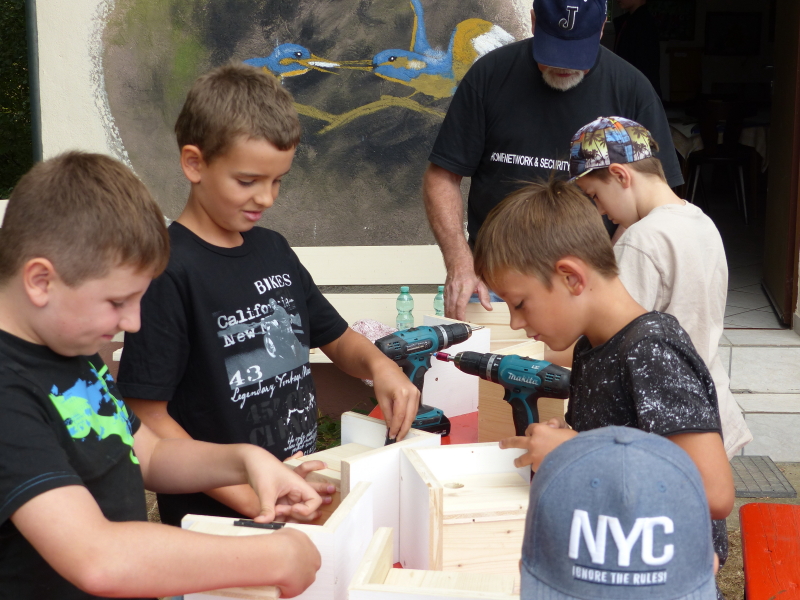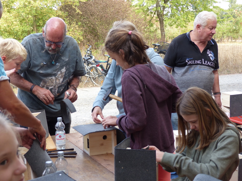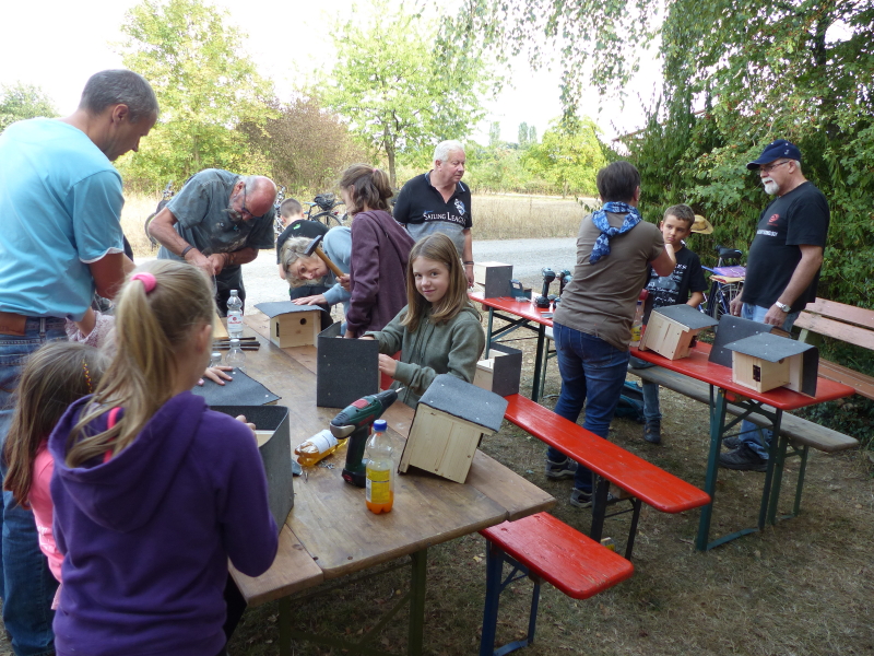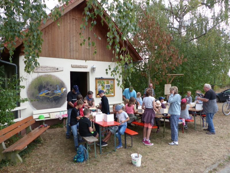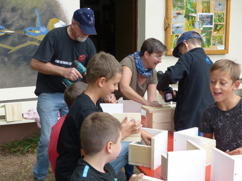 Bauen eines Vogel-Nistkastens, der dann von jedem Teilnehmer mitgenommen werden kann (Natur- und Vogelschutzverein Niedernberg e. V.)