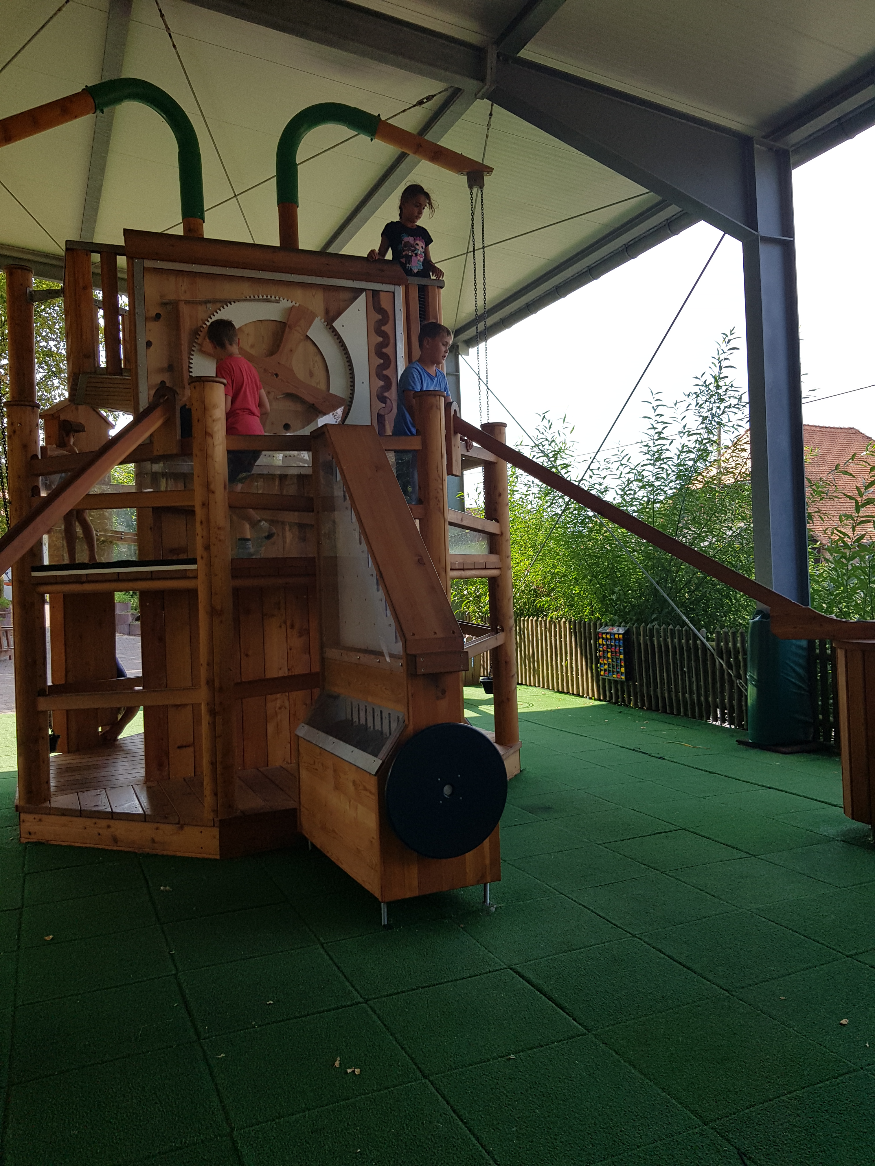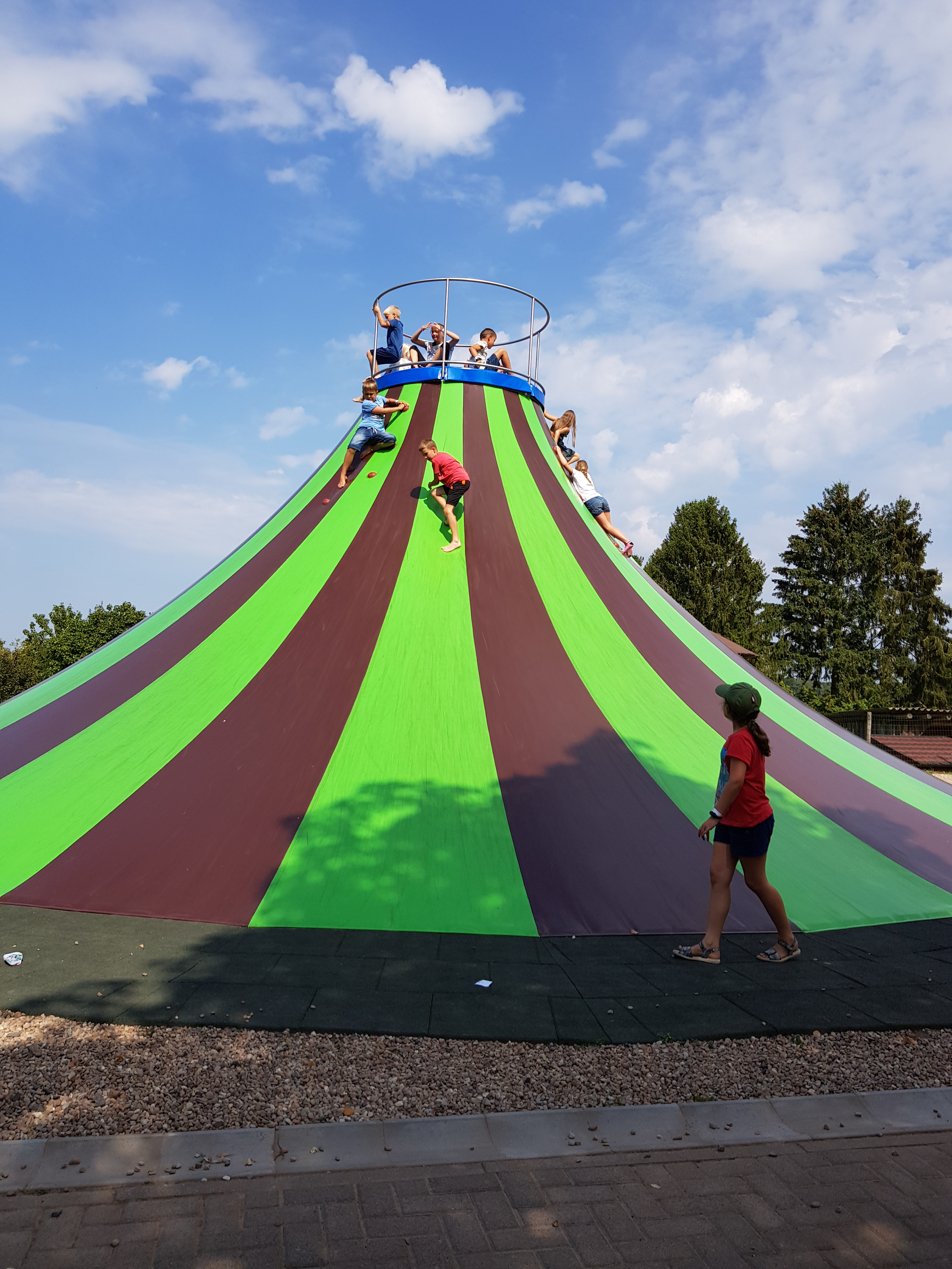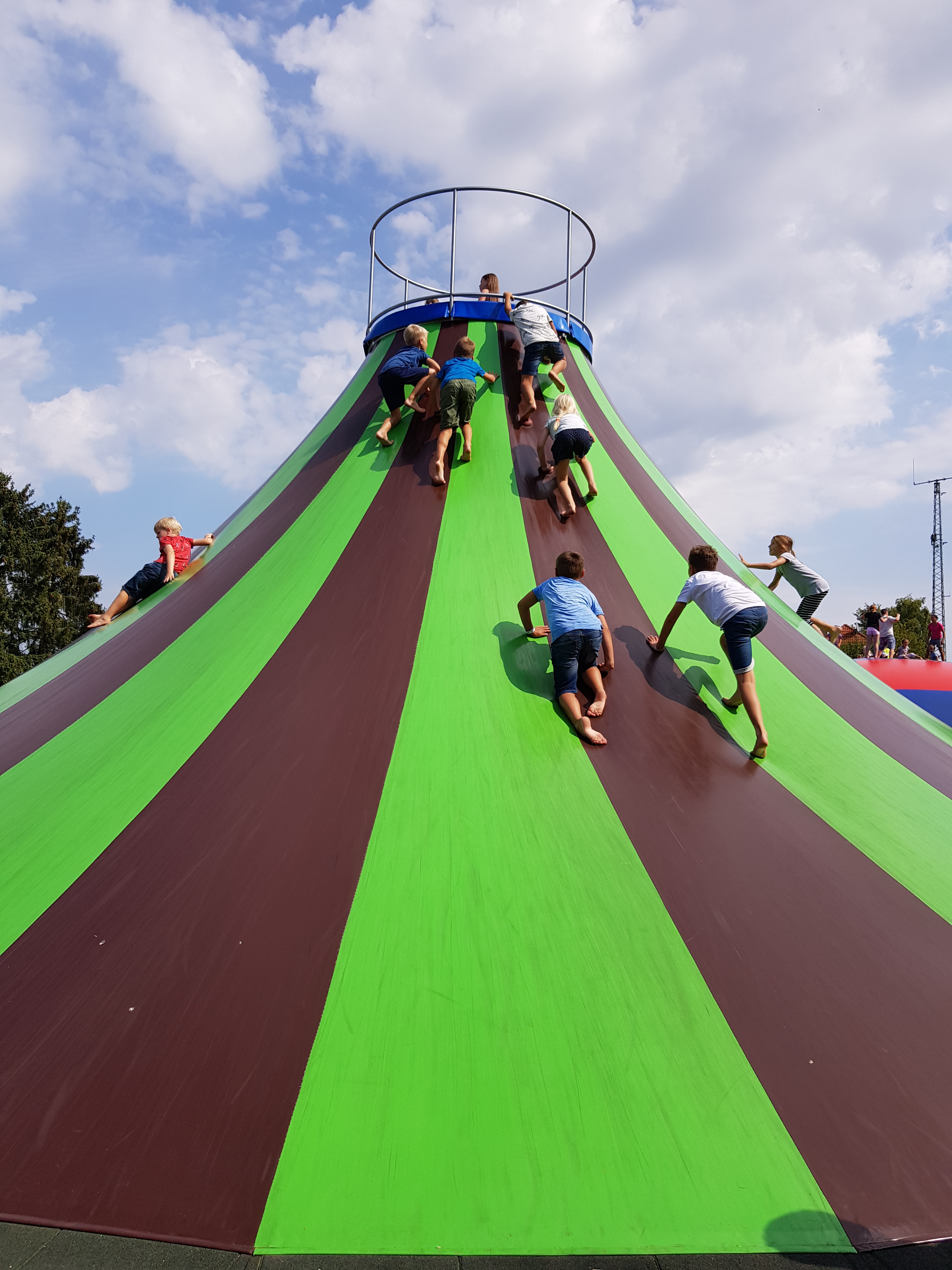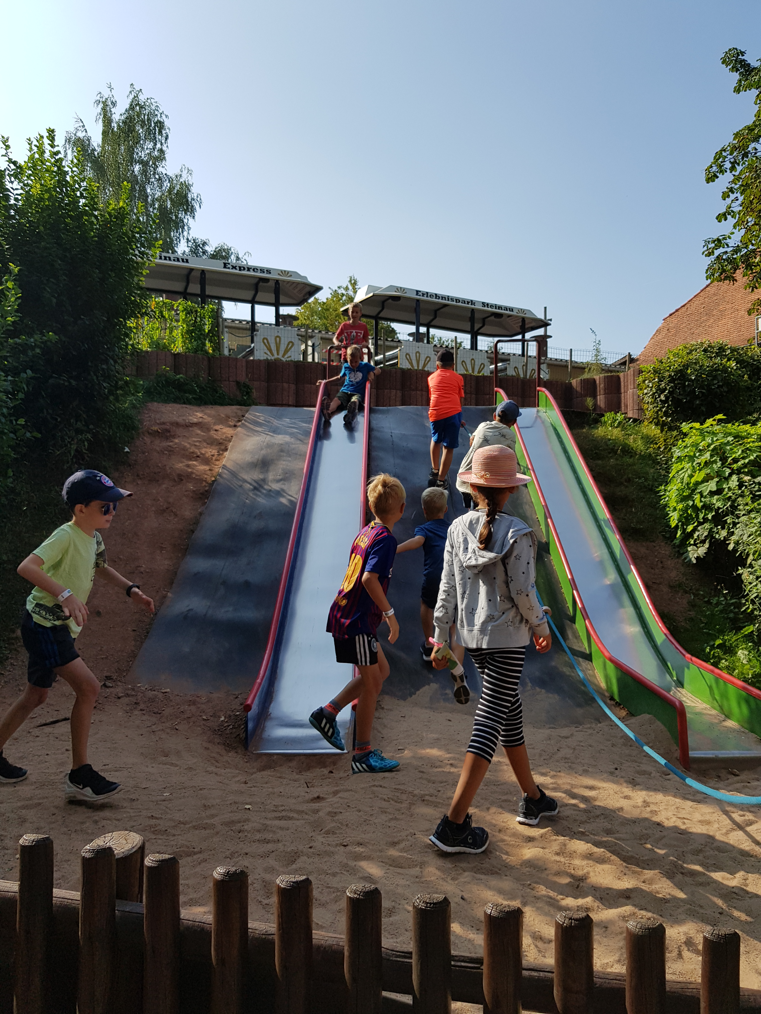 Bei den 6-7-jährigen Kindern war ein Höhepunkt die Wellenrutsche „...ich fand sie toll“ meinte Harro. Hüpfkissen, Fliegenpilz und Vogeltretbahn begeisterten aber auch.