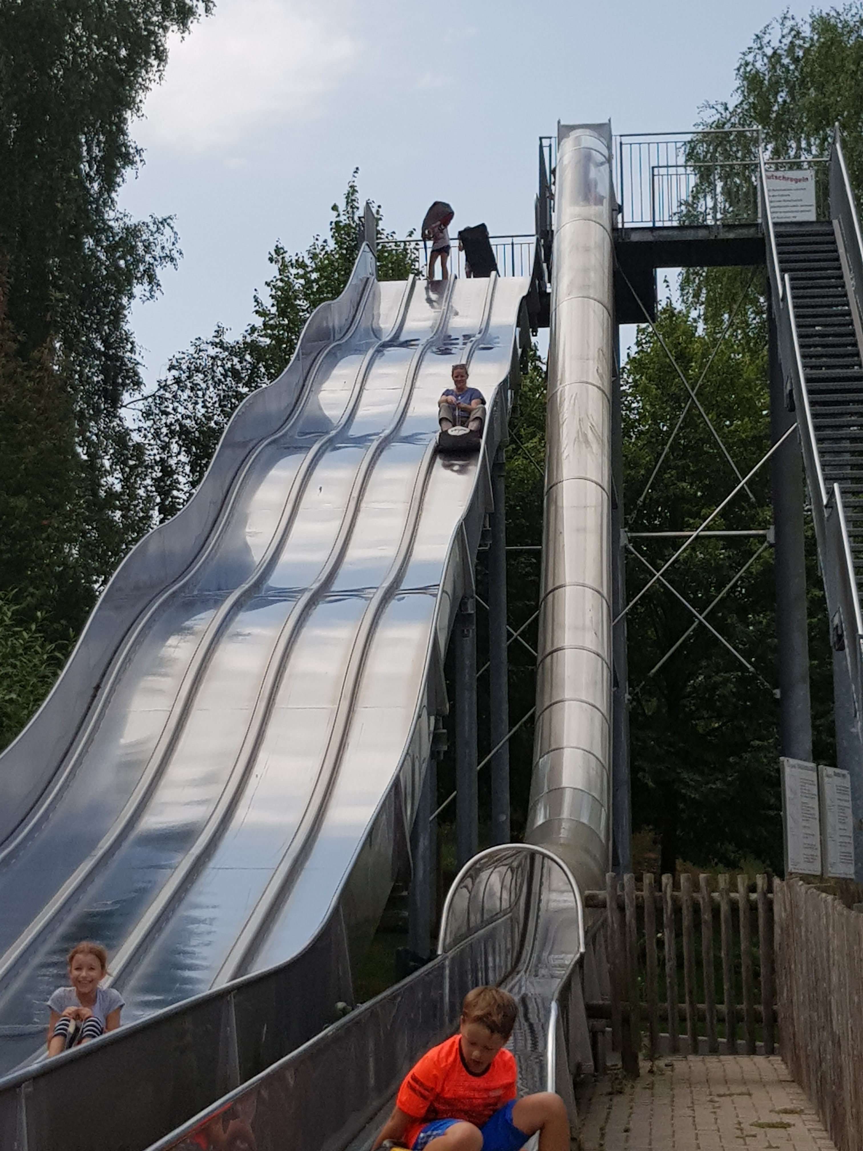 Wasserrutsche, Vogeltretbahn, Teppichrutsche und der Spielplatz mit dem riesengroßen Vulkan sorgten dafür, dass keine Langeweile aufkam.