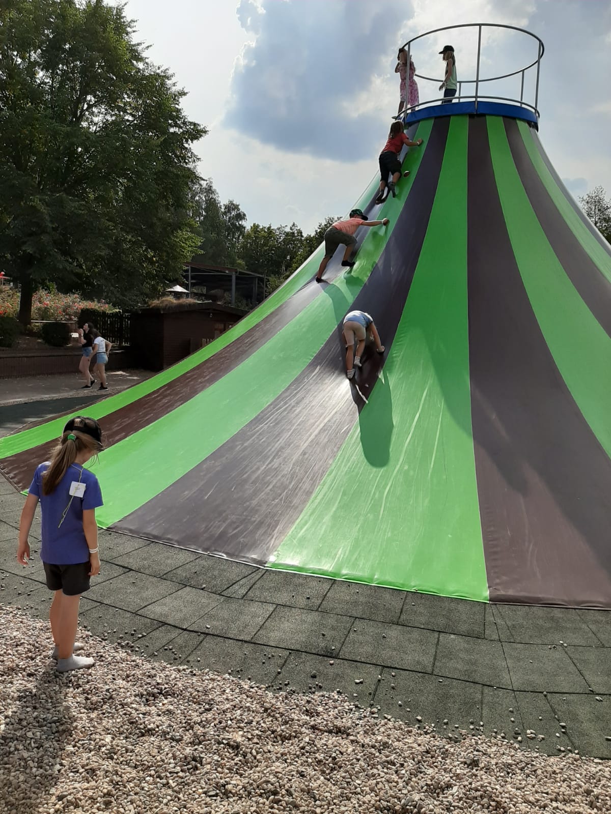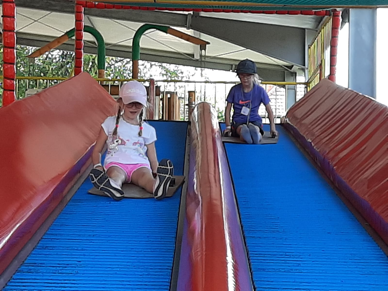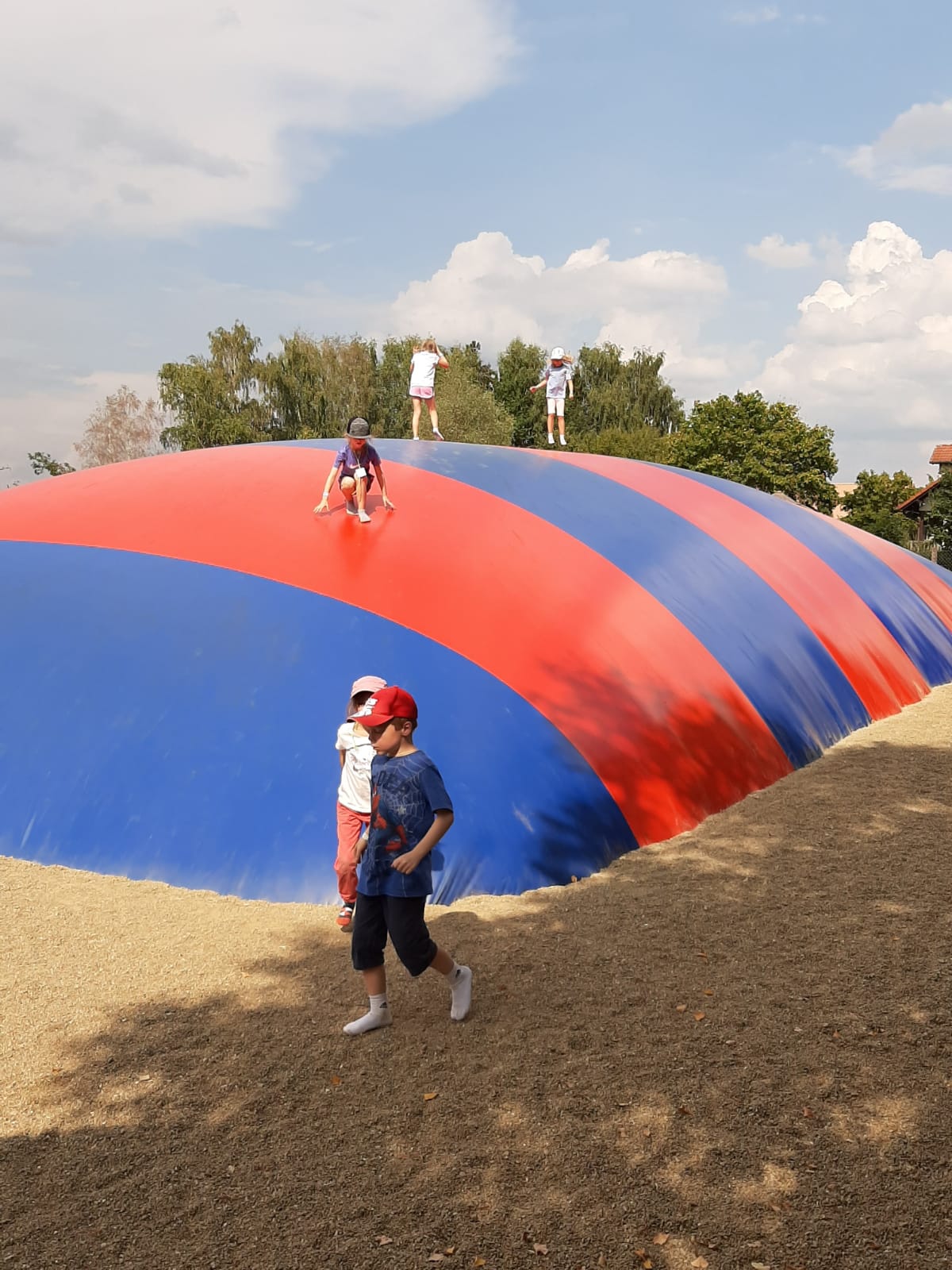 Bei den 6-7-jährigen Kindern war ein Höhepunkt die Wellenrutsche „...ich fand sie toll“ meinte Harro. Hüpfkissen, Fliegenpilz und Vogeltretbahn begeisterten aber auch.