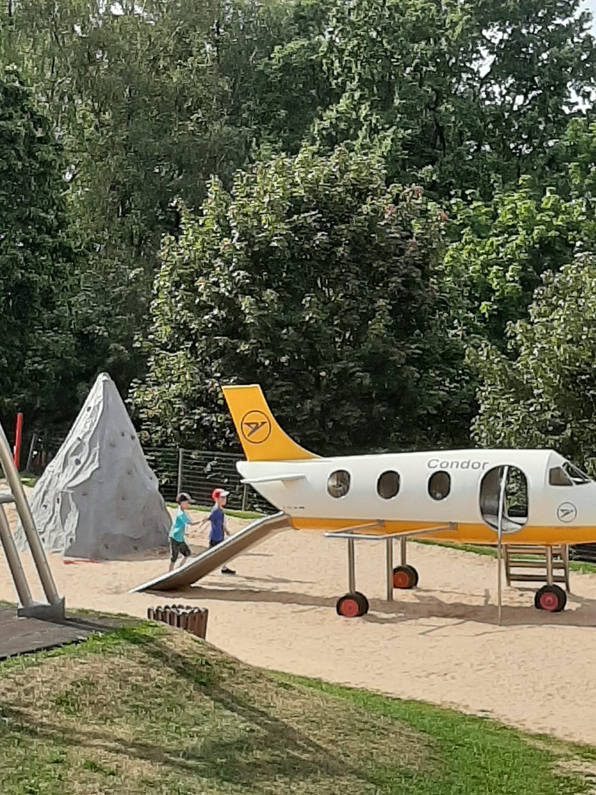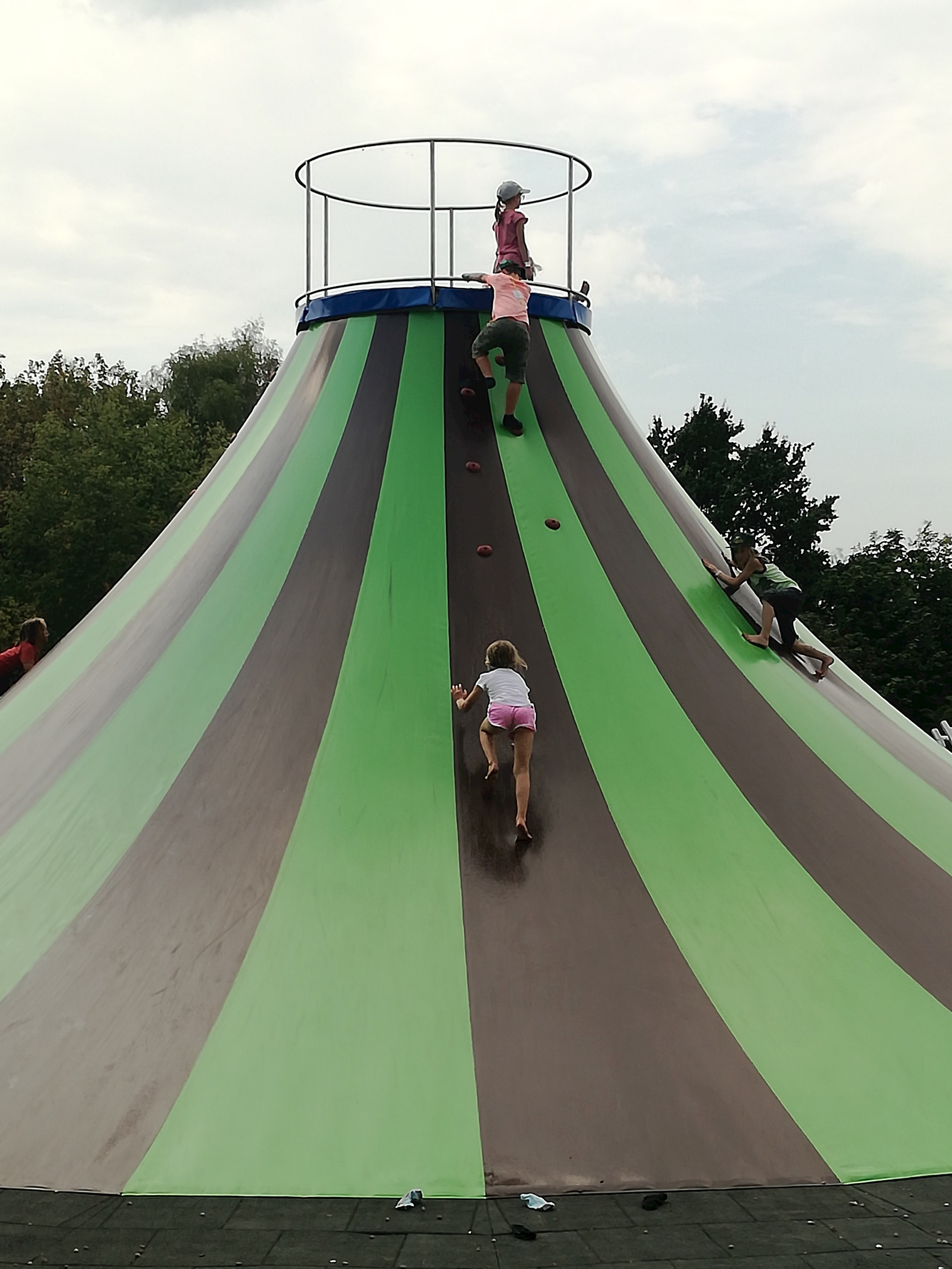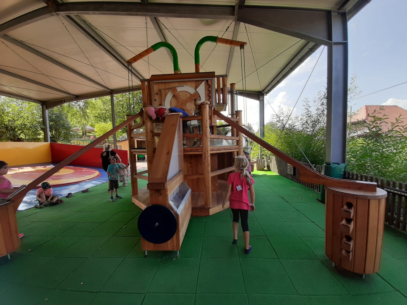 Bei den 6-7-jährigen Kindern war ein Höhepunkt die Wellenrutsche „...ich fand sie toll“ meinte Harro. Hüpfkissen, Fliegenpilz und Vogeltretbahn begeisterten aber auch.