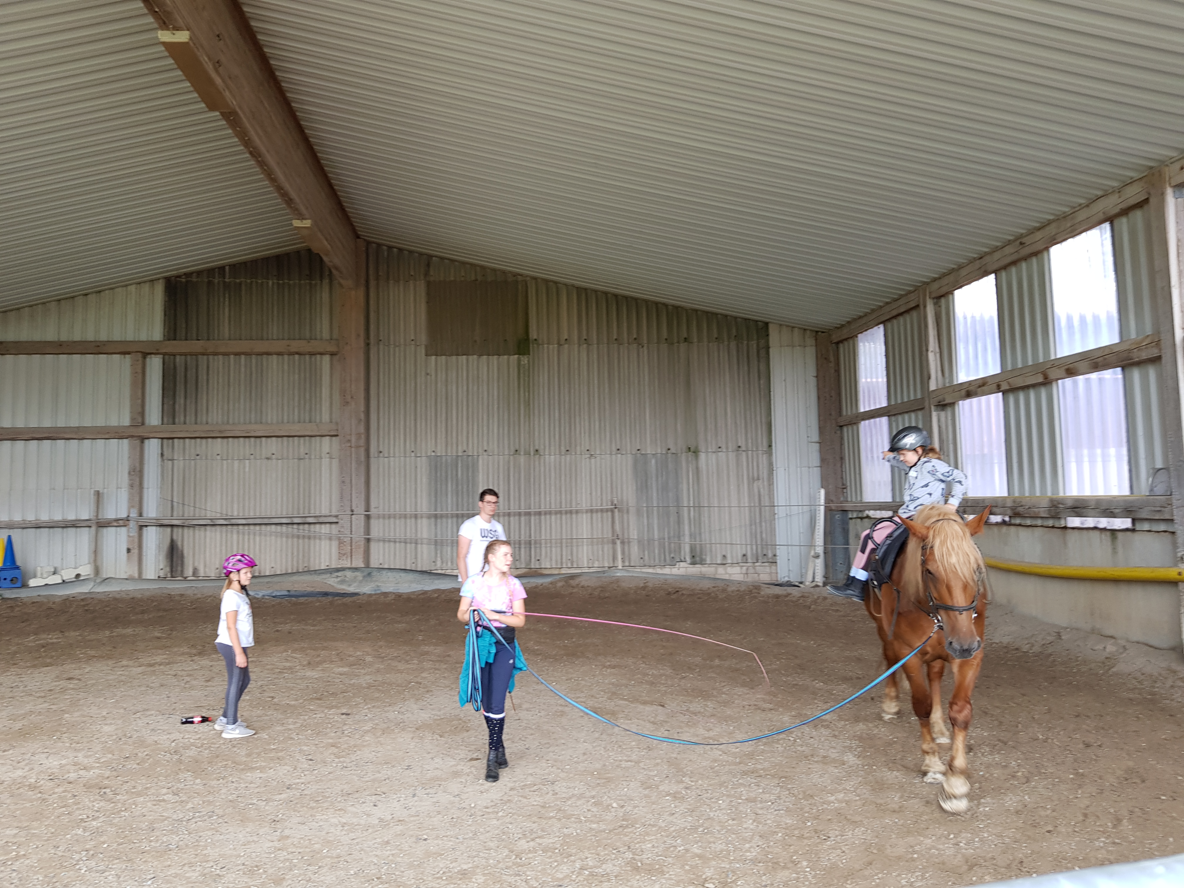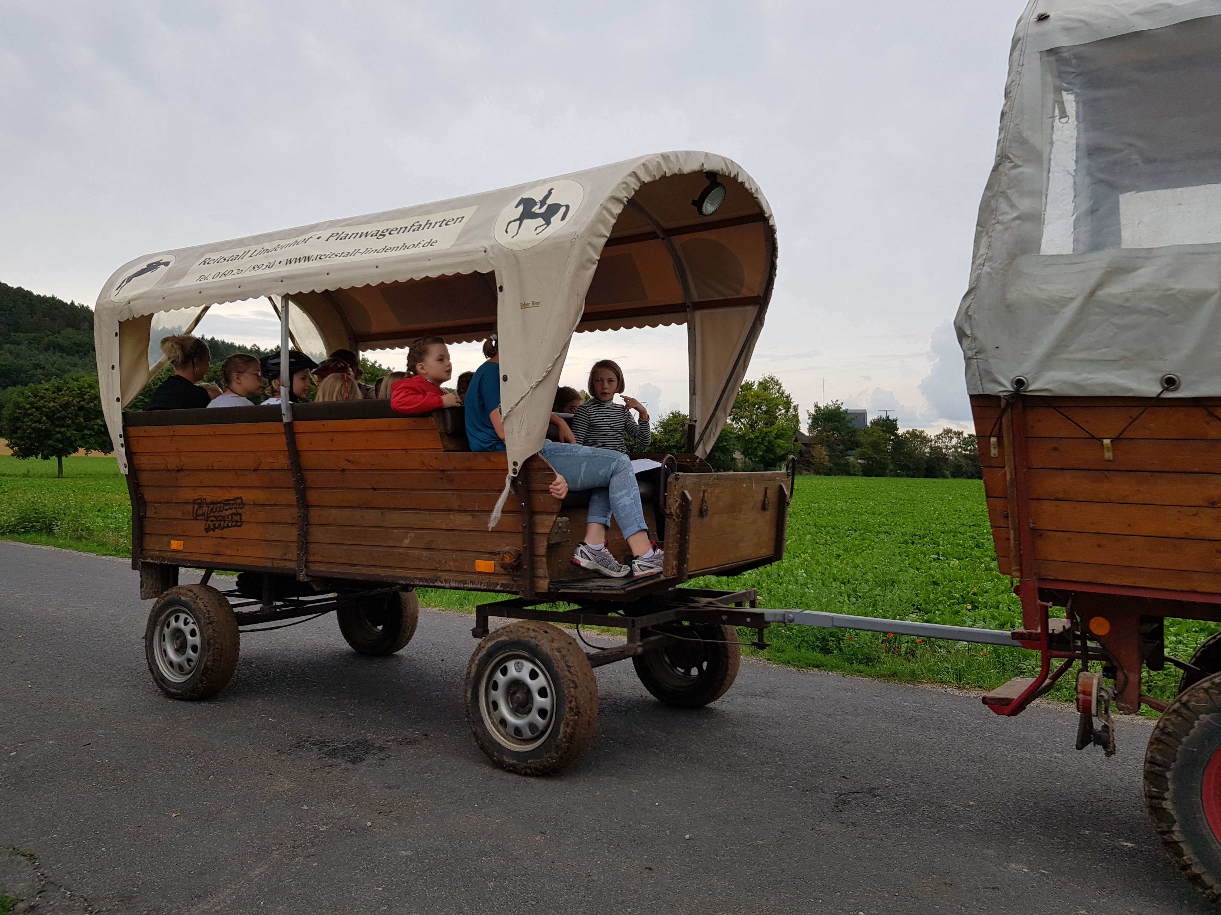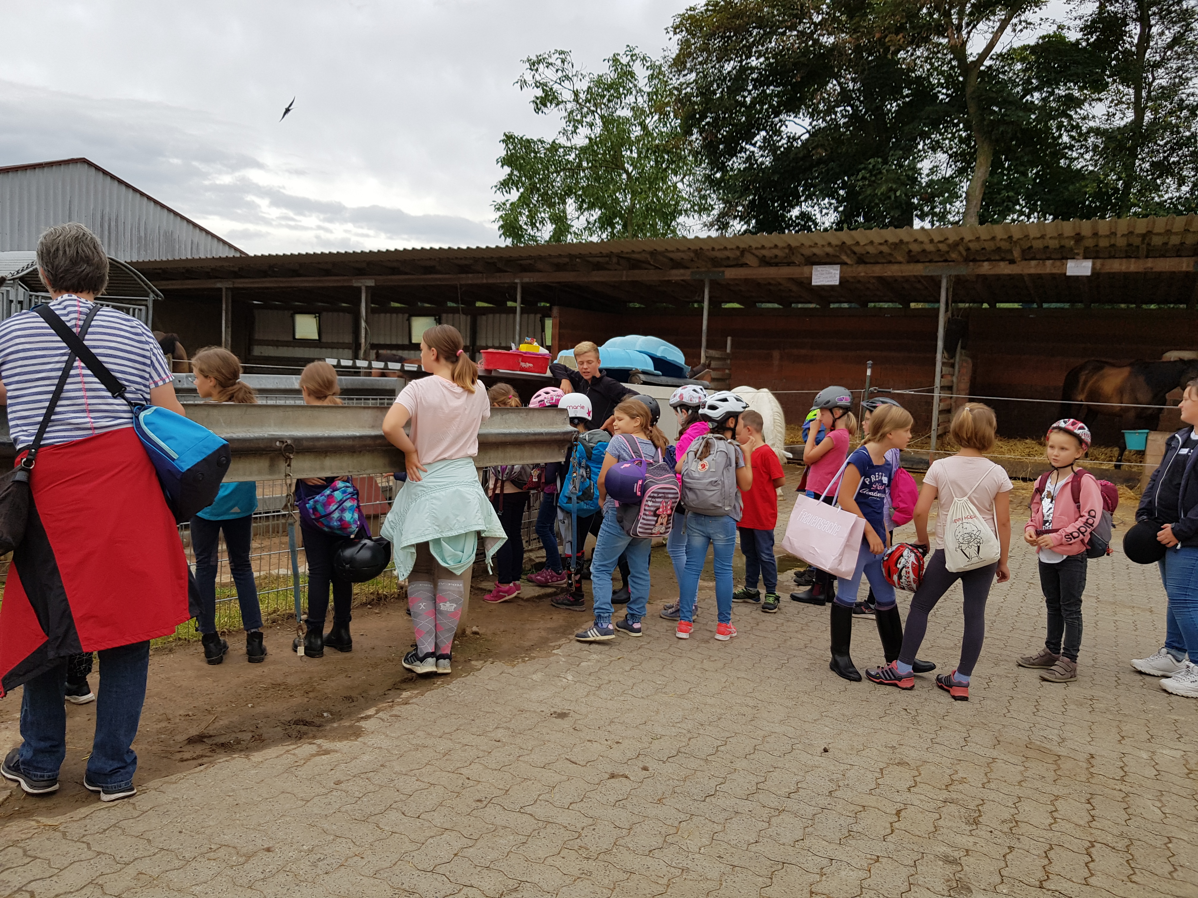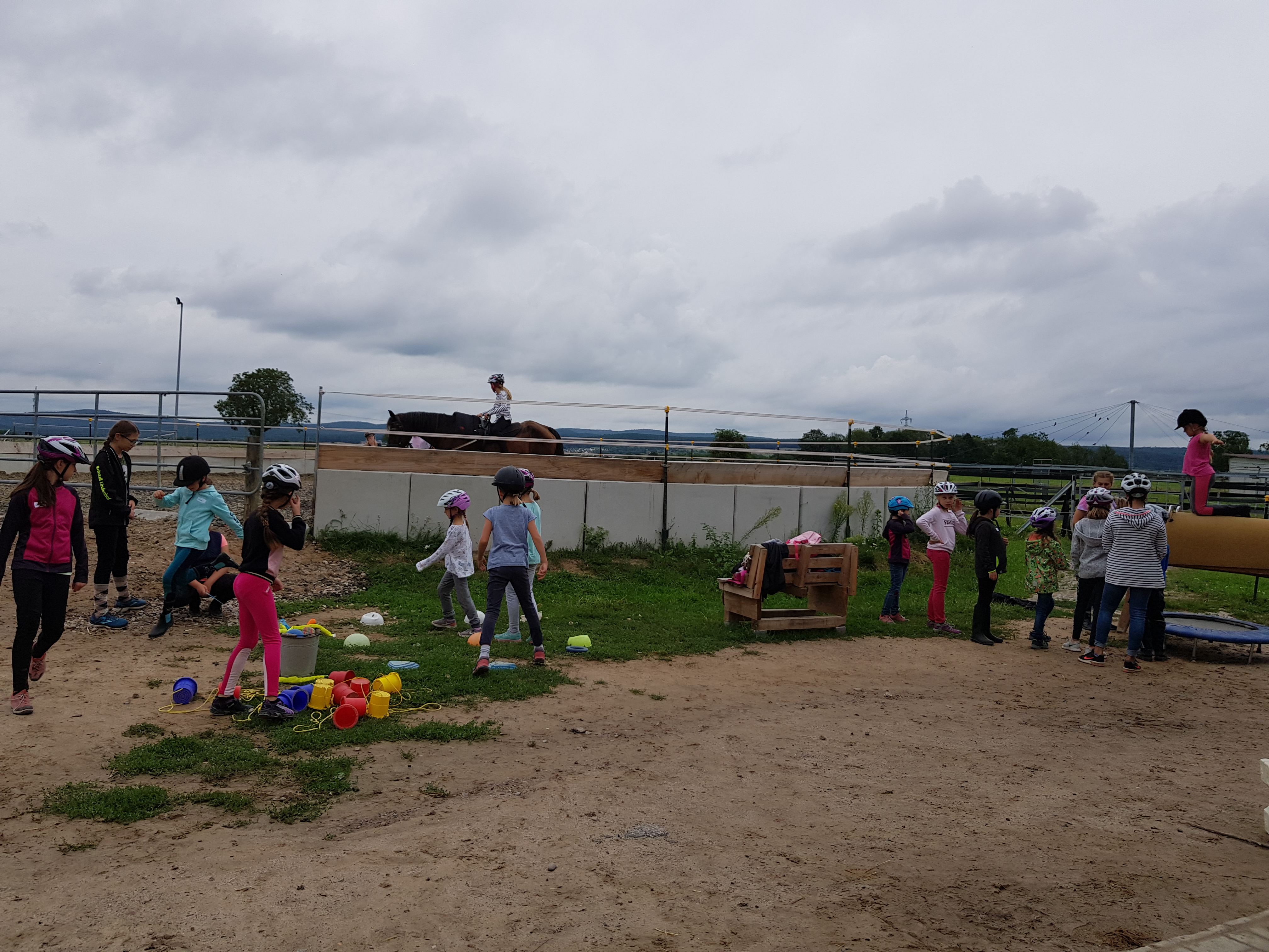 Am Mittwoch, den 07.08.2019, nahmen 111 Kinder an der Ferienspielgemeinschaftsveranstaltung der Brückengemeinden im Reitstall Lindenhof in Niedernberg teil. In fünf Gruppen lernten die Teilnehmer an verschiedenen Stationen den Reiterhof und die dort lebenden Tiere kennen, zu denen Pferde, Schweine, Hühner, Esel, Kühe, Schafe, Enten und Hasen zählen. Zu jedem dieser Tiere haben die Teilnehmer Interessantes erfahren. Außerdem wurden die Kinder geschminkt und es gab Brote zur Stärkung. Die Teilnehmer durften die Pferde putzen, die Tiere füttern und ein Ritt auf den Pferden durfte natürlich auch nicht fehlen. Bei einer Planwagenfahrt um den Lindenhof herum konnten sich die Kinder etwas ausruhen und den Blick auf die Felder genießen.