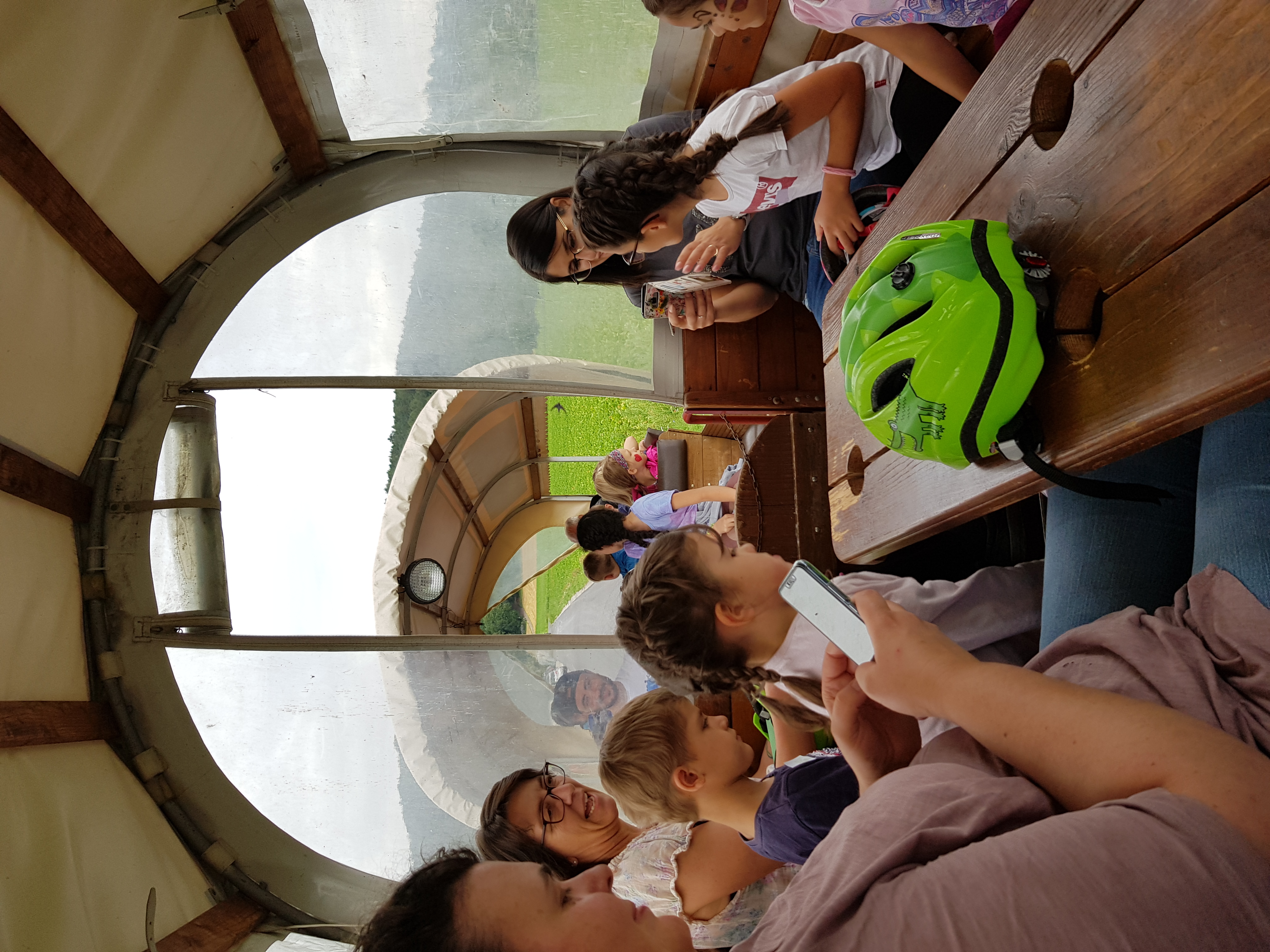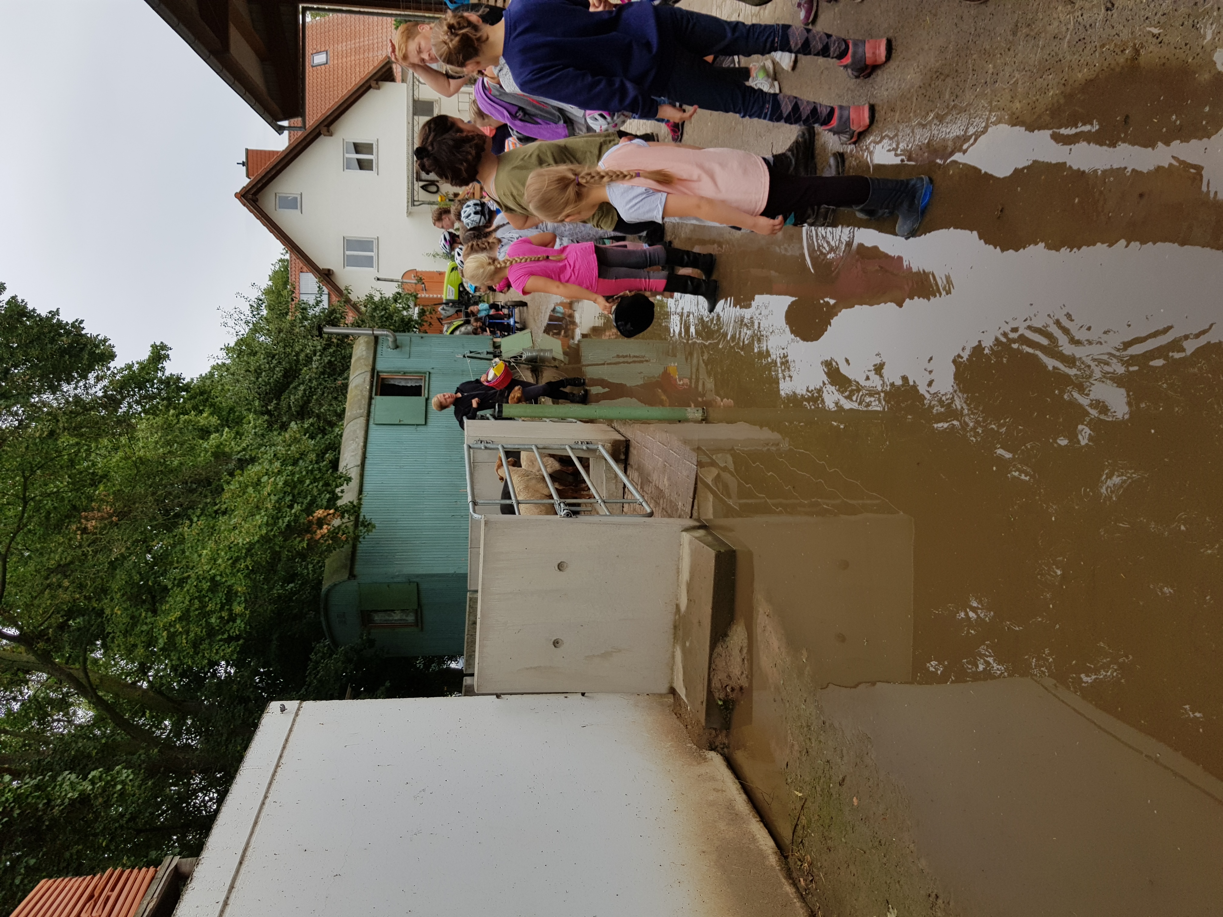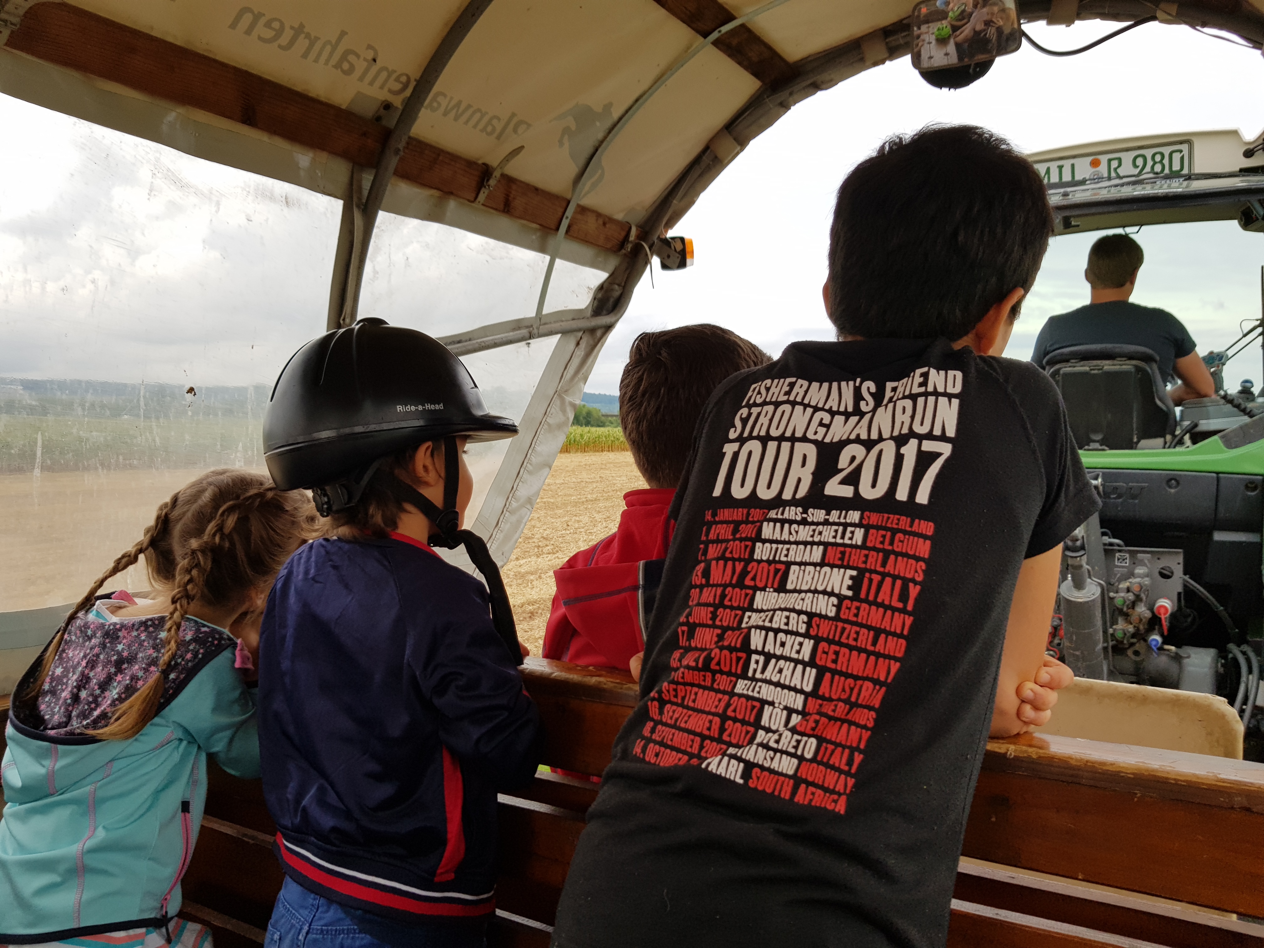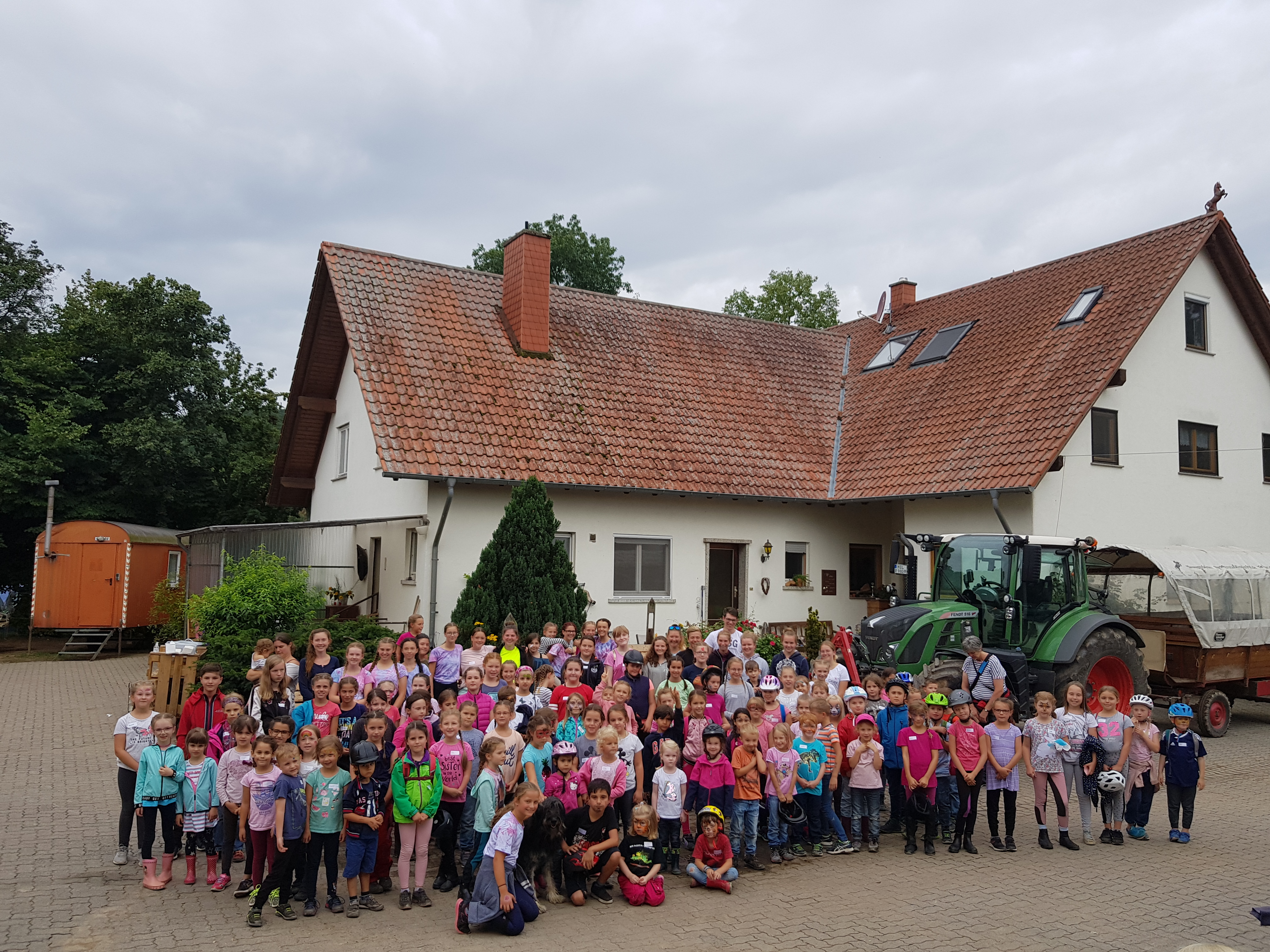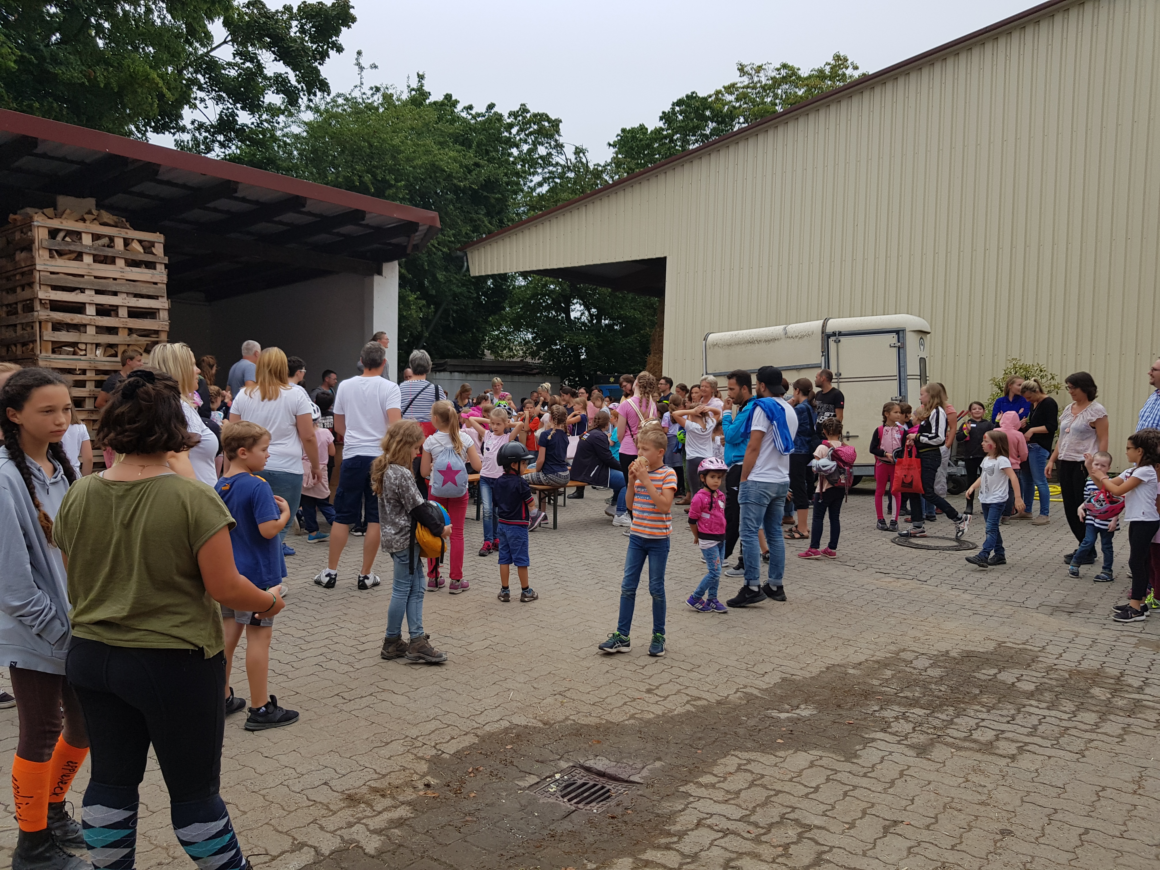 Am Mittwoch, den 07.08.2019, nahmen 111 Kinder an der Ferienspielgemeinschaftsveranstaltung der Brückengemeinden im Reitstall Lindenhof in Niedernberg teil. In fünf Gruppen lernten die Teilnehmer an verschiedenen Stationen den Reiterhof und die dort lebenden Tiere kennen, zu denen Pferde, Schweine, Hühner, Esel, Kühe, Schafe, Enten und Hasen zählen. Zu jedem dieser Tiere haben die Teilnehmer Interessantes erfahren. Außerdem wurden die Kinder geschminkt und es gab Brote zur Stärkung. Die Teilnehmer durften die Pferde putzen, die Tiere füttern und ein Ritt auf den Pferden durfte natürlich auch nicht fehlen. Bei einer Planwagenfahrt um den Lindenhof herum konnten sich die Kinder etwas ausruhen und den Blick auf die Felder genießen.