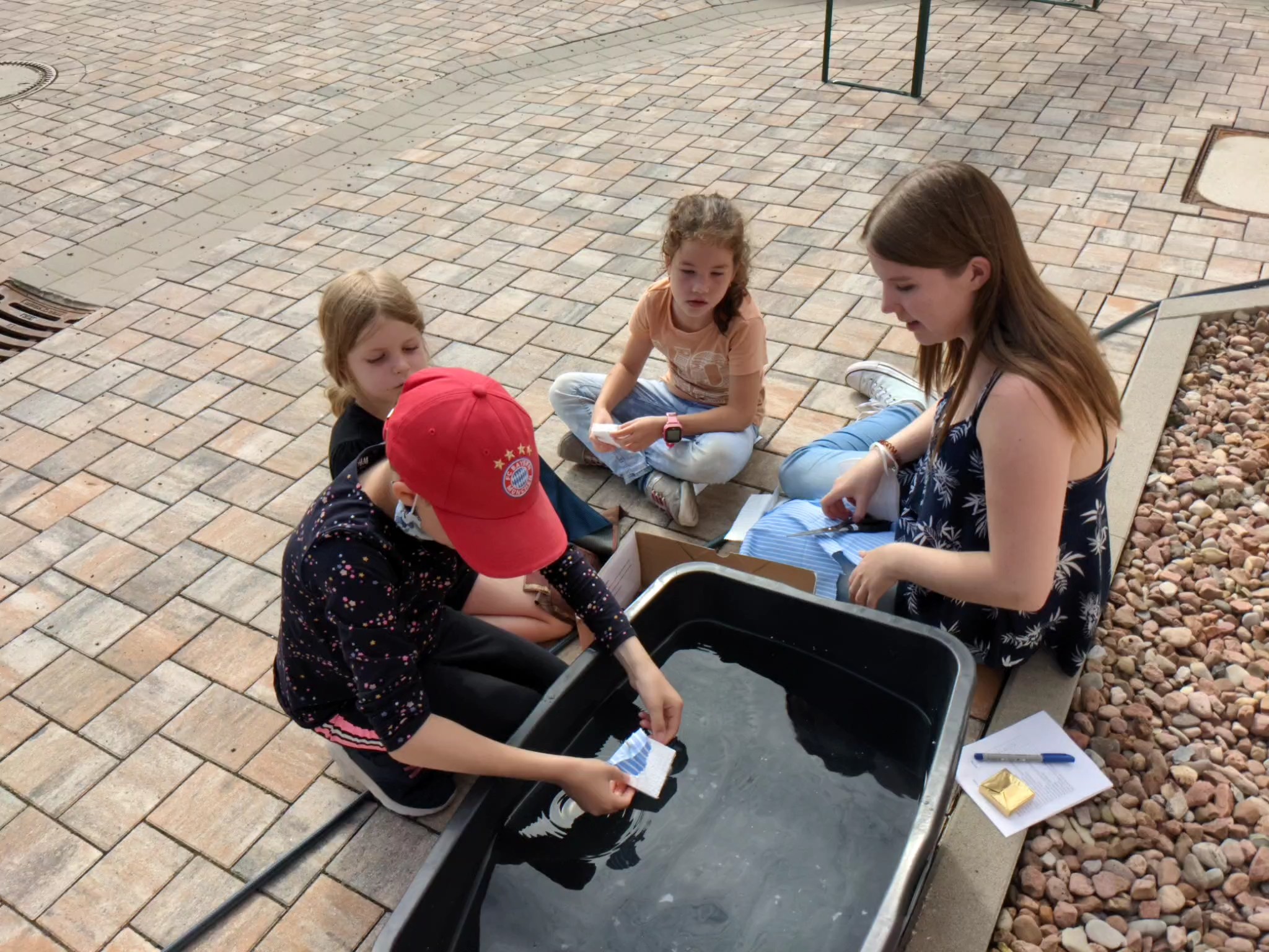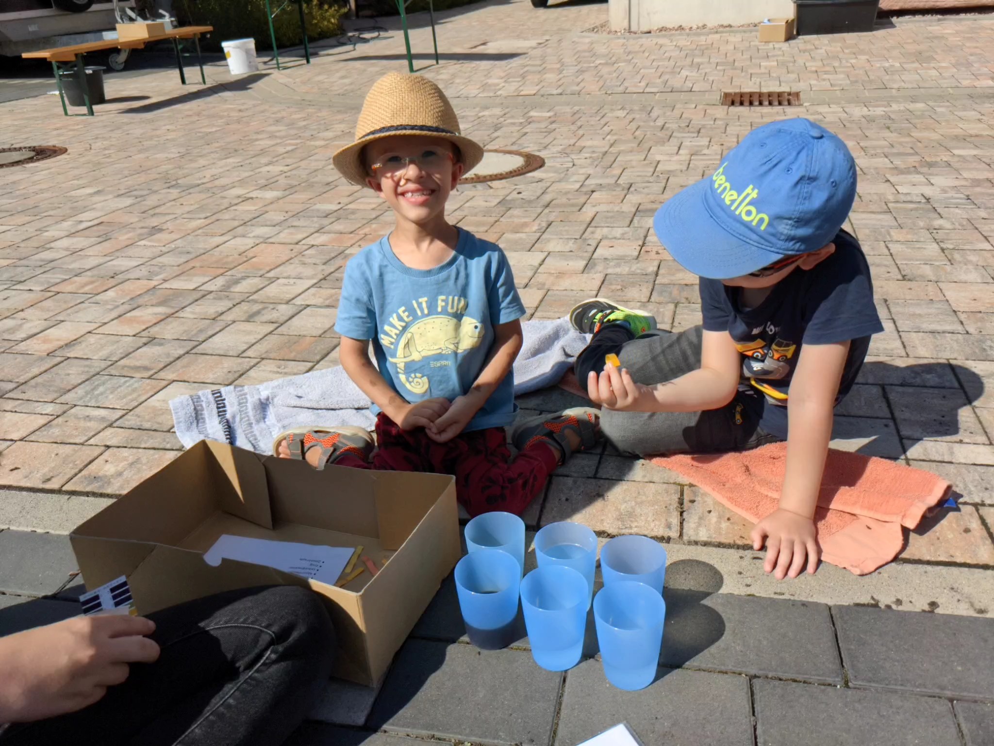 An den beiden Ferienspielaktionen „Wasser? Wasser!“, welche am 23.08.2021 bzw. 25.08.2021 stattfanden nahmen je Veranstaltung zehn bzw. elf Kinder teil. Organisiert und durchgeführt wurde die Veranstaltung von den Auszubildenden der Gemeinde Niedernberg. Durch spannende Experimente lernten die Kinder das Wasser auf verschiedene Art und Weise kennen. Insgesamt wurden über den gesamten Rathaushof verteilt 20 Stationen mit verschiedenen Experimenten rund um das Thema „Wasser“ aufgebaut. Besonders toll ist die Station „Geheimschrift“ bei den Kindern angekommen. Hier konnten diese eine geheime Botschaft auf einem nassen Blatt Papier hinterlassen, welche verschwand sobald das Papier getrocknet war. Erst wenn das Blatt wieder nass wurde erschien die Nachricht wieder. Viele Experimente inklusive Material wurden uns vom Wasserwirtschaftsamt Aschaffenburg (WWA) in Form einer „Schatzkiste“ zur Verfügung gestellt. Durch das Modell vom WWA lernten die Kinder den Wasserkreislauf kennen. Es verdeutlichte kurz und knapp, wie das Trinkwasser in unseren Wasserhahn gelangt. Zum Abschied erhielte jeder noch ein Wasser-Tierchen, welche uns auch vom WWA zu Verfügung gestellt wurden.