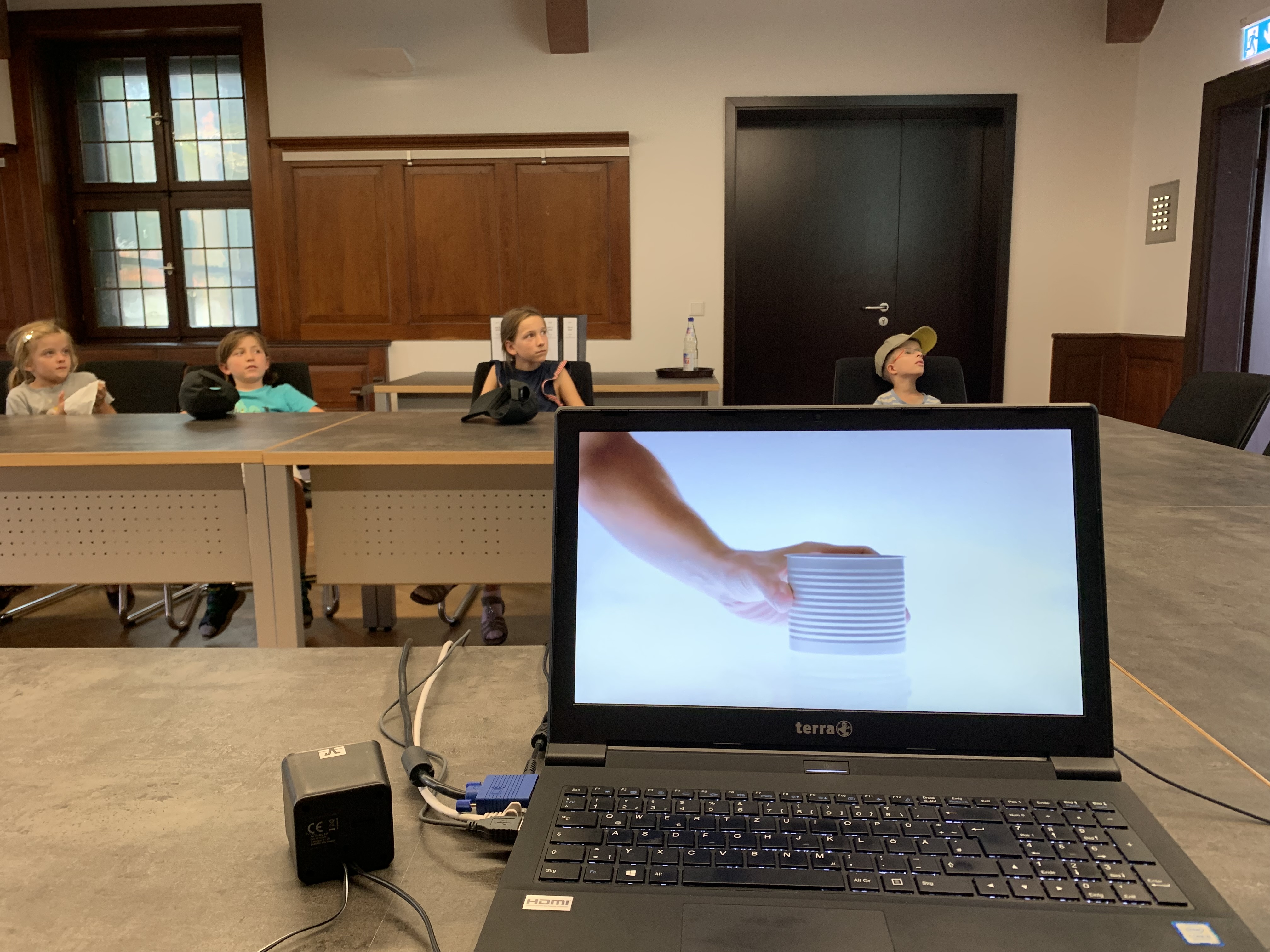 Danach lernten sie durch kurze Filme wie beispielsweise Aluminium und Glas recycelt wird. Das gelernte Wissen durch die Filme konnten sie danach mit einem Müllsortierspiel unter Beweis stellen.