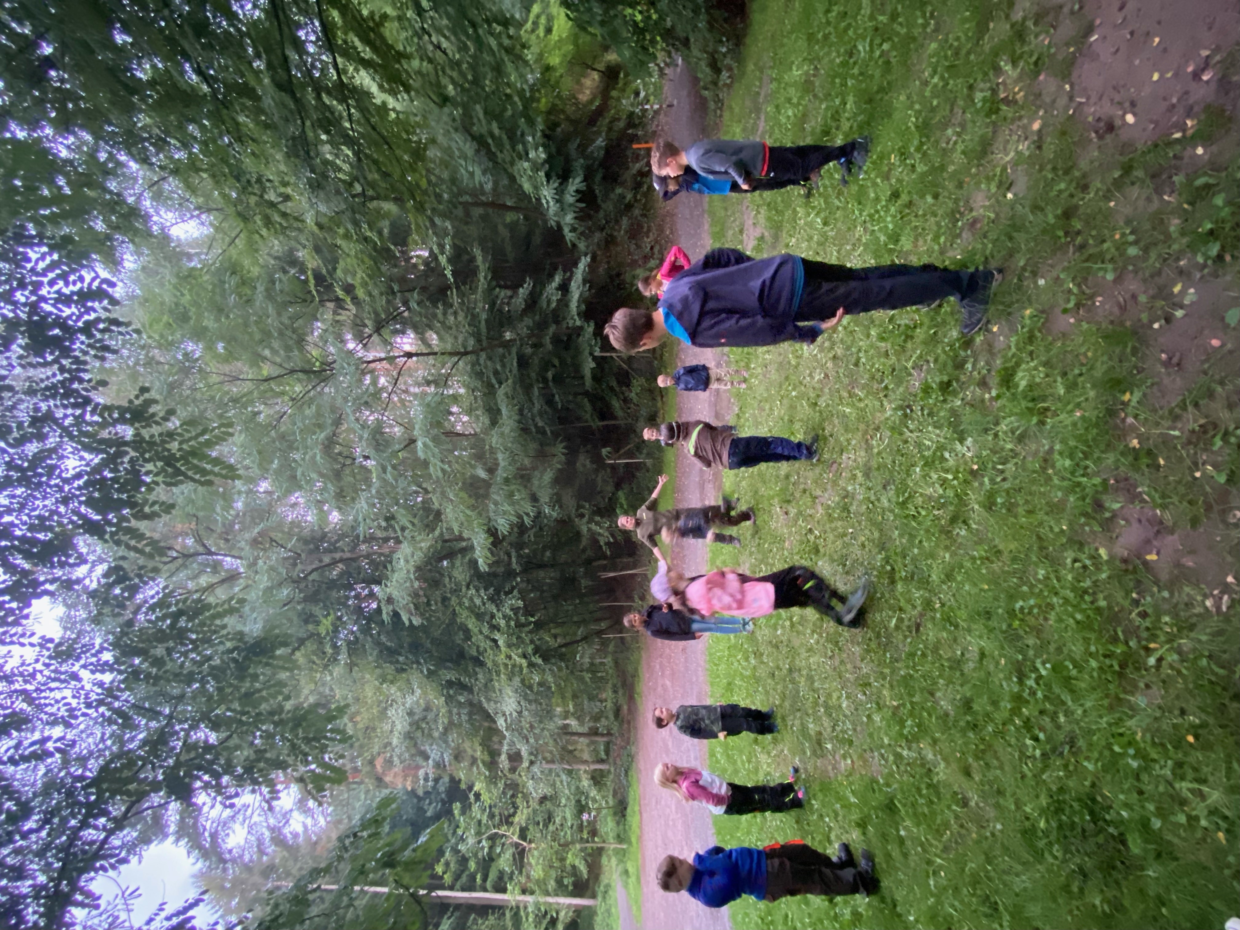 Nach einer kurzen Vorstellungsrunde fing es mit vielen Informationen rund um die bei uns heimischen Fledermäuse an. Nach einer kleinen Essens-Pause durften die Kinder dann nach dem Spiel „1,2 oder 3, letzte Chance vorbei“ ihr Wissen zu den Fledermäusen beweisen. Auch mit dem Spiel „Fledermaus und Motten“ konnte je ein Kind als Fledermaus mit Augenklappe zwei andere Kinder in einem Kreis nur mit Hilfe von Geräuschen fangen und sich so in das Leben einer Fledermaus mit Ultraschallortung hineinversetzen. Als es anfing zu dämmern ging es zu Fuß vom Grillplatz mit einem Fledermausdetektor auf die Suche nach Fledermäusen im Niedernberger Wald, wo wir auch nach kurzer Zeit drei Fledermäuse zu Gesicht bekamen. Nach einer abschließenden Feedbackrunde war es auch schon vorbei. Das Feedback war sehr positiv, alle waren total begeistert. Herzlichen Dank an Frau Weimer, die die interessanten Stunden mit uns durchführte!