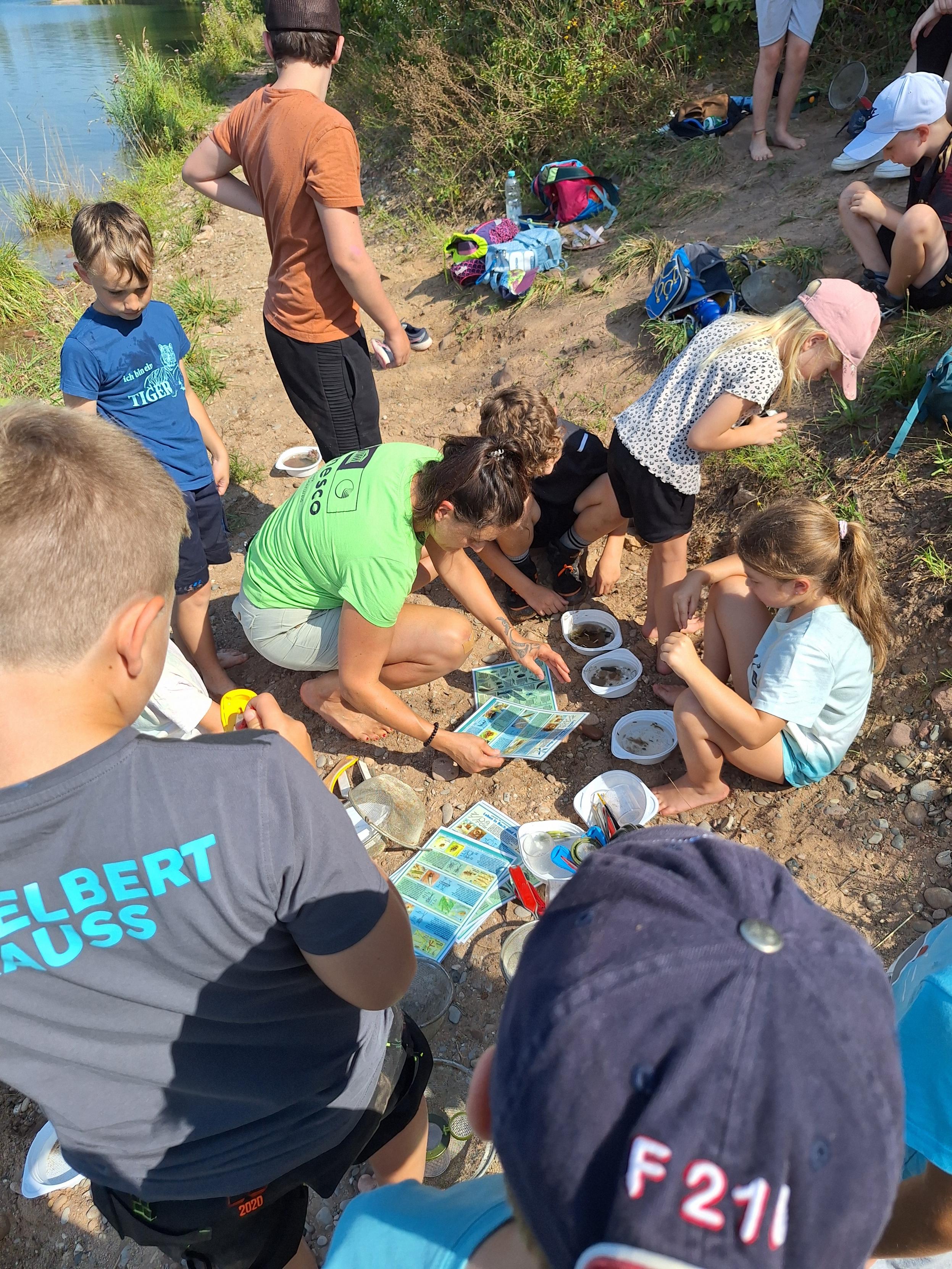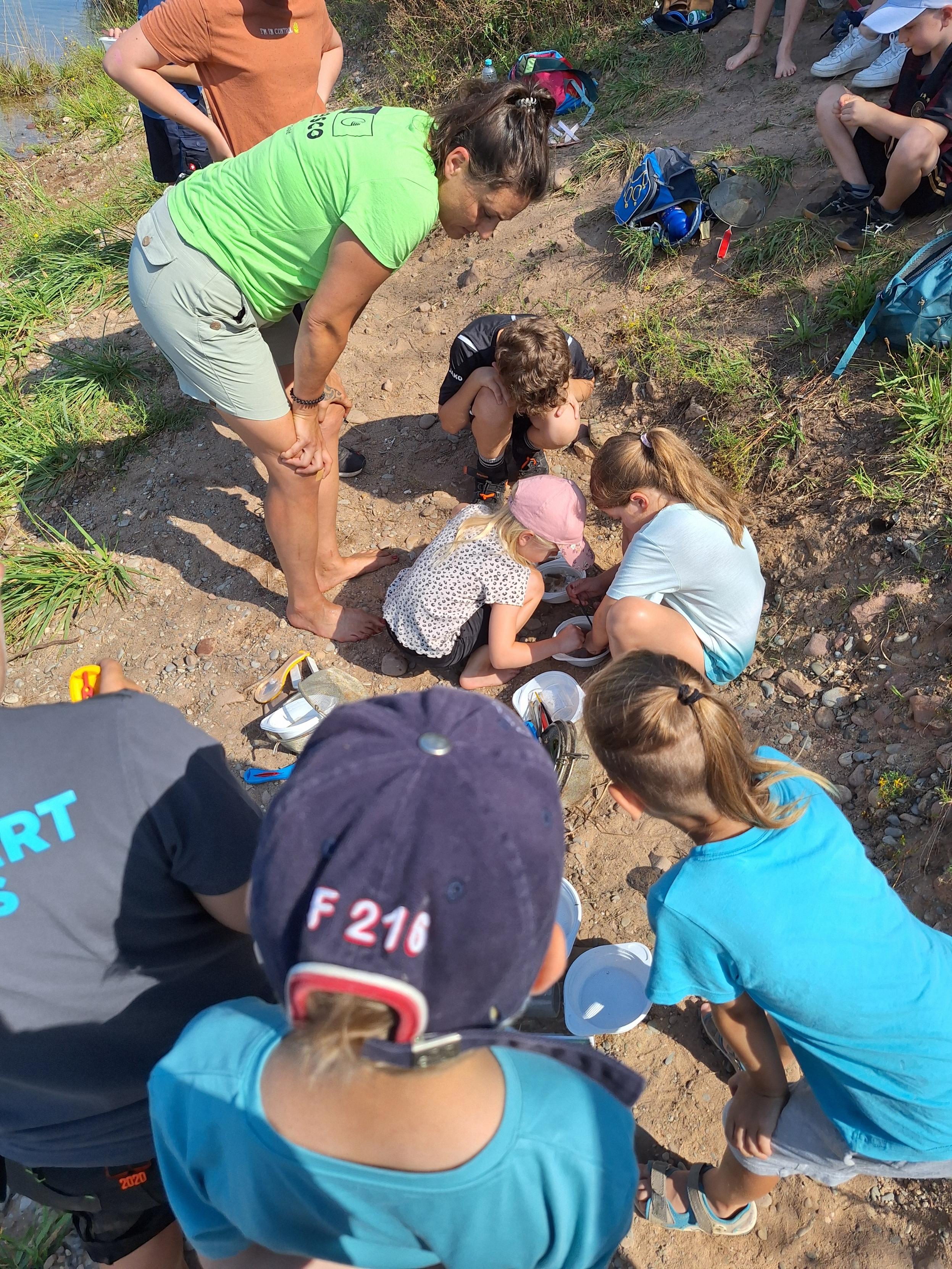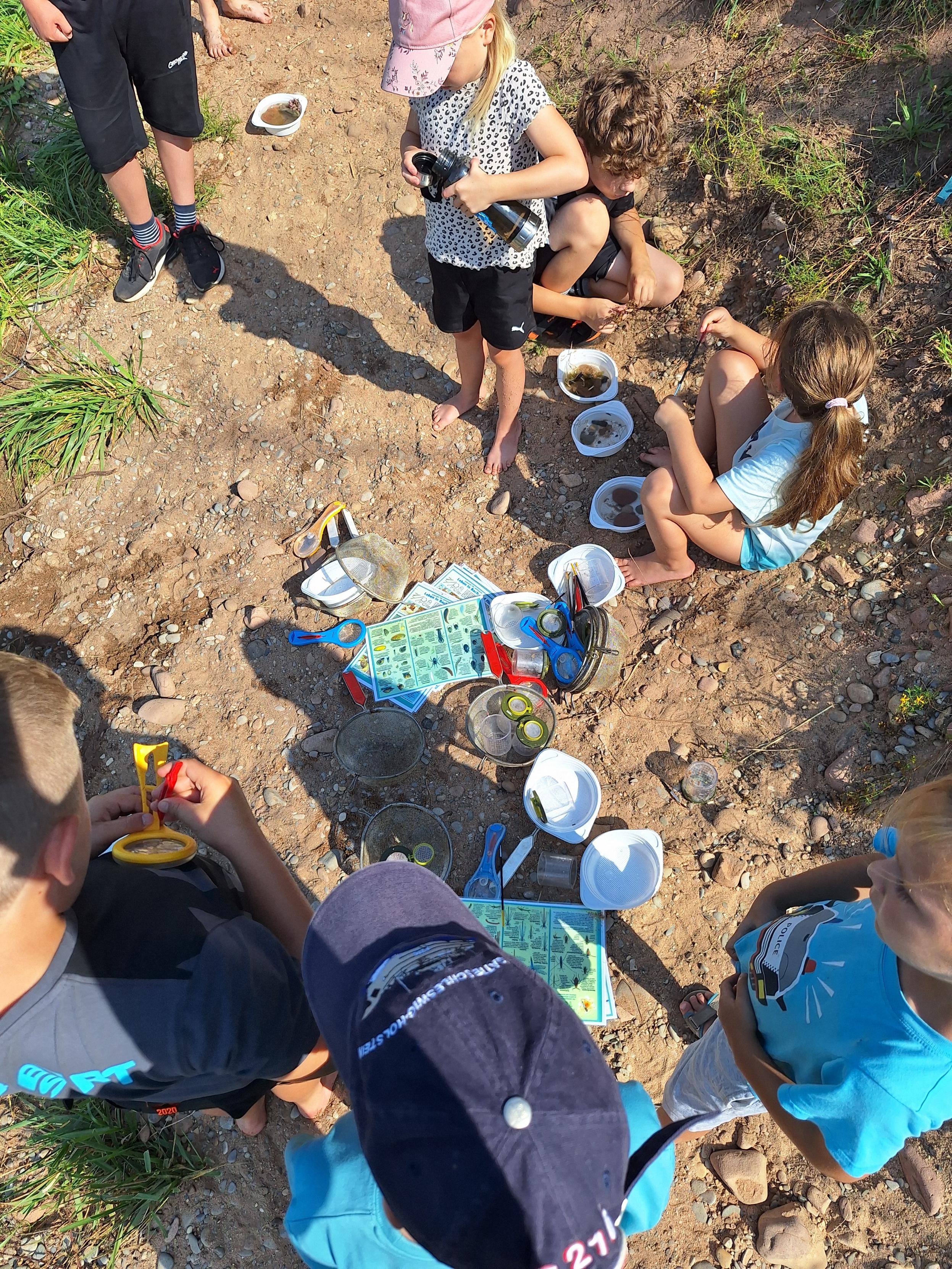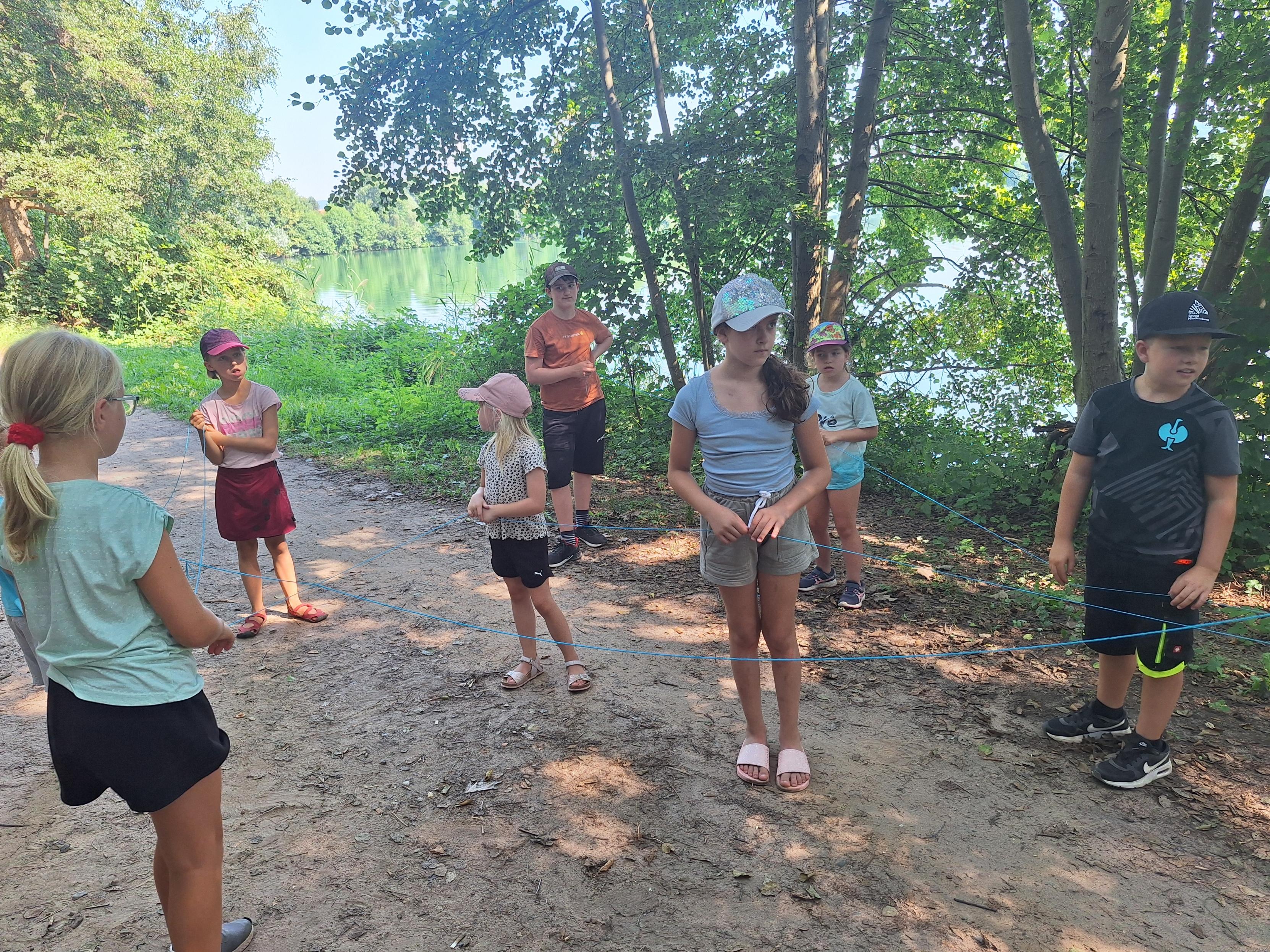 Am See angekommen haben die Kinder bei einer Runde „Naseweis“ die Wald- und Seebewohner besser kennengelernt. Danach ging es auch schon ab ins Wasser, wo mit Sieb und Lupendose am Ufer nach kleinen Tierchen gesucht wurde. Nach einer kleinen Picknick-Pause durften die Kinder viele interessante Spiele wie „Nahrungsnetz“, „Frösche und Fliegen“ und „Pflanzen-Memory“ spielen um so die örtlichen Wald- und Seenbewohner besser zu verstehen.Dann ging es auch schon wieder Richtung Parkplatz der Hans-Herrmann-Halle, wo die Eltern schon auf die Kinder warteten. Nach einer anschließenden Feedbackrunde war es auch schon vorbei. Das Feedback war sehr positiv, allen hat es viel Spaß gemacht.