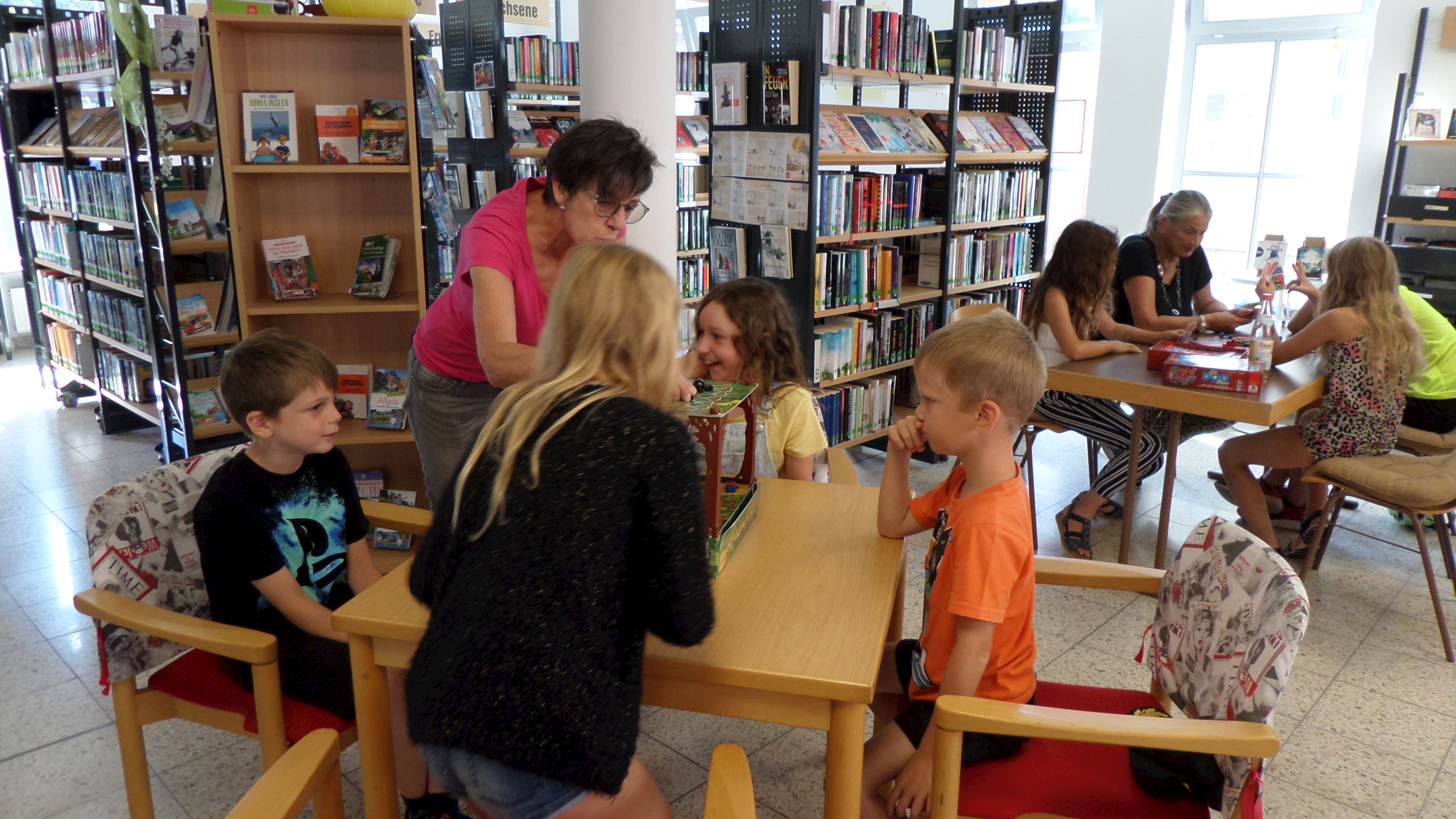 Am 28.08. trafen sich um 10 Uhr elf Kinder und vier Bücherei-Mitarbeiterinnen in der angenehm kühlen Bücherei zu den Ferienspielen. Die Kinder konnten aus dem großen Fundus der Bücherei Spiele auswählen. Schnell fanden sich kleine Grüppchen zusammen, die viel Spaß beim Spielen und Teil beim Erlernen neuer Brettspiele hatten.