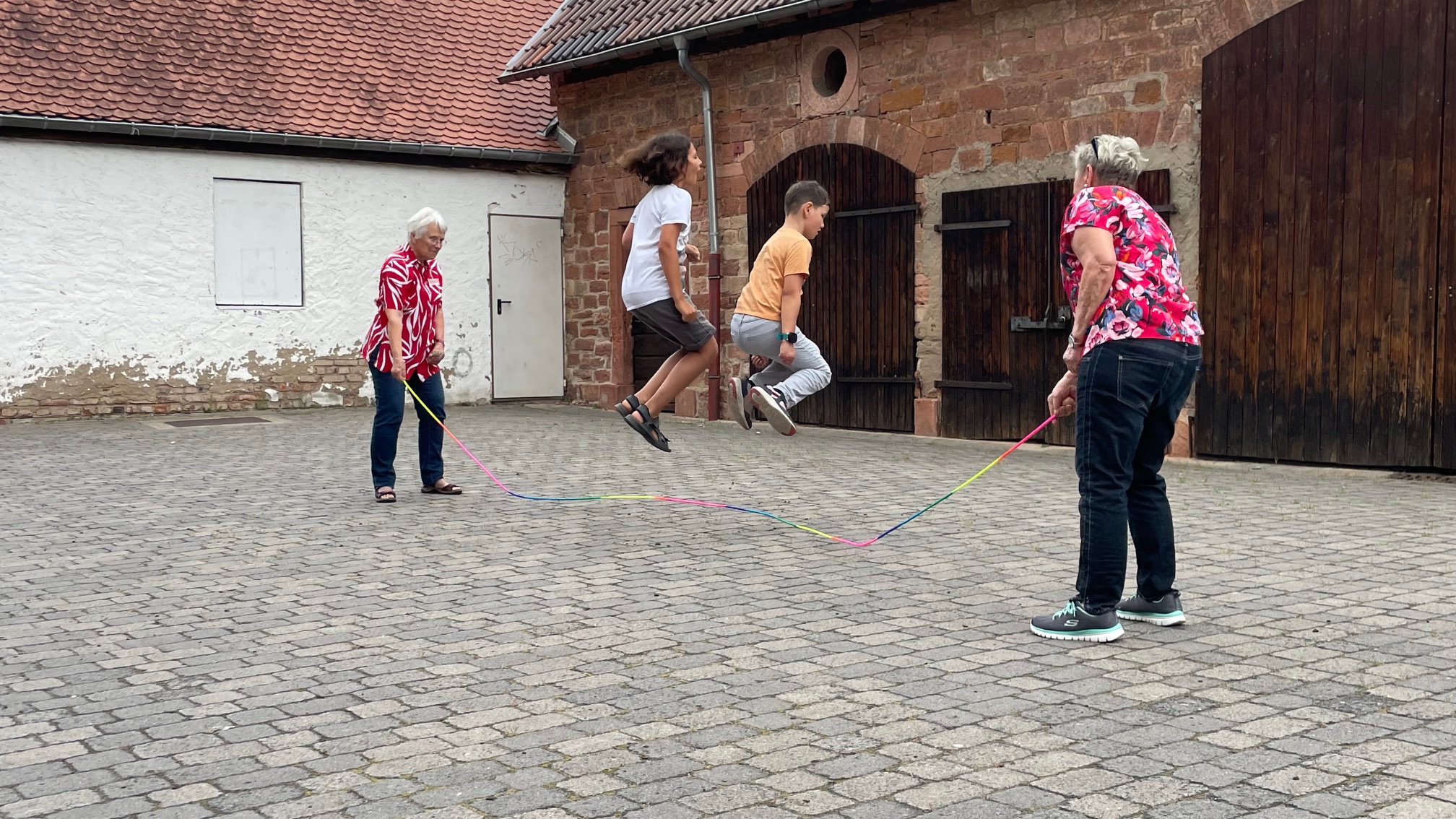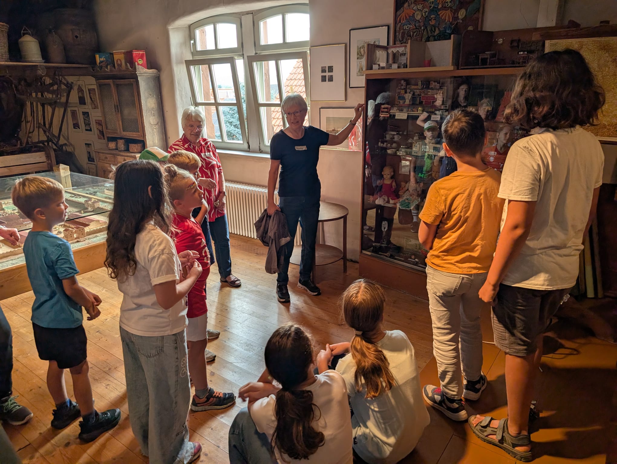 Am 27.08.2025 fanden die Ferienspiele des Niedernberger Geschichtsvereins unter dem Motto „Spiele auf dem Schulhof – damals und heute“ im Pausenhof der alten Sandsteinschule statt. Die Kinder unternahmen erst eine kleine Zeitreise im Sammelsurium des Vereins auf dem Speicher der Sandsteinschule, wo sie neben vielen spannenden Artefakten des früheren Alltags auch Spielzeuge aus früheren Zeiten bestaunen konnten.